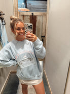 Light blue crewneck sweatshirt with pickleball embroidered on them