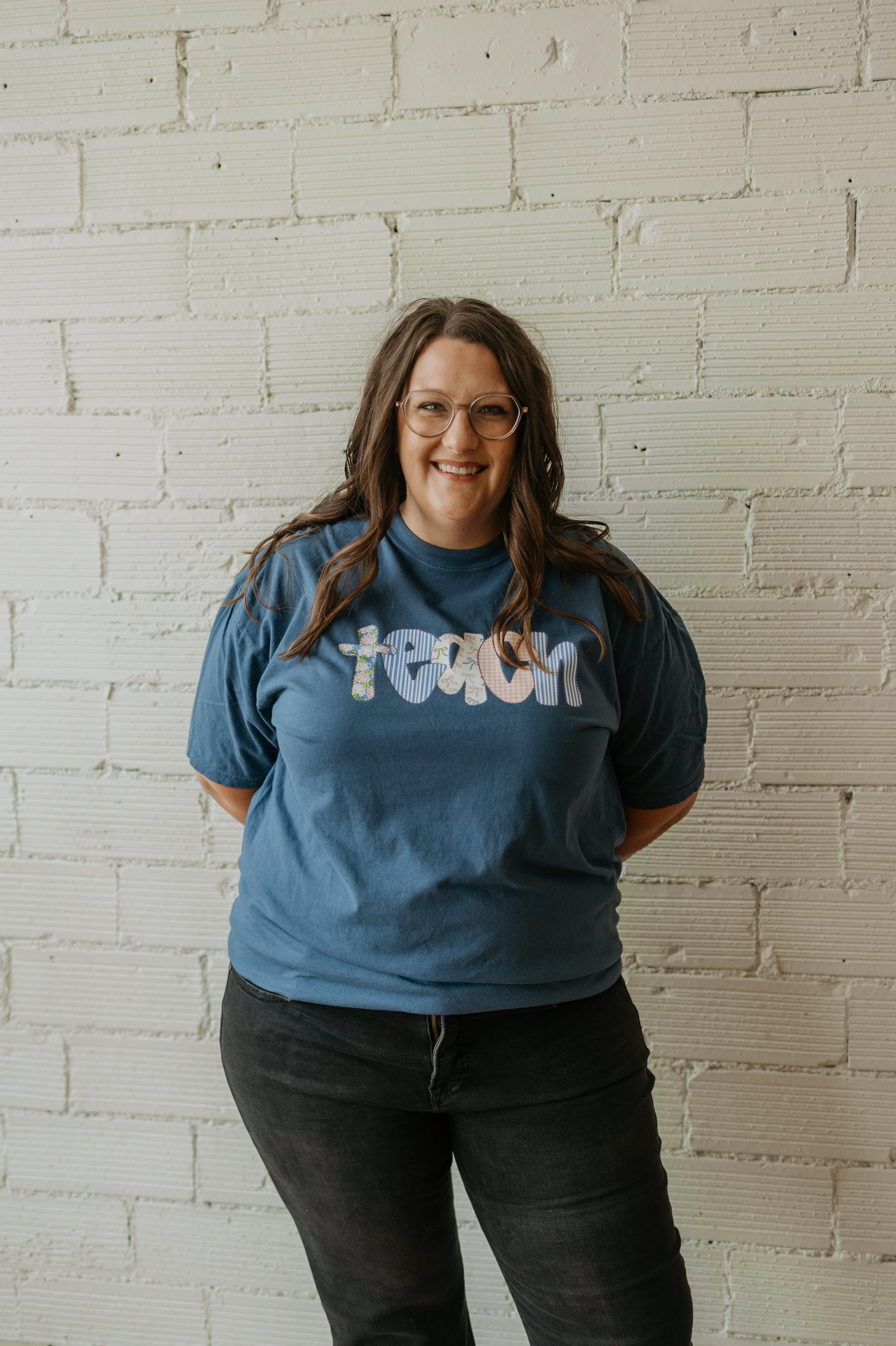 TEACH PATCHWORK REG/CURVY GRAPHIC TEE