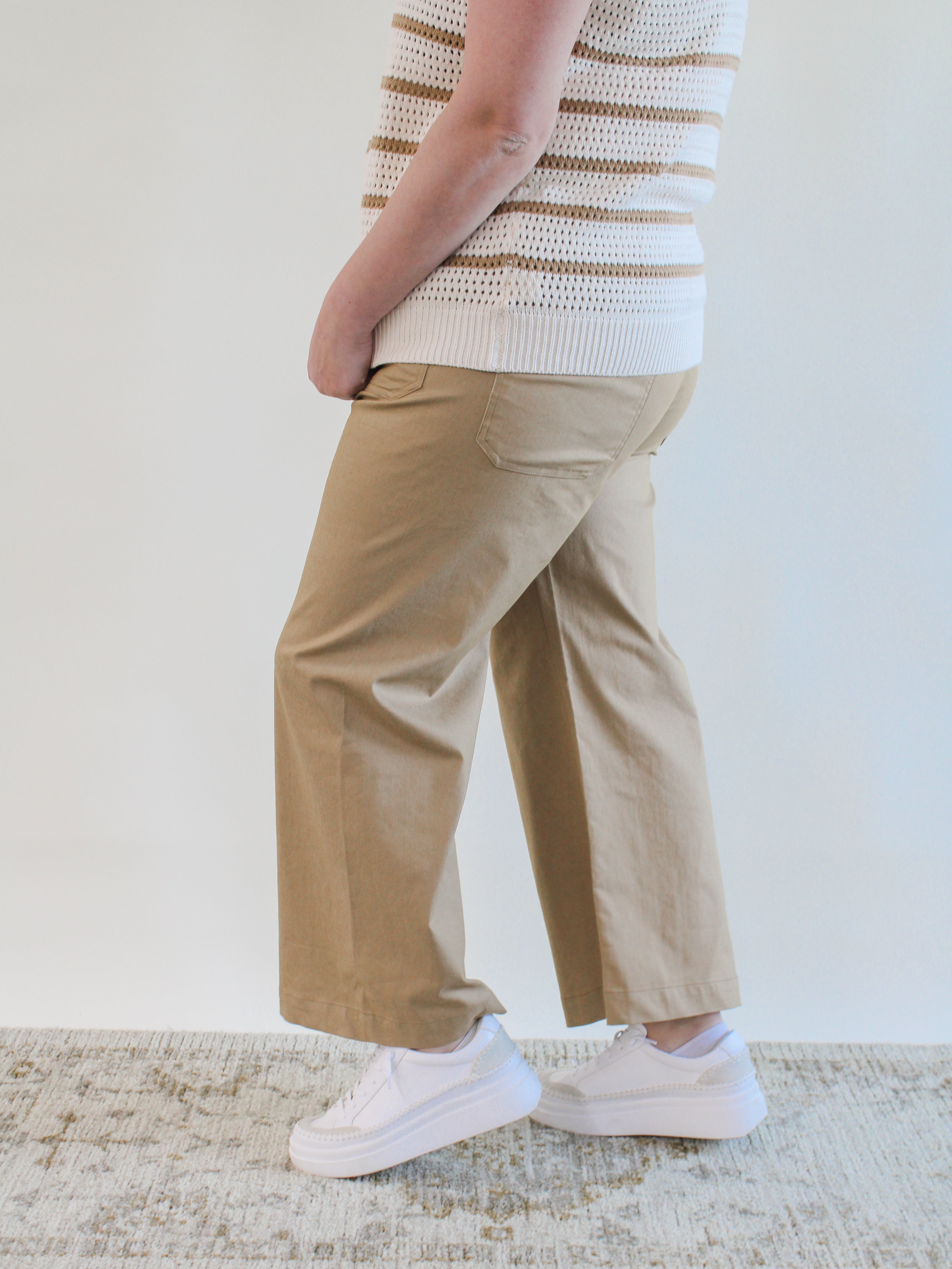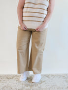 Get the best of both worlds with our Khaki Ankle Cropped Summer Pants! Made from a stretchy denim-like fabric, these pants provide comfort and style for those warm summer days. Plus, with convenient pockets, you can easily store your essentials while on the go. Don't compromise on fashion or functionality - these pants have it all!