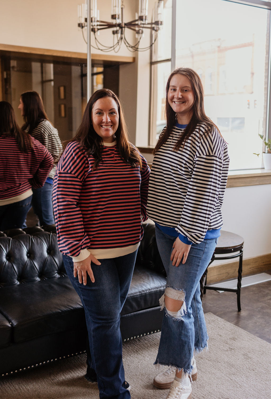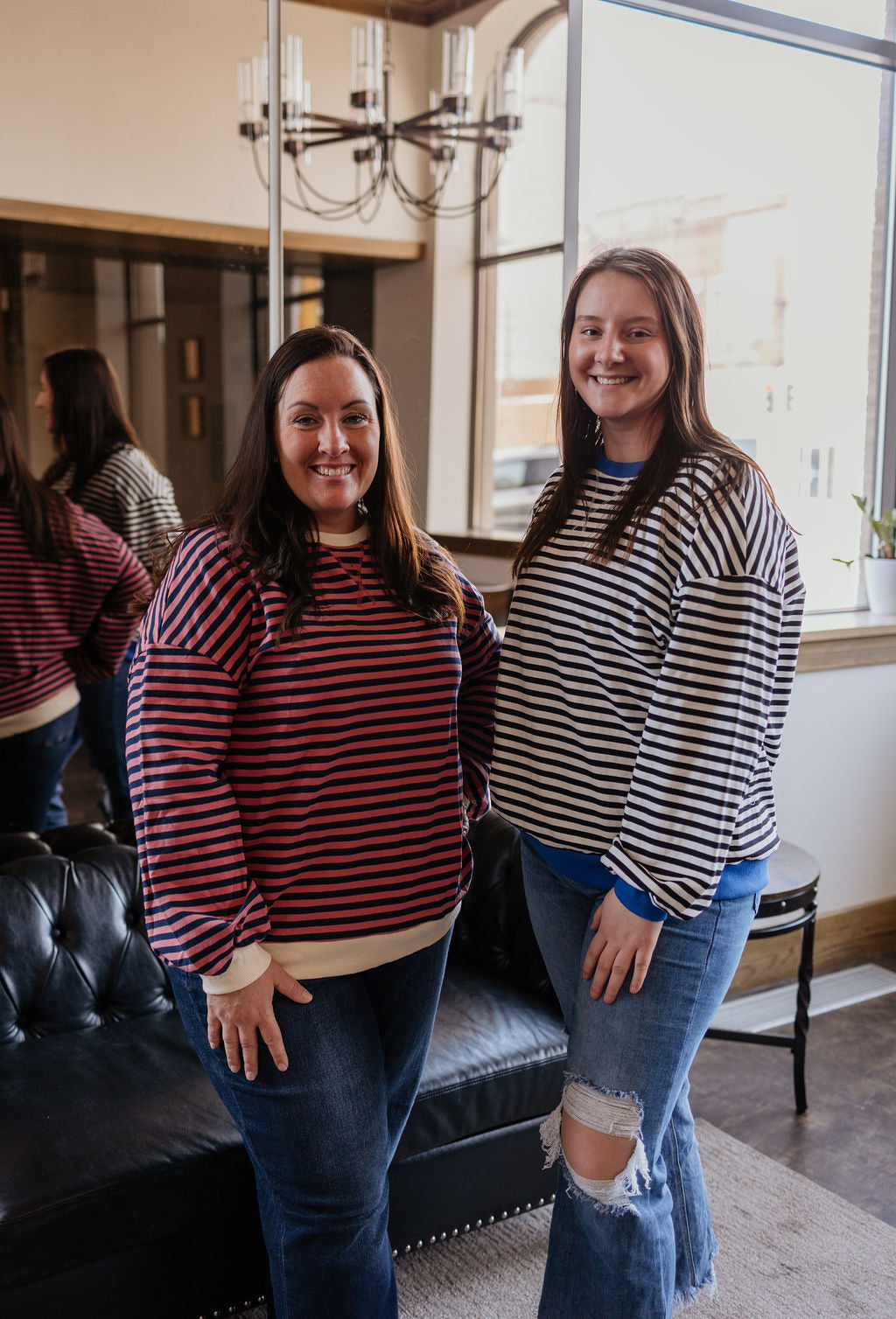 MONA REG/CURVY STRIPED CREWNECK SWEATER