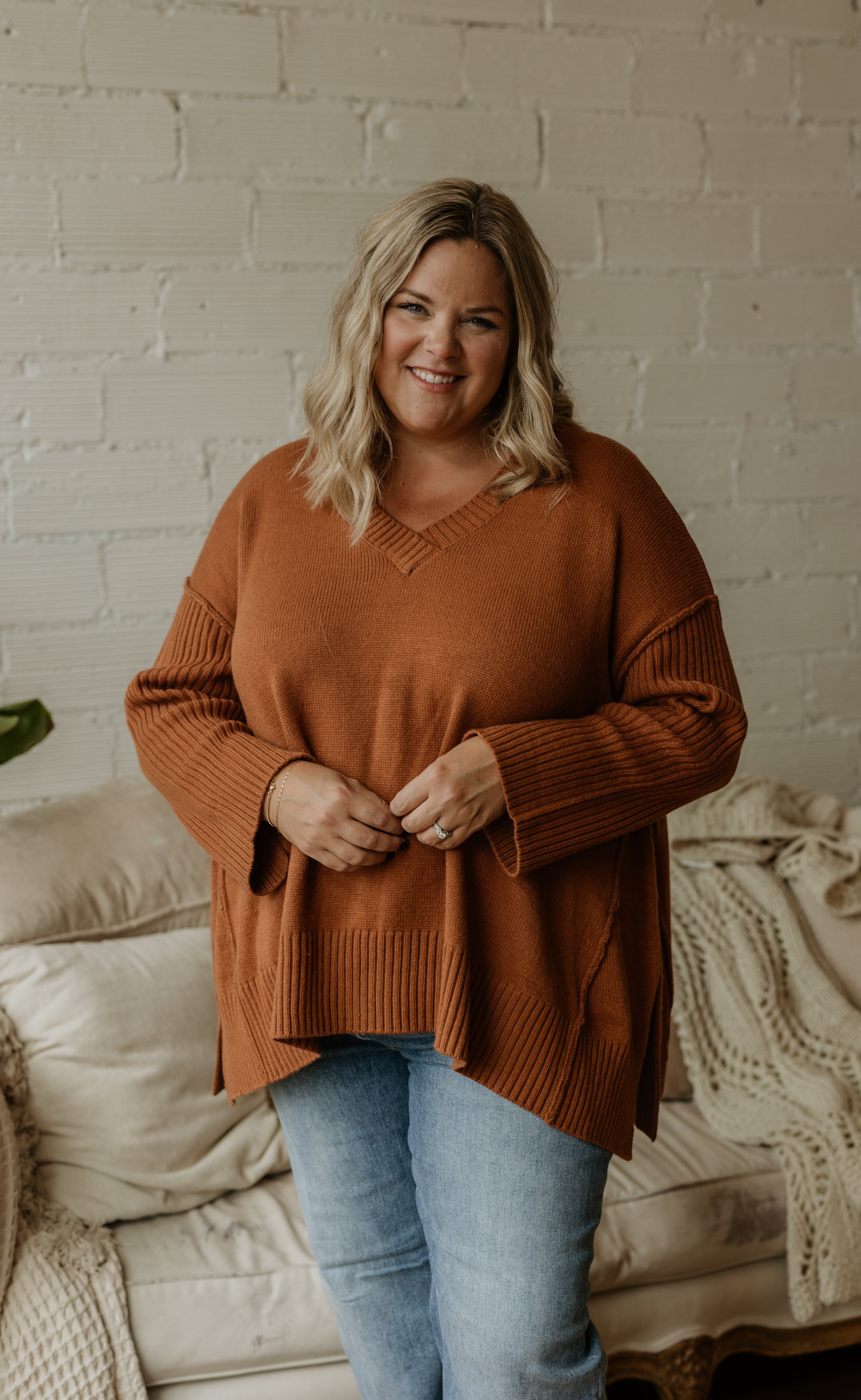 Cozy up in the breathable comfort of the Solie Curvy Oversized Sweater. Its v-neck and long sleeves offer a flattering fit, while the ribbed design and loose fit provide a stylish and relaxed look. Perfect for staying warm and fashionable all season long!