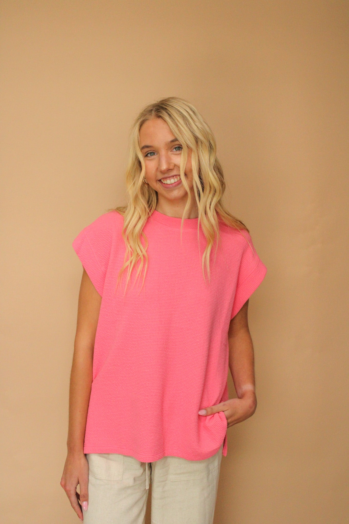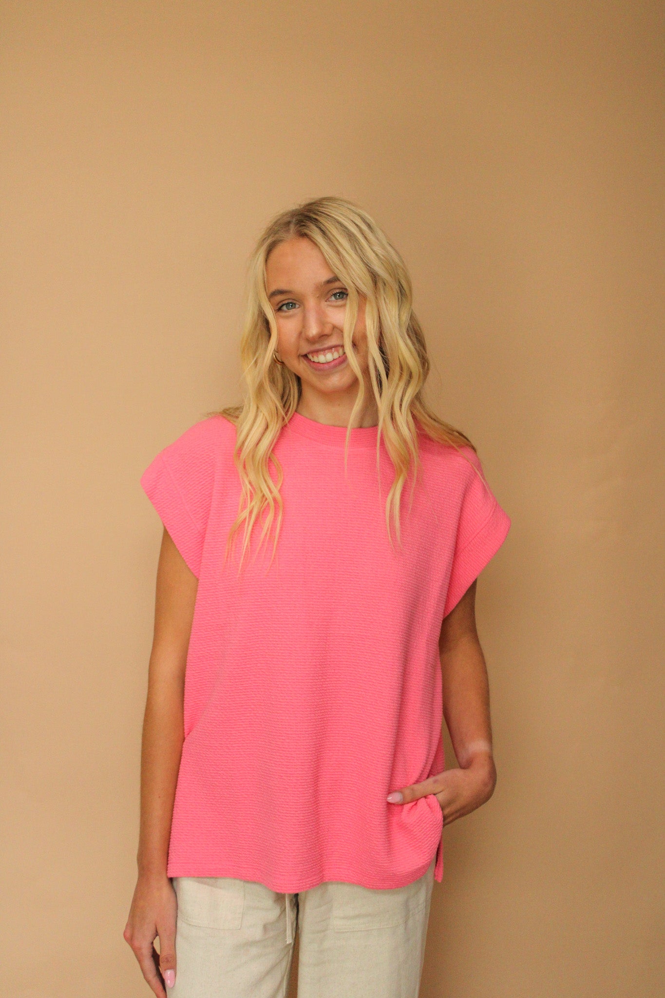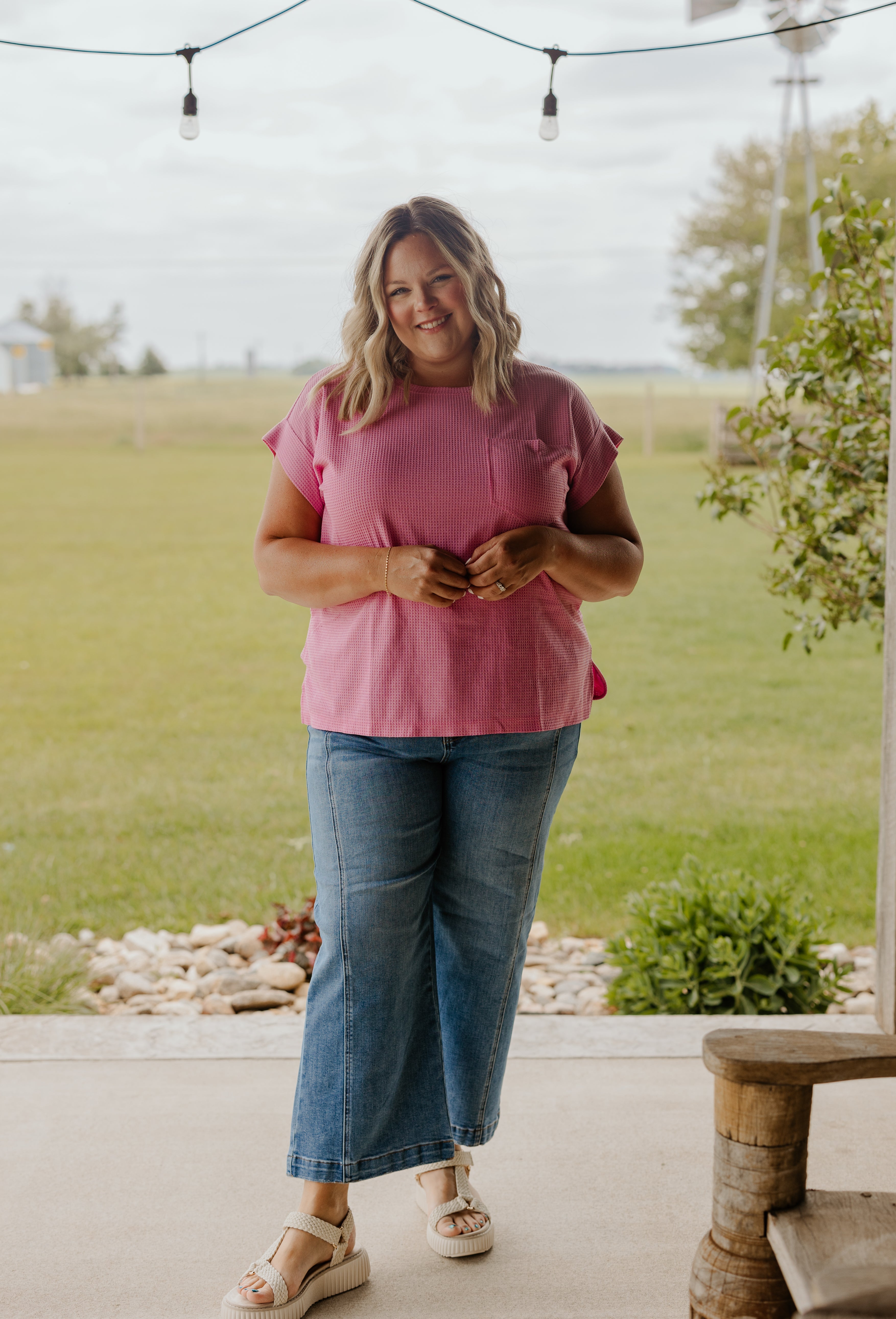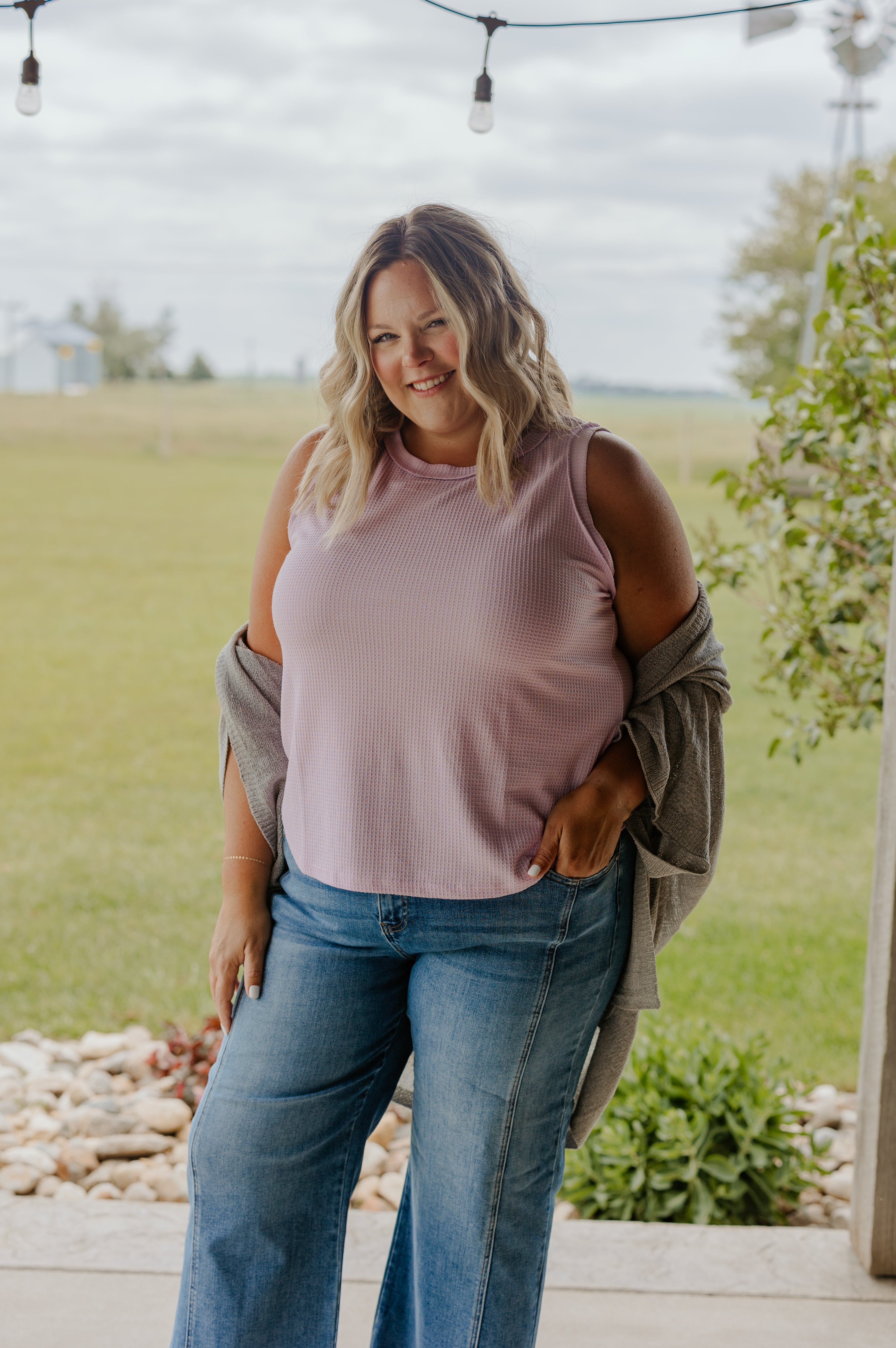 SYLVI CURVY WAFFLE SLEEVELESS TANK