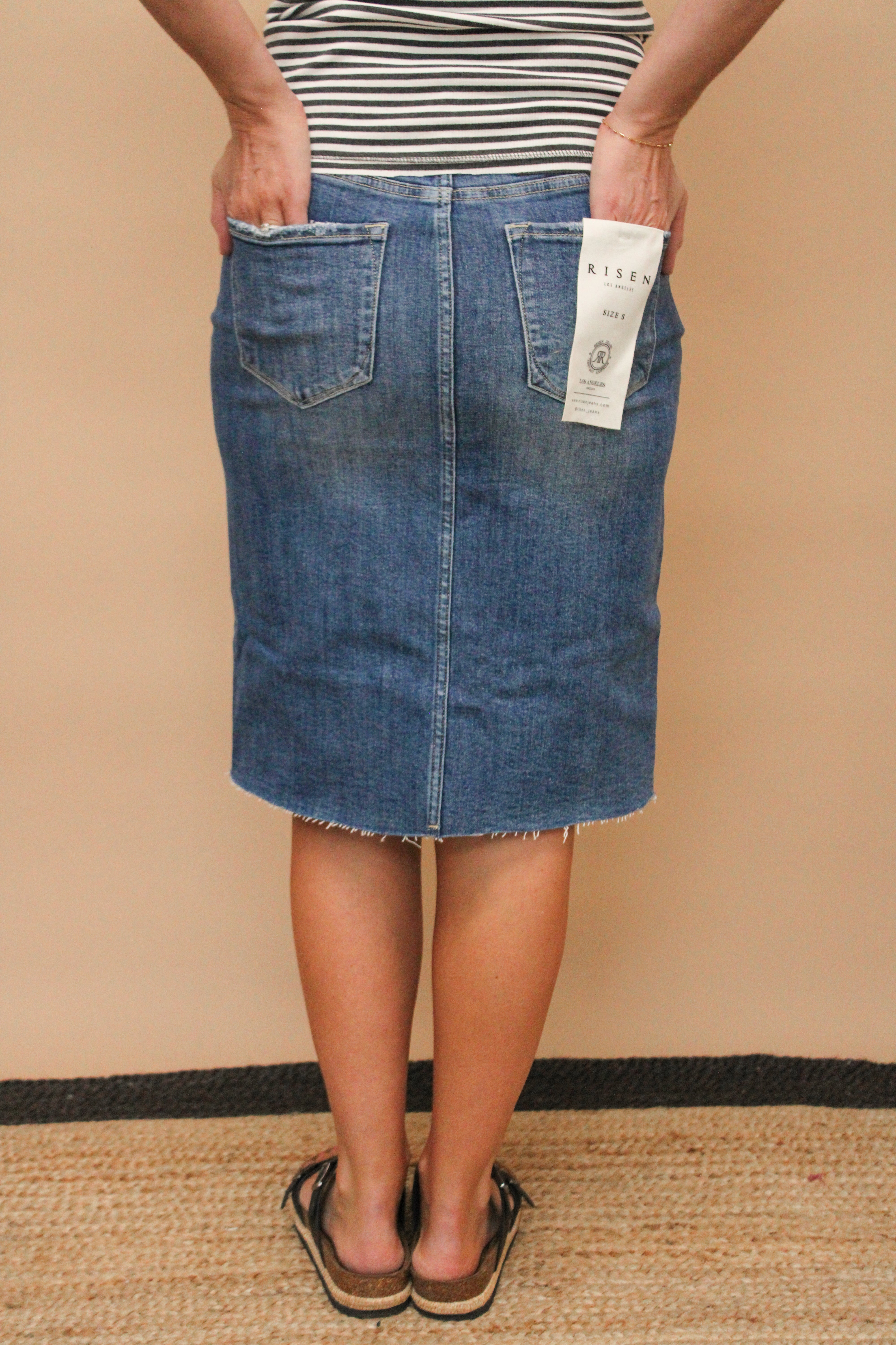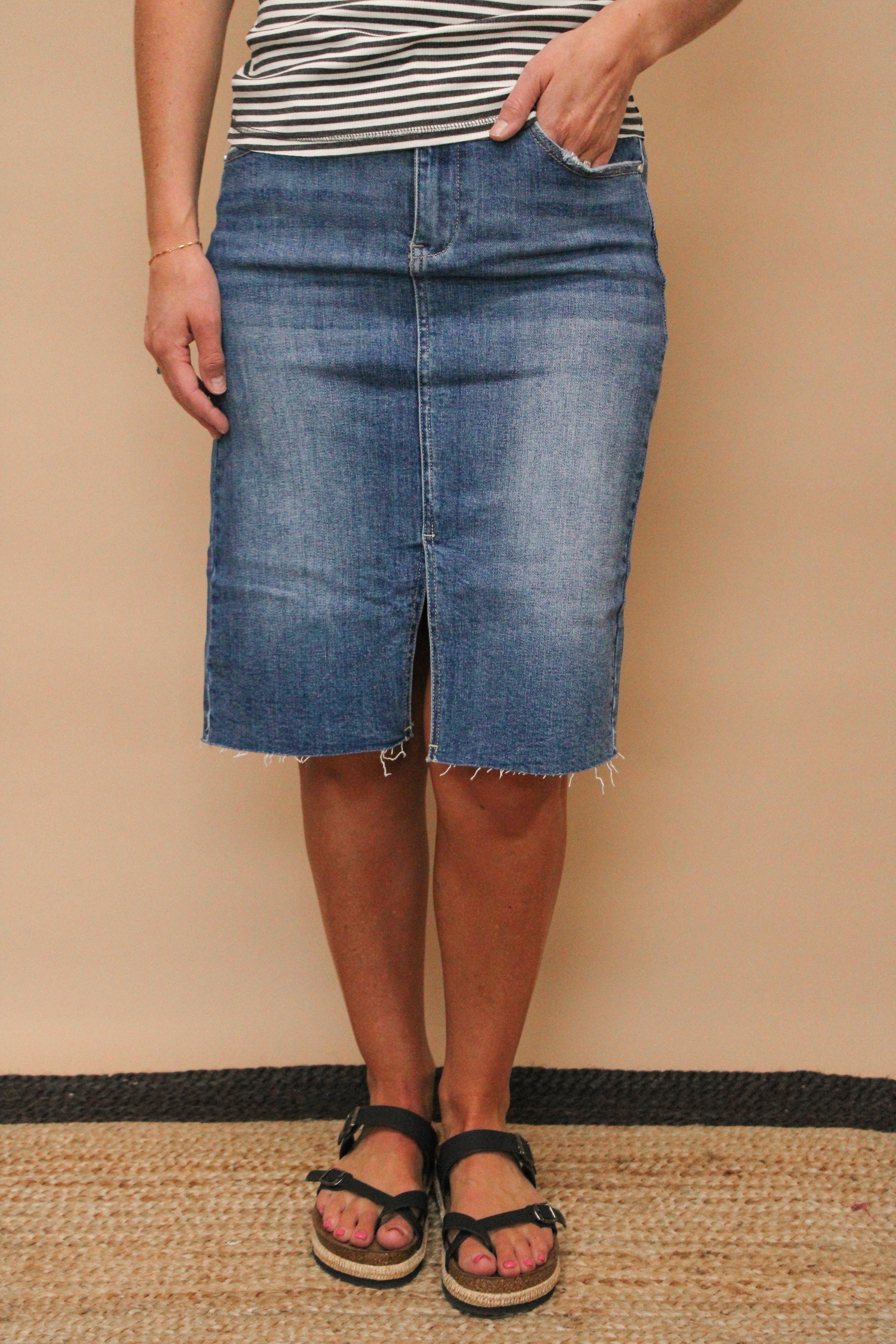 MILLIE REG/CURVY STRIPED MIDI SKIRT