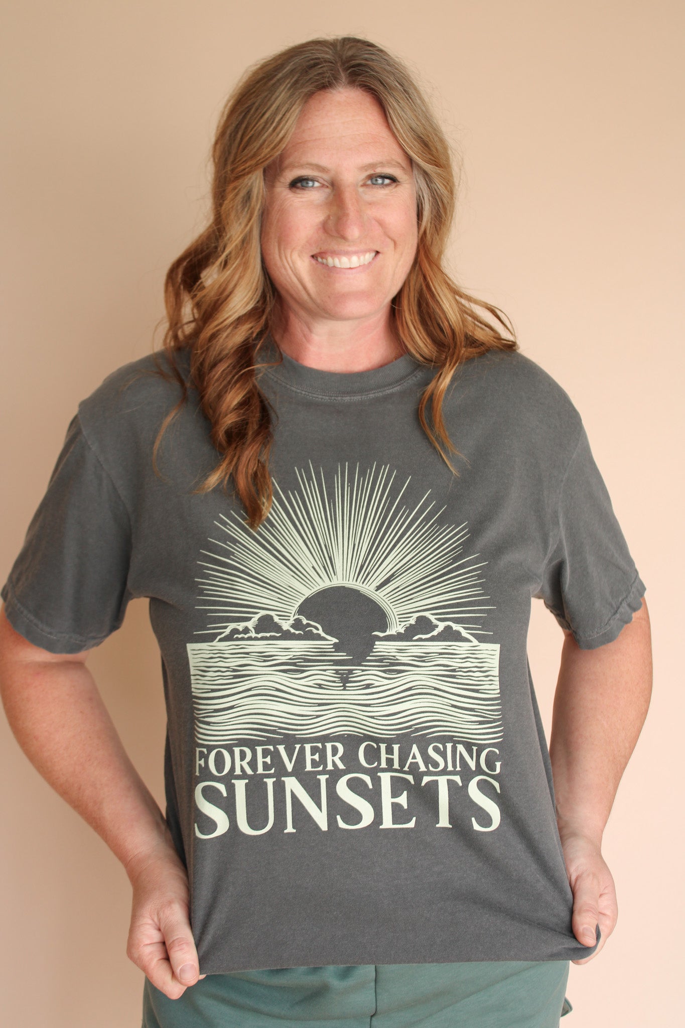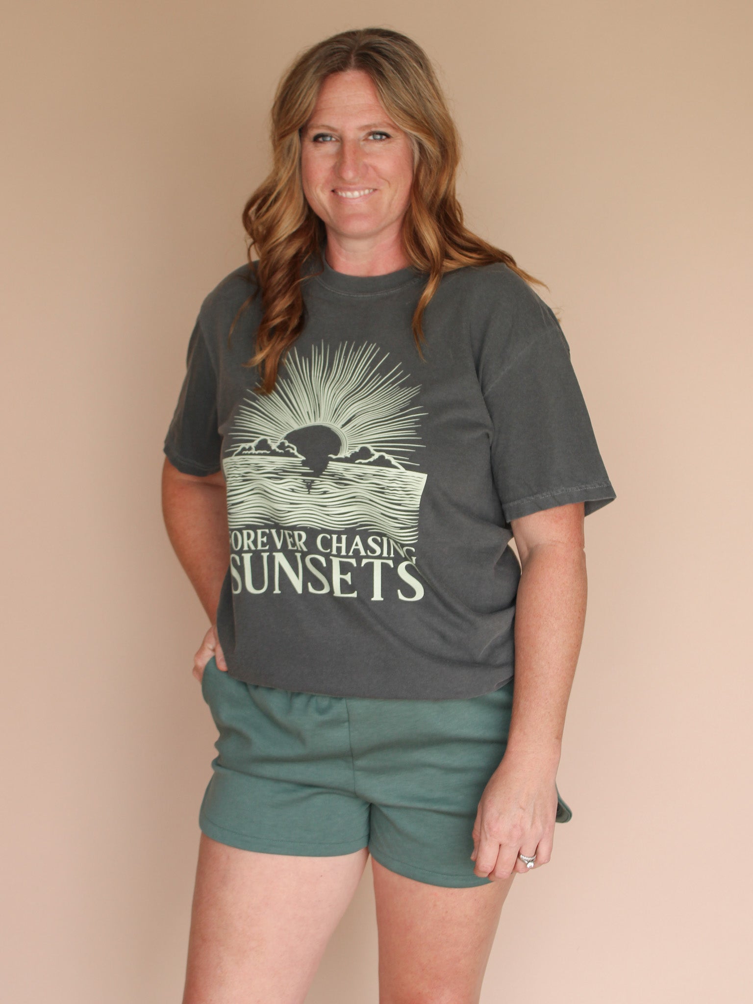 CHASING SUNSETS REG/CURVY GRAPHIC TEE