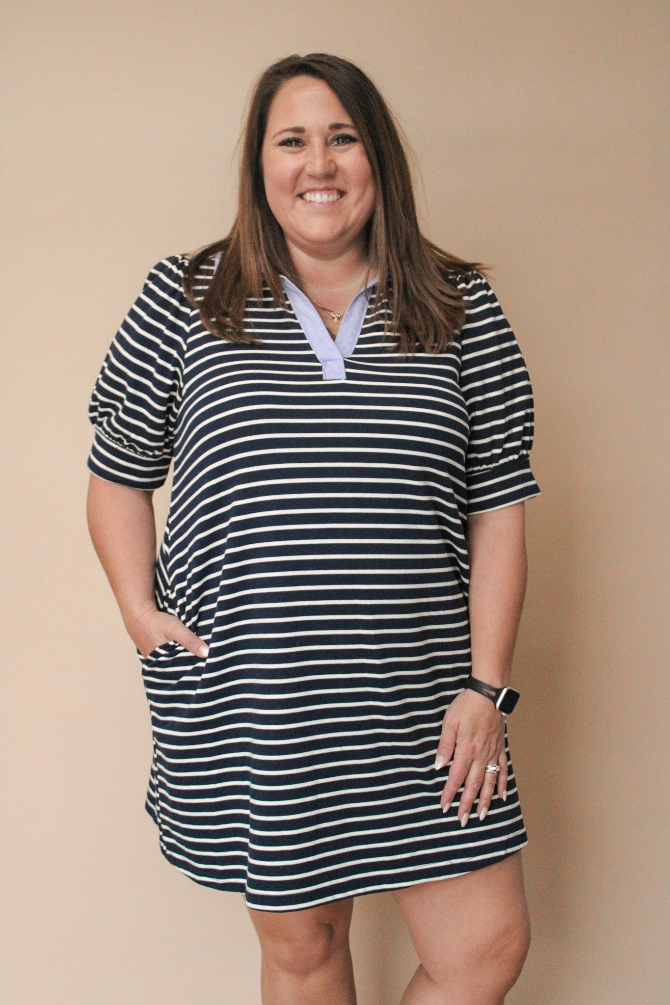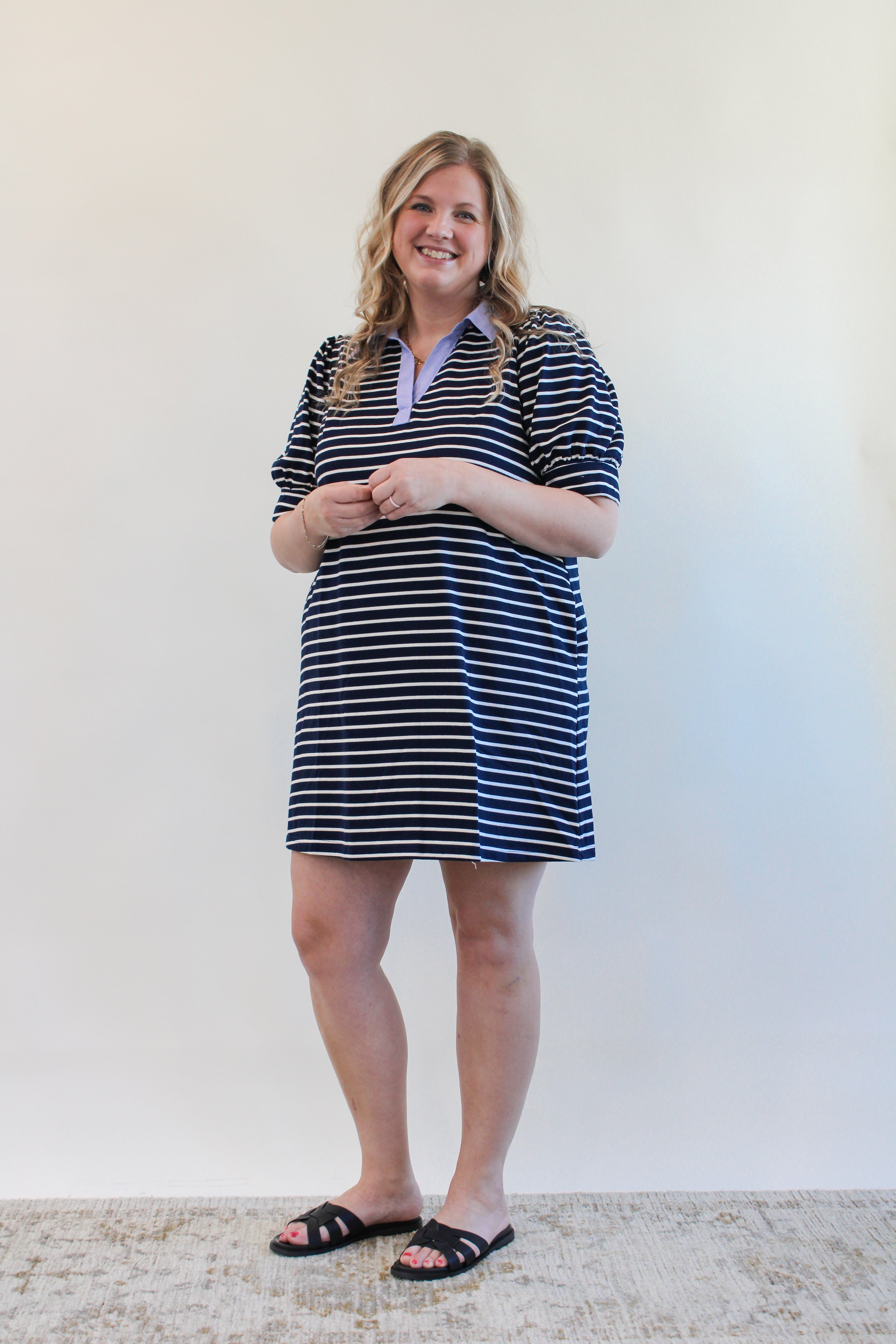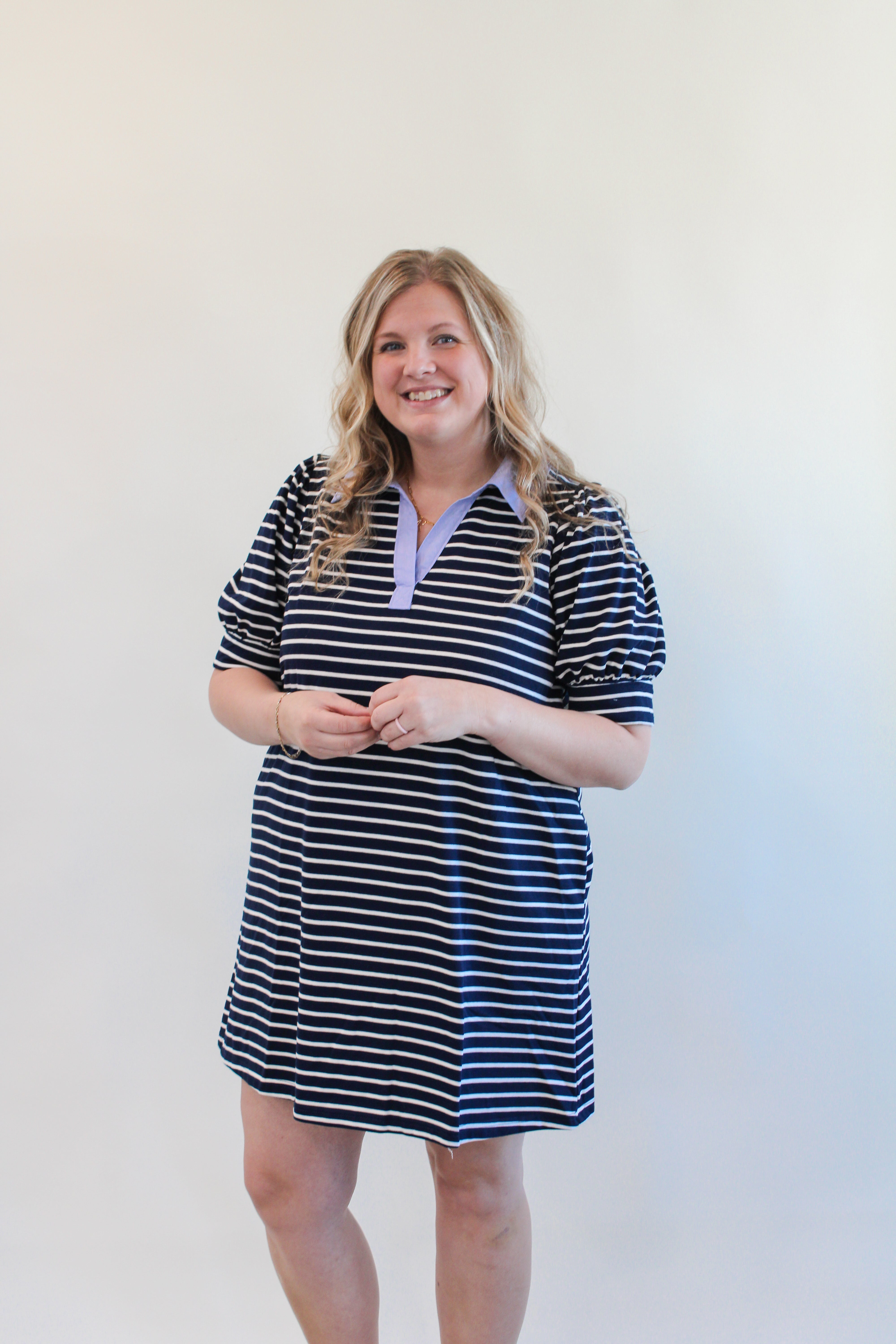 KIT CURVY STRIPED COLLAR KNIT TOP