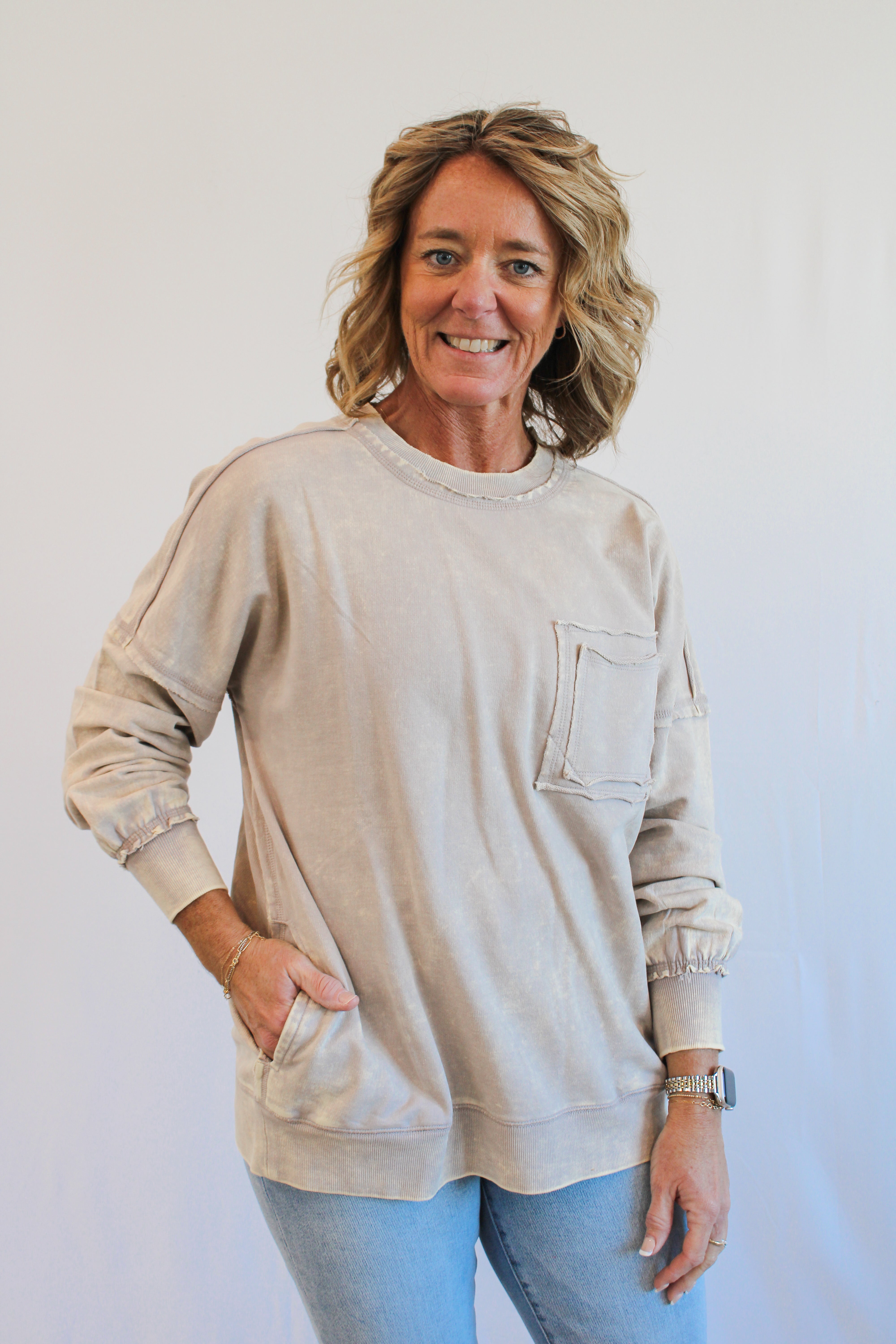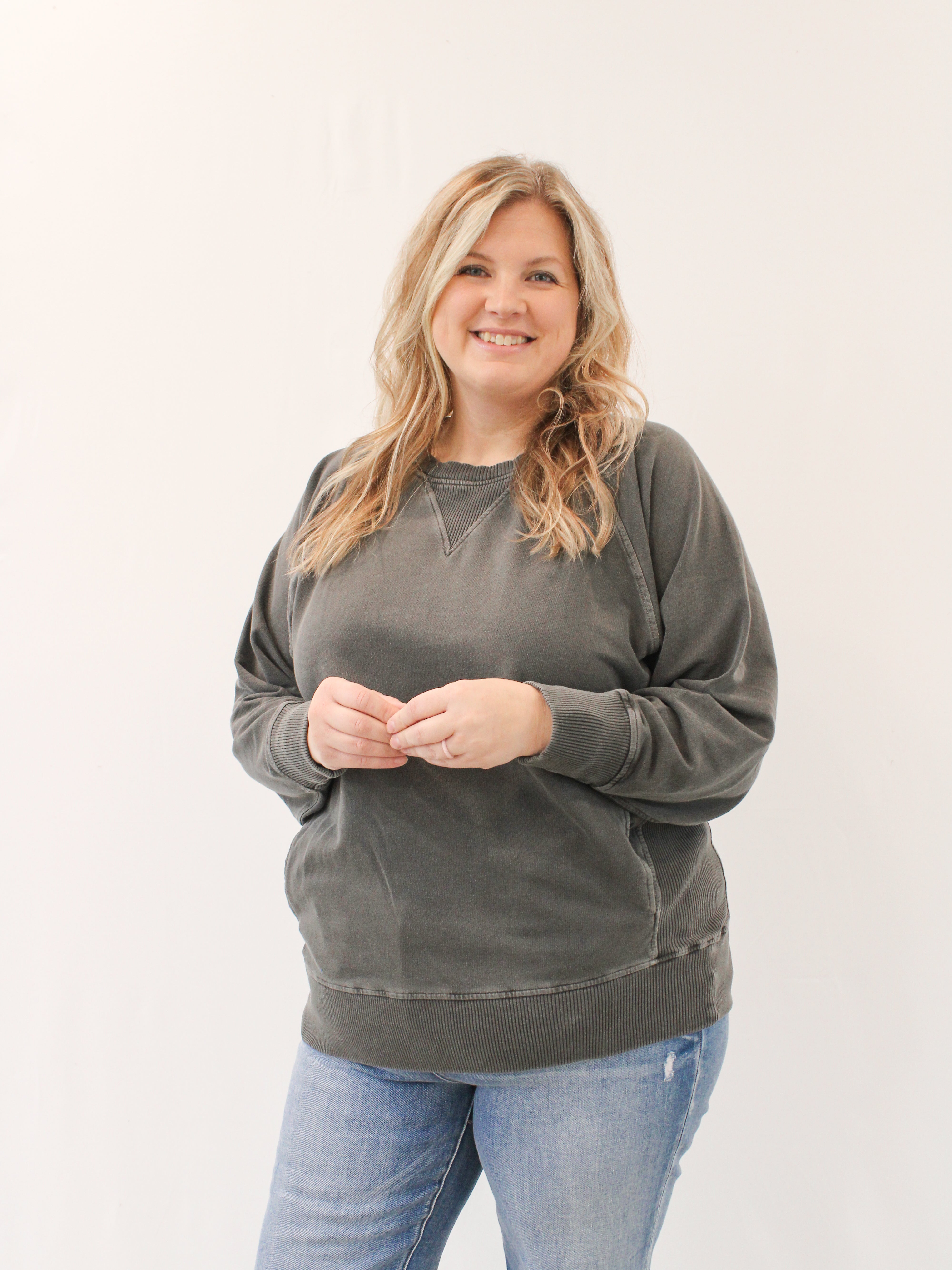 LORA REG/CURVY ACID WASH CREWNECK