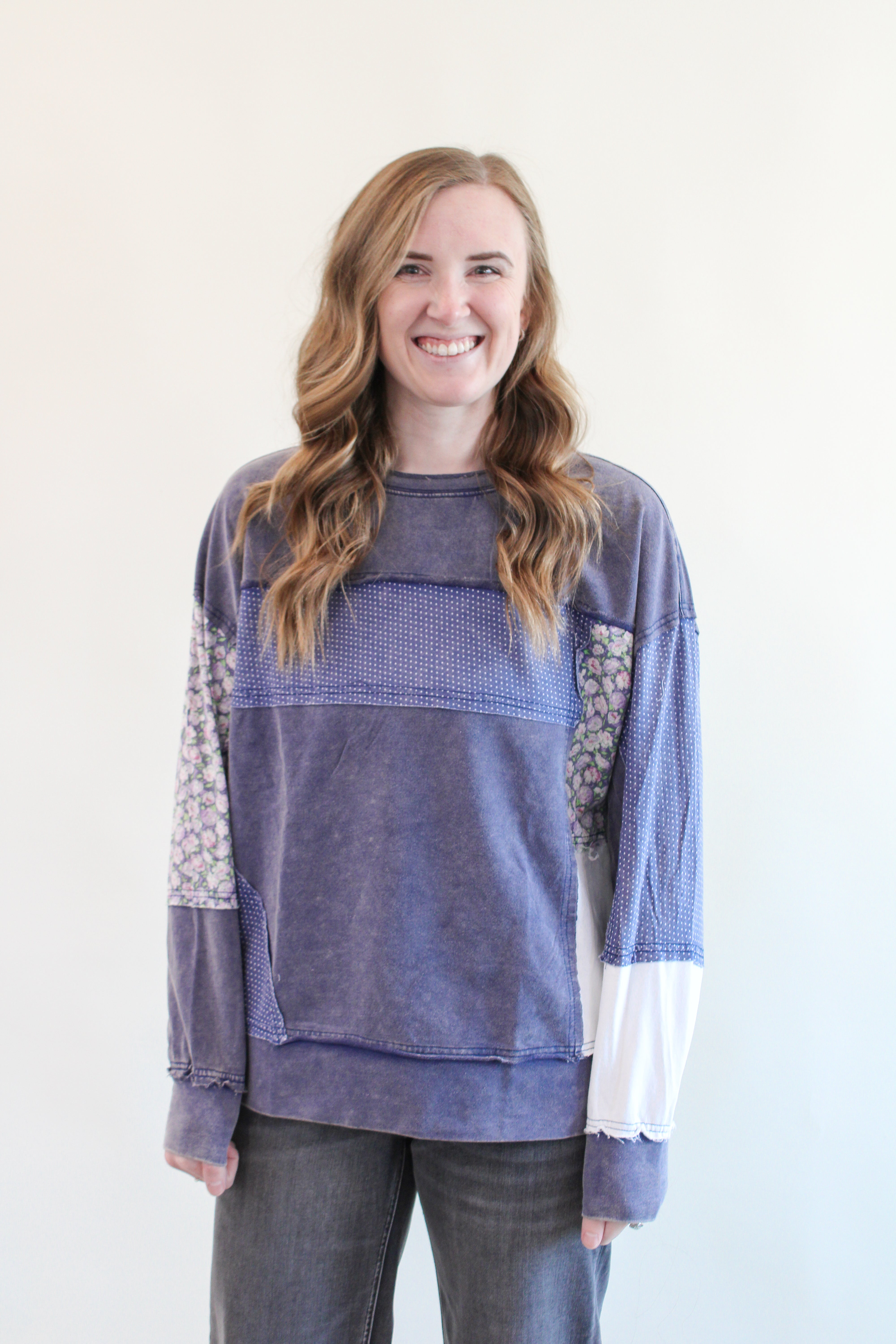 MABLE REG/CURVY PATCHWORK SWEATSHIRT