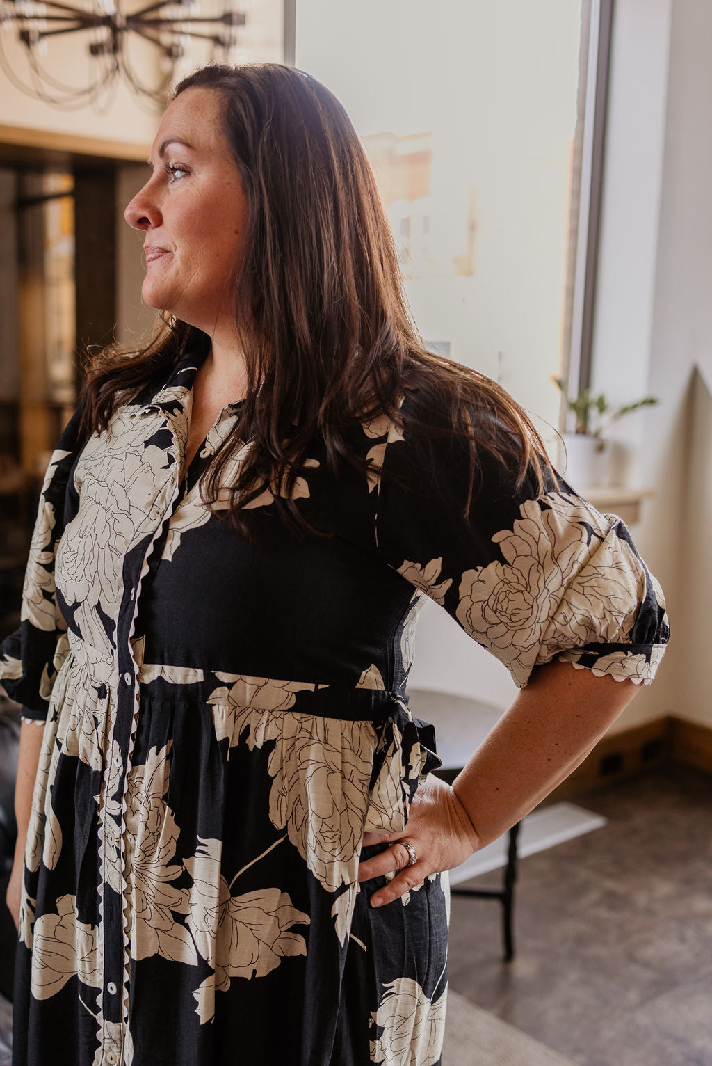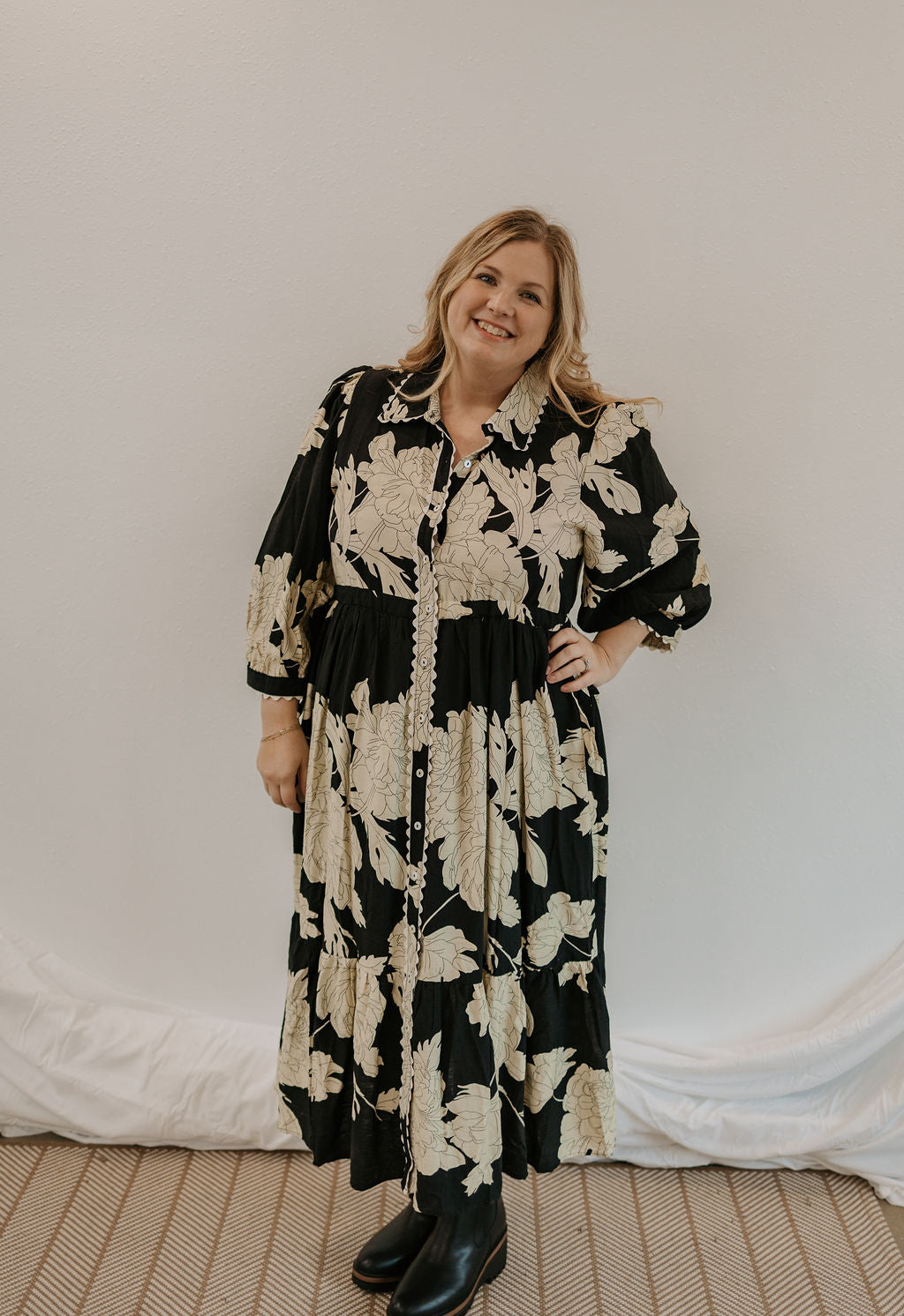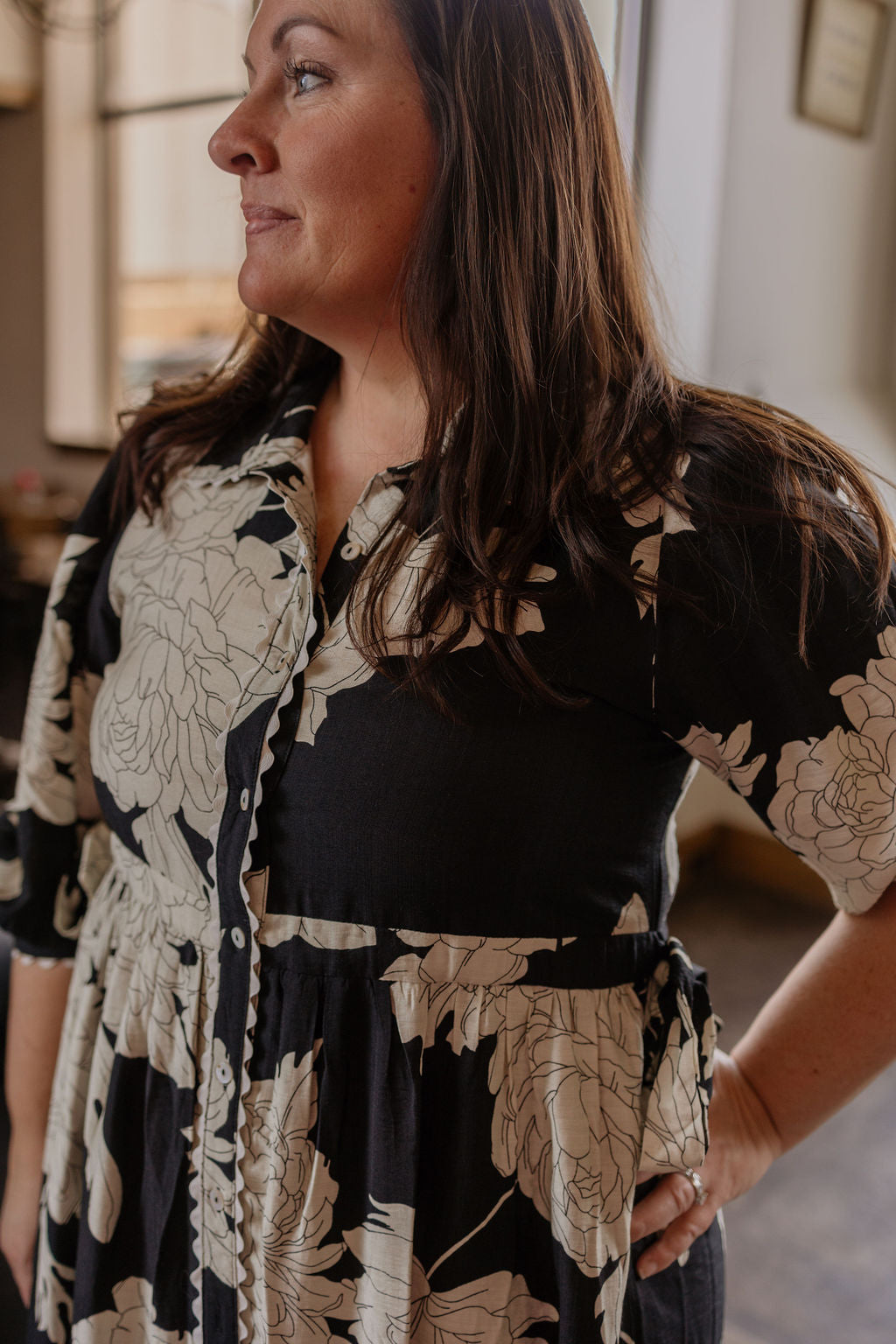 EVA REG/CURVY FLORAL COLLARED MIDI DRESS