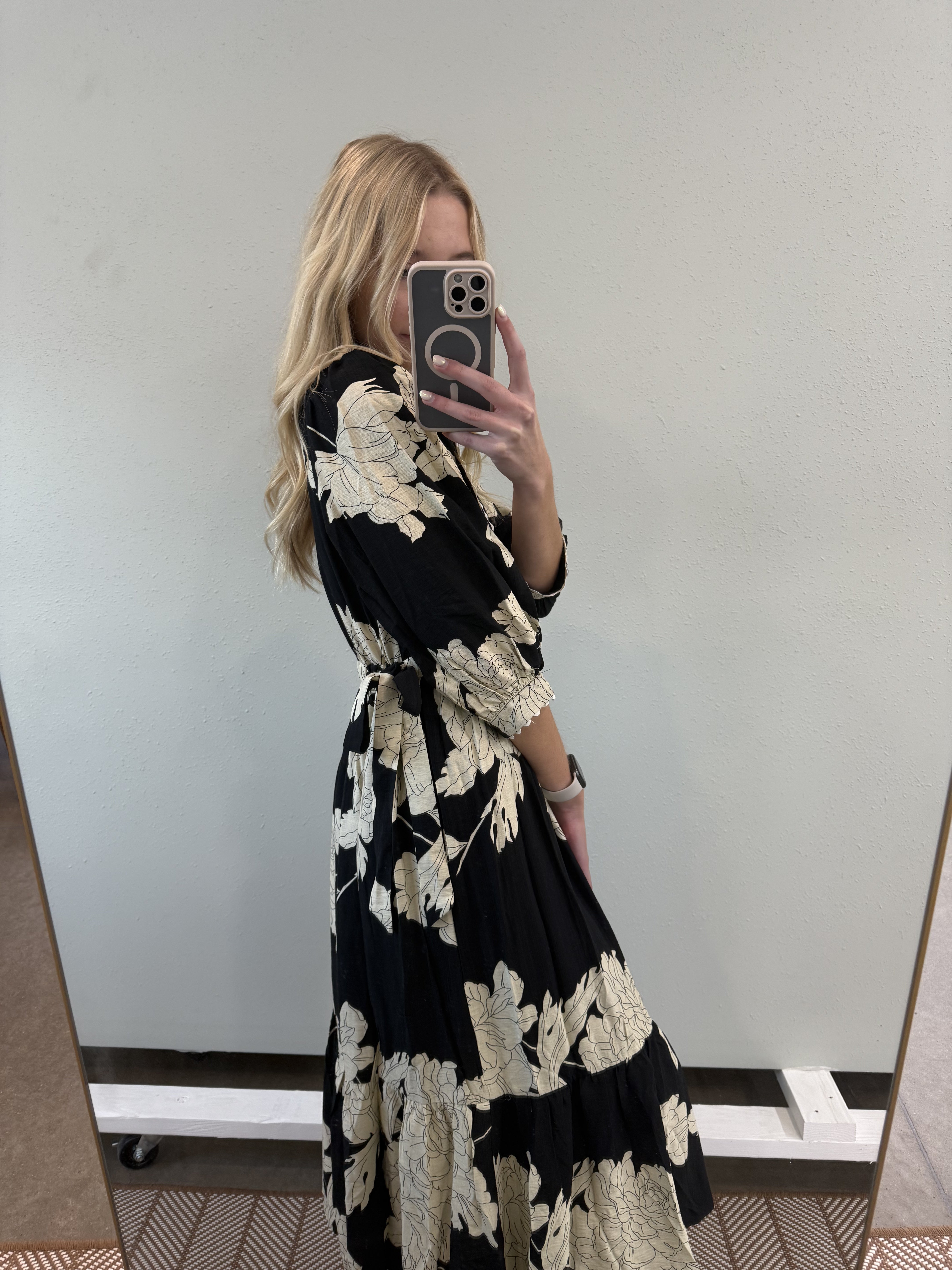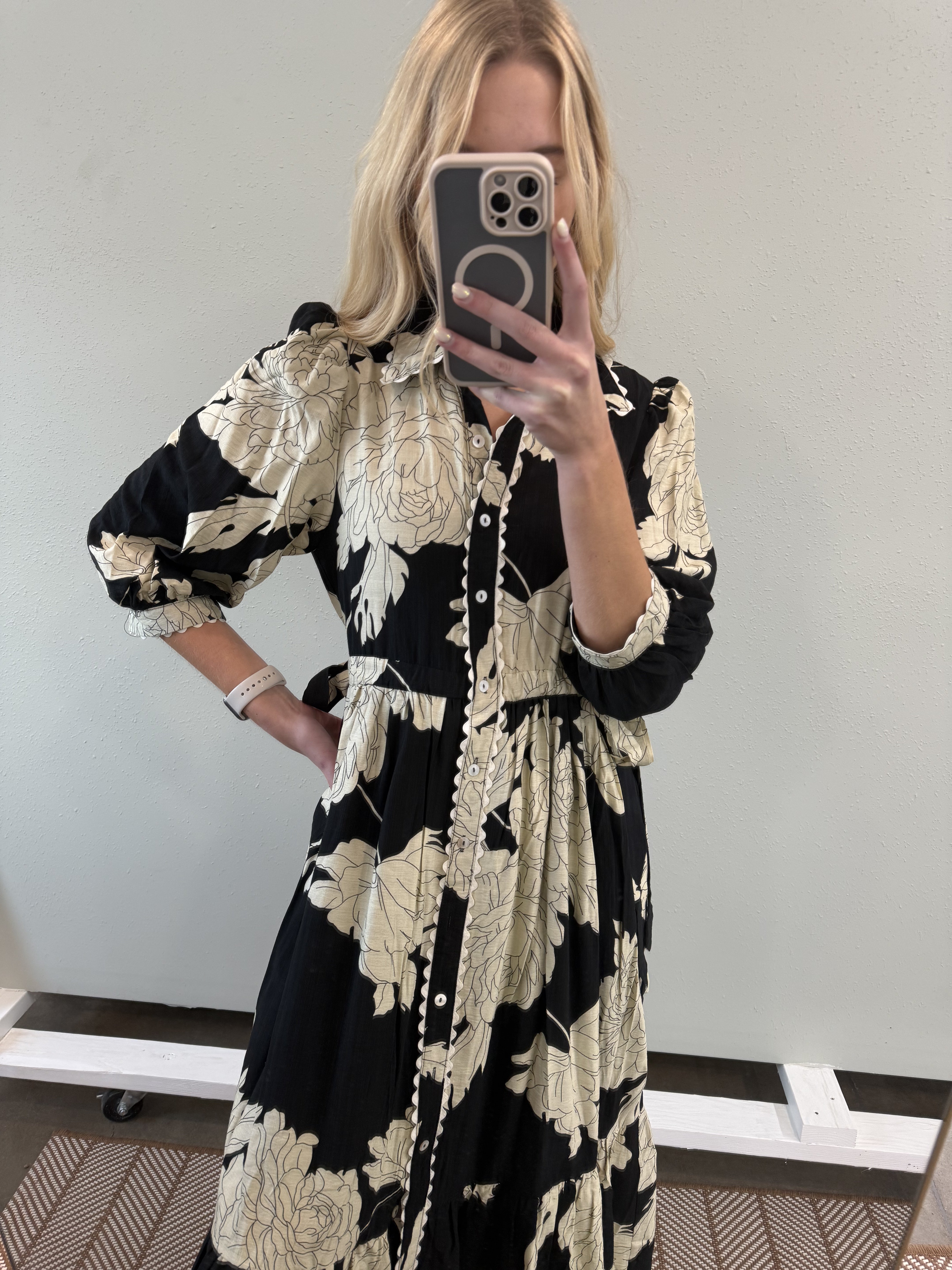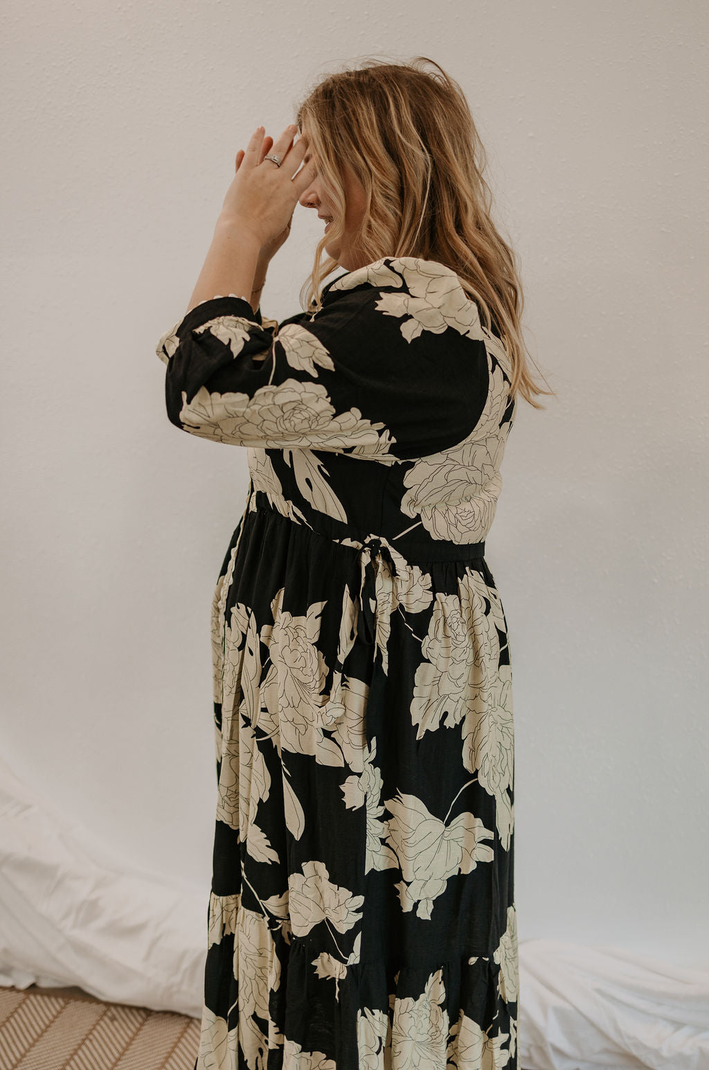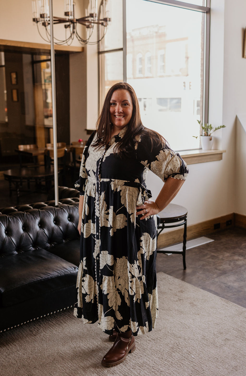 EVA REG/CURVY FLORAL COLLARED MIDI DRESS