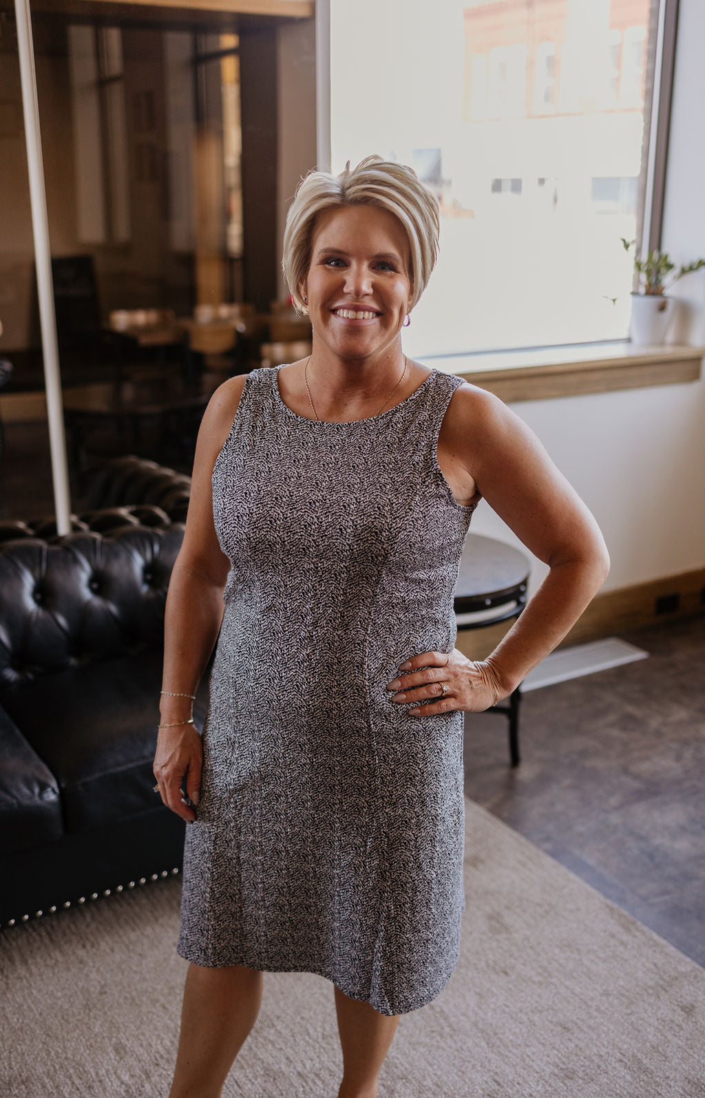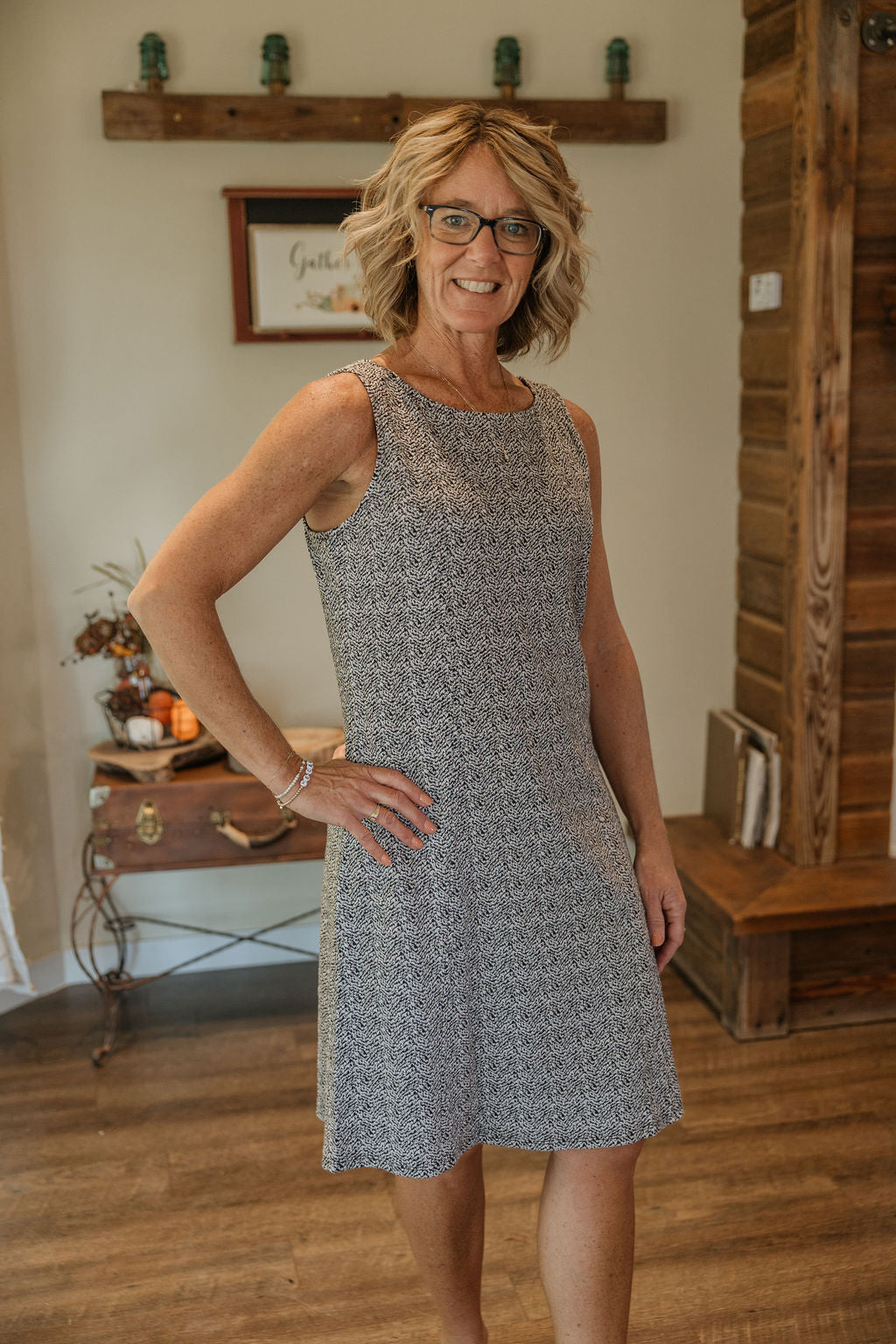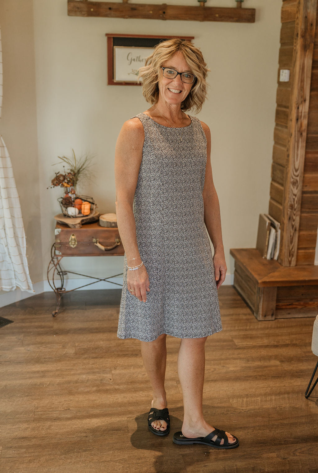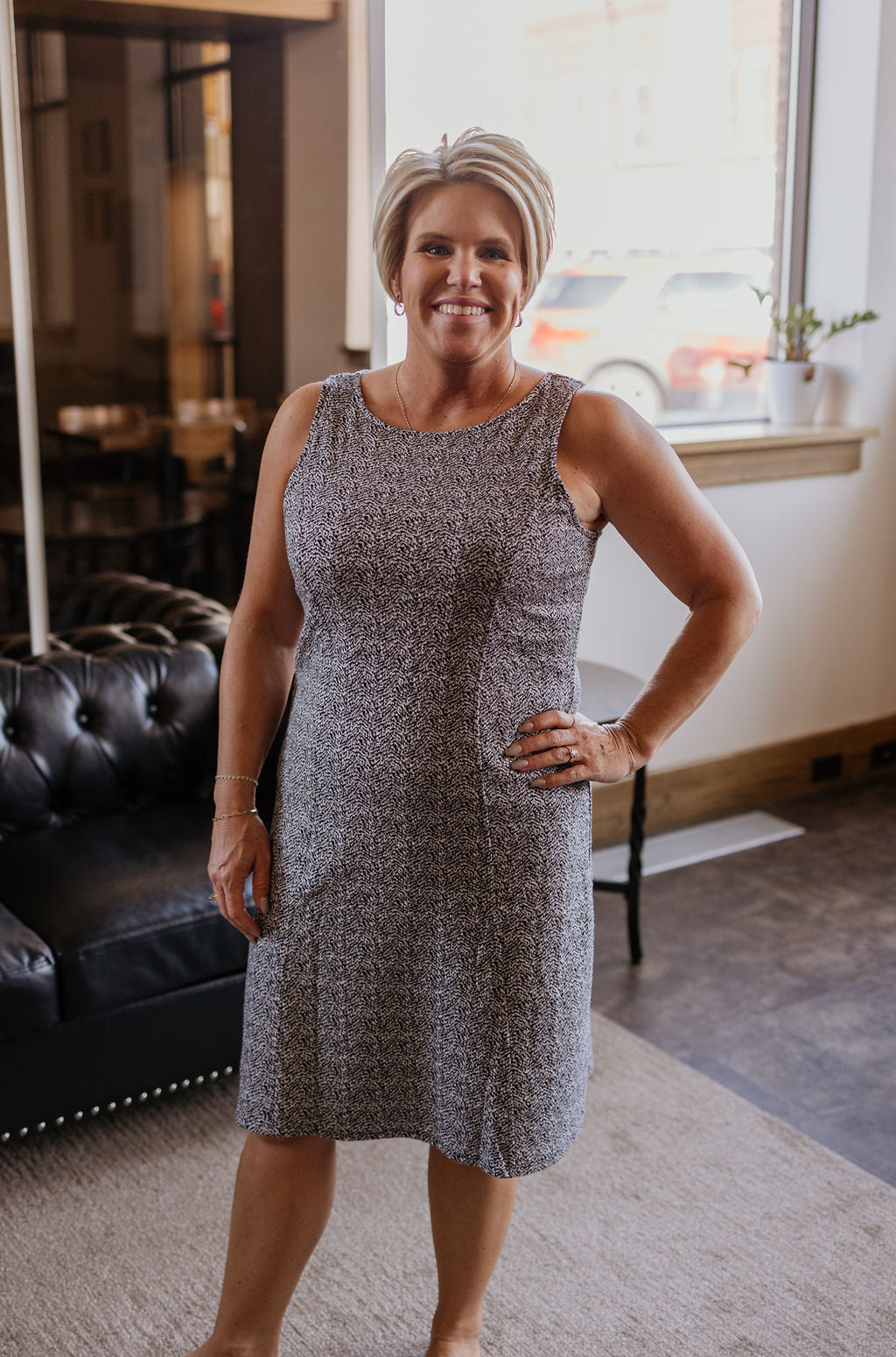 AMORY REG/CURVY SLEEVELESS ABSTRACT DRESS