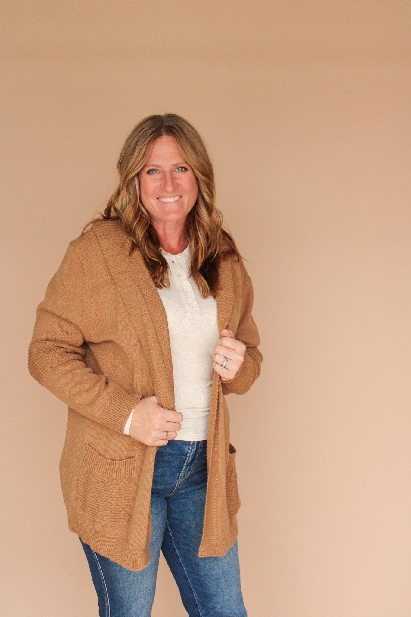 KAMELO REG/CURVY KNIT HOODED CARDIGAN