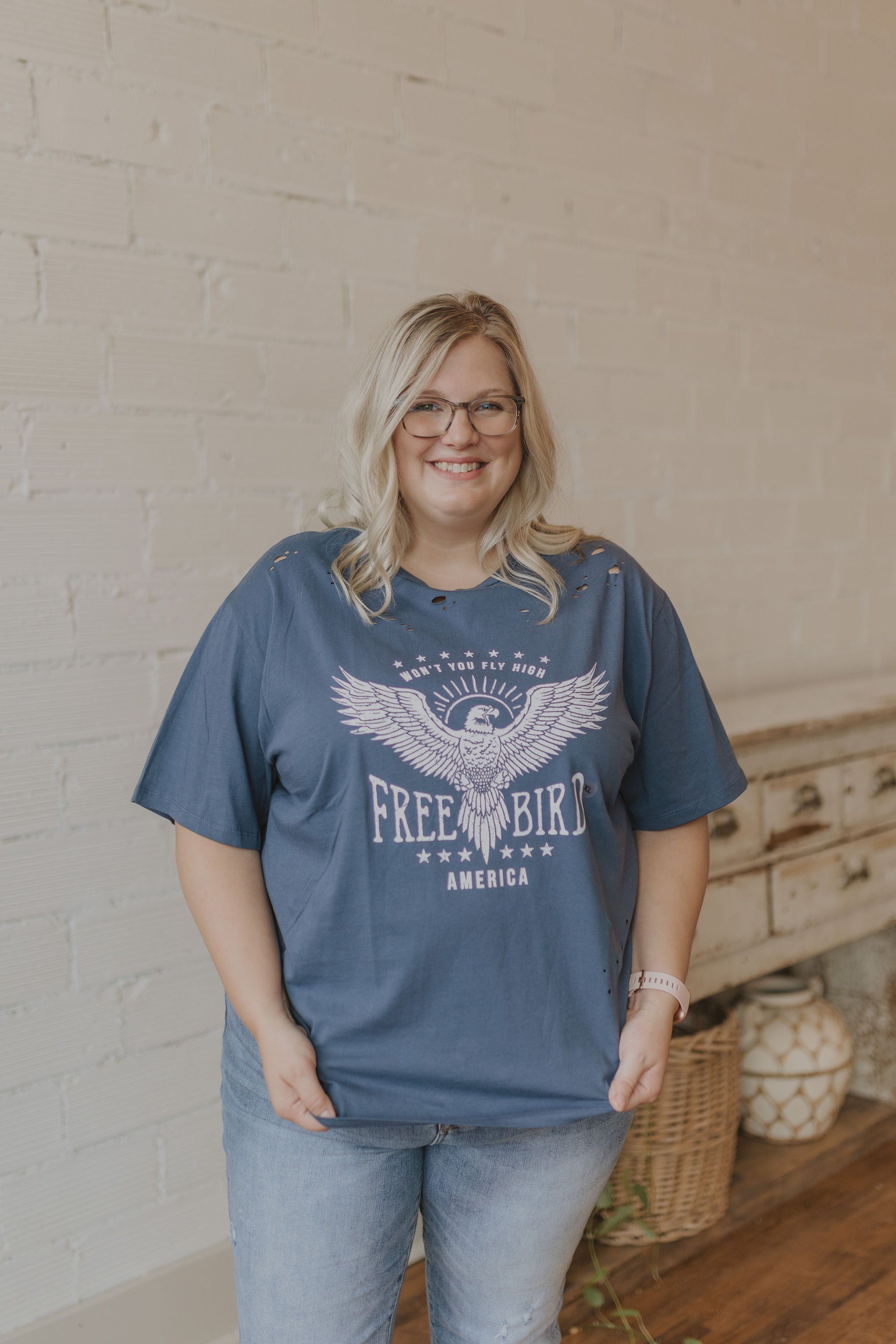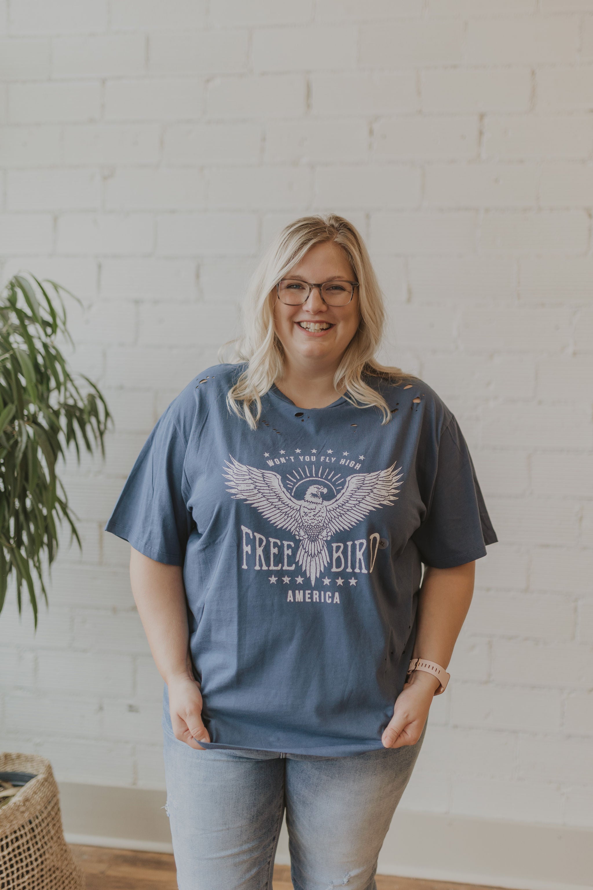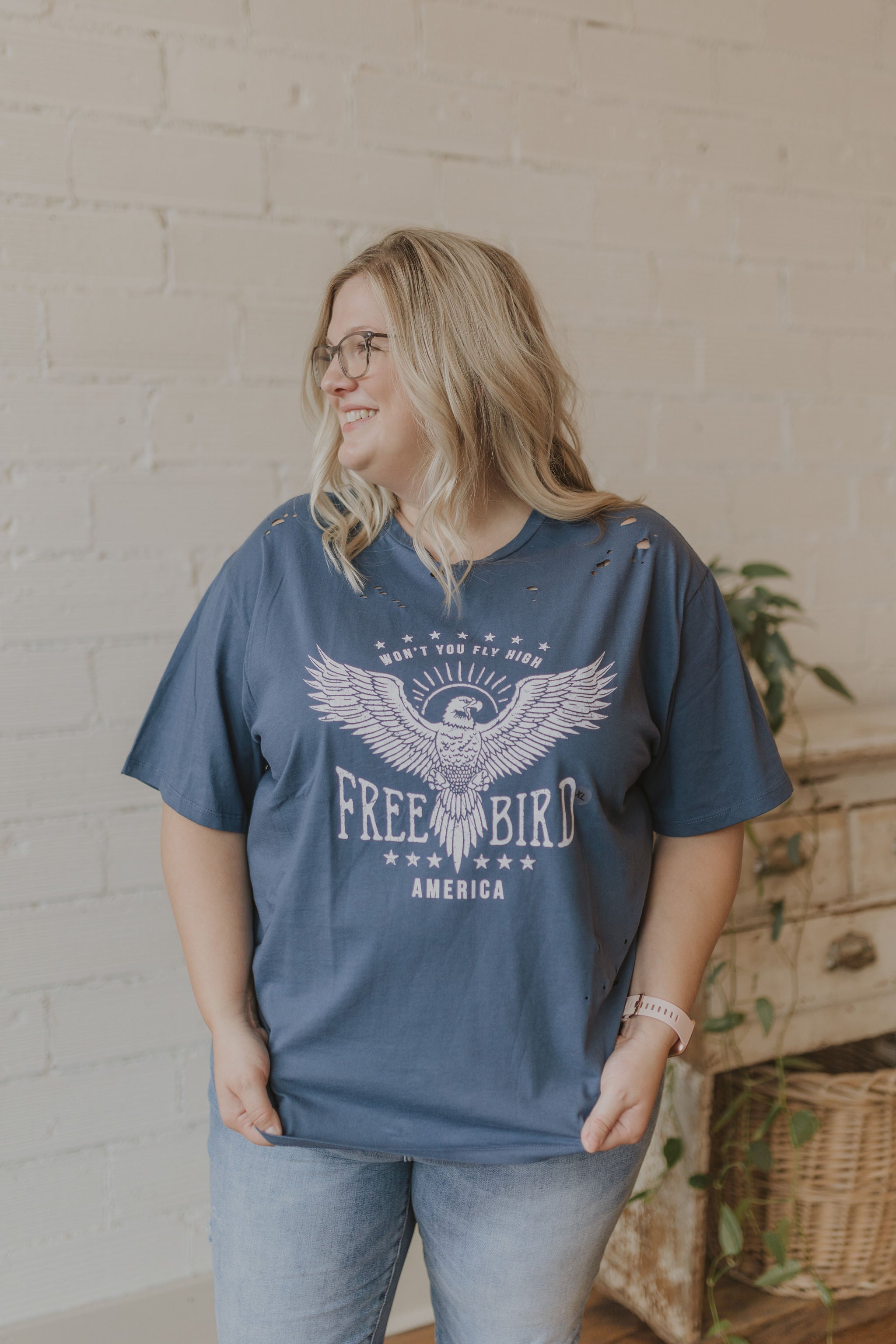 SANDY CURVY FREE BIRD GRAPHIC TEE