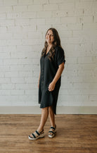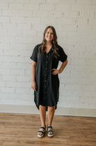Step out in style with the GIGI Button Down Collared Dress! Crafted from 100% polyester, this sleek black dress features a classic collar and button-down front, blending timeless charm with modern ease. Perfect for turning heads whether you're at brunch or a night out, its playful design keeps you looking effortlessly chic all day long.