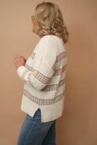 Cozy up in the NICKKIE MULTI-COLOR STRIPE OVERSIZED SWEATER, designed for relaxed days with a playful vibe. Its chunky striped knit, drop shoulder, and roomy boxy cut make it perfect for layering or lounging. Crafted from a soft blend of 75% acrylic and 25% nylon, it offers warmth and comfort without the weight. Whether you're heading out or staying in, this sweater adds a fun, effortless touch to any outfit.