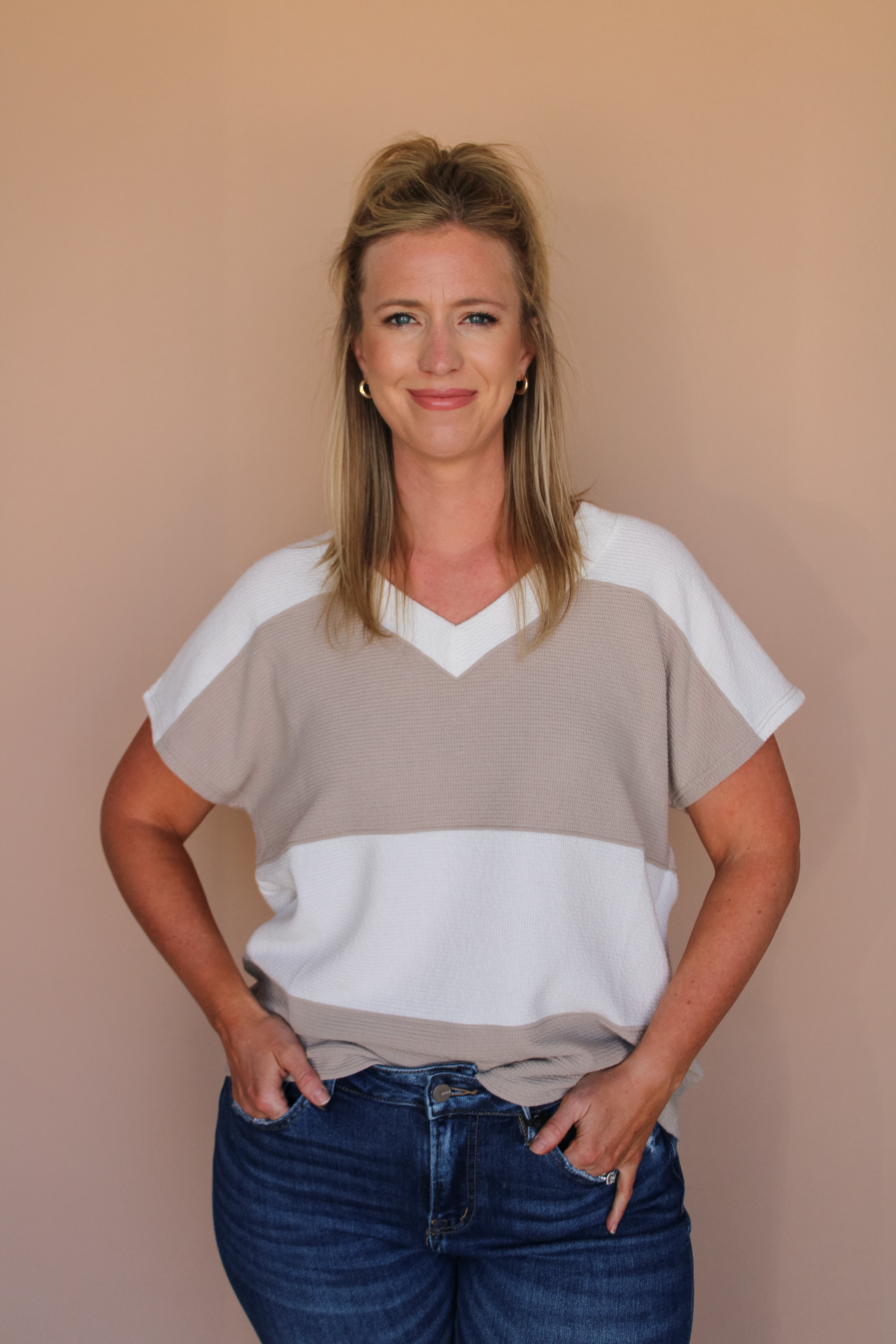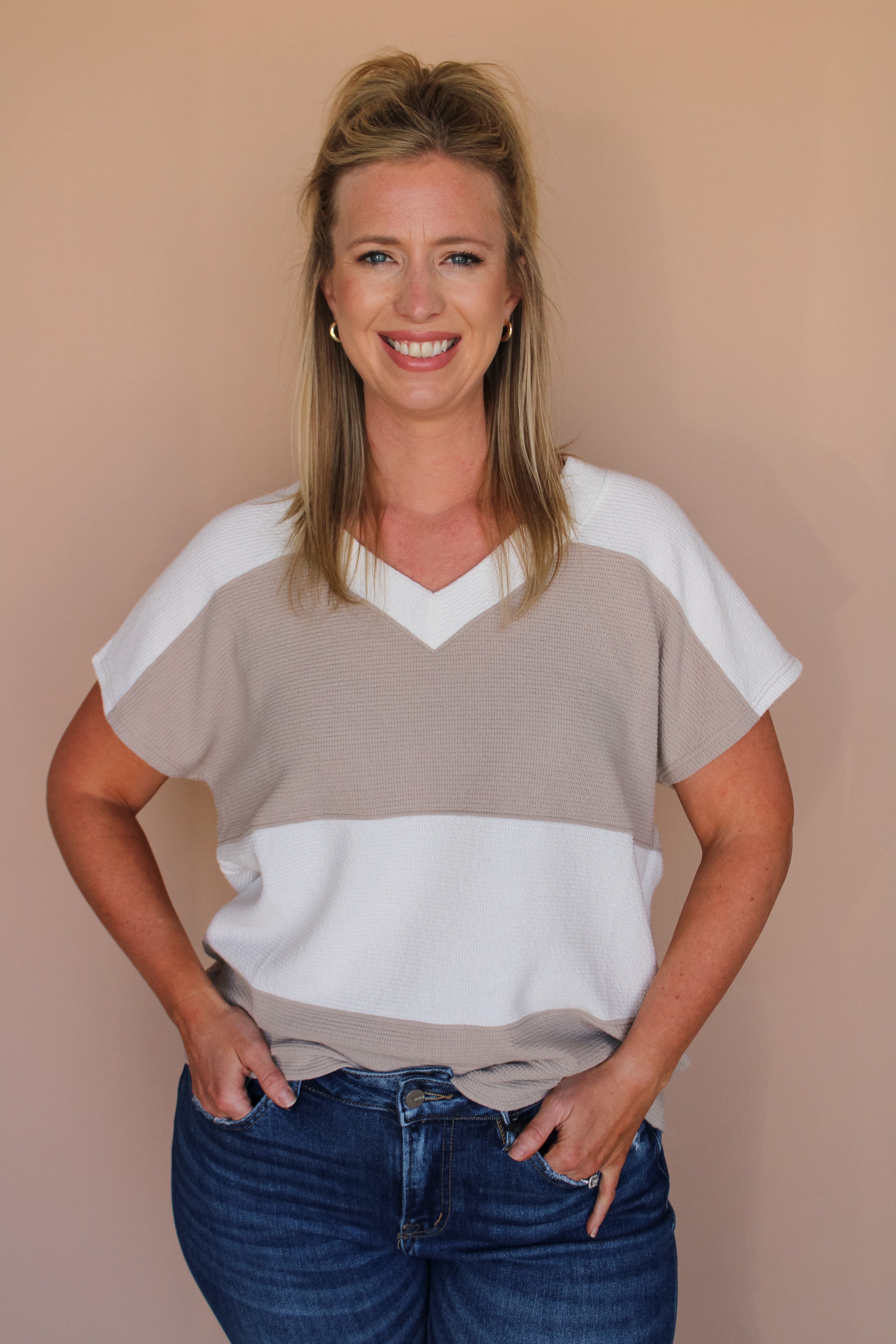 This knit top is like wearing a cloud - but make it fashion. The v-neck and thick stripes add a touch of style to the cozy fabric. Made with a blend of polyester, cotton, and spandex for ultimate comfort. Perfect for chilly days and looking effortlessly cool.