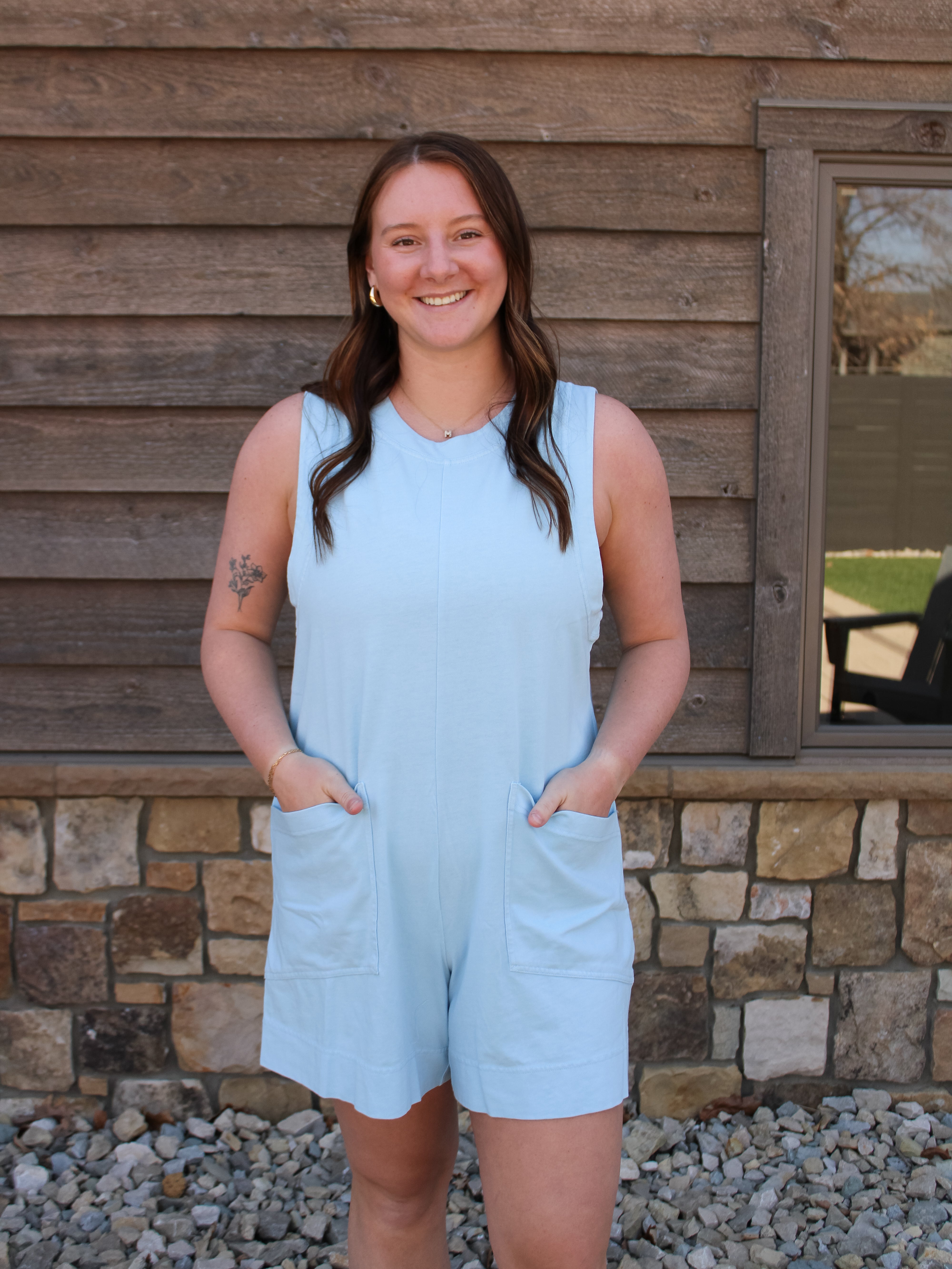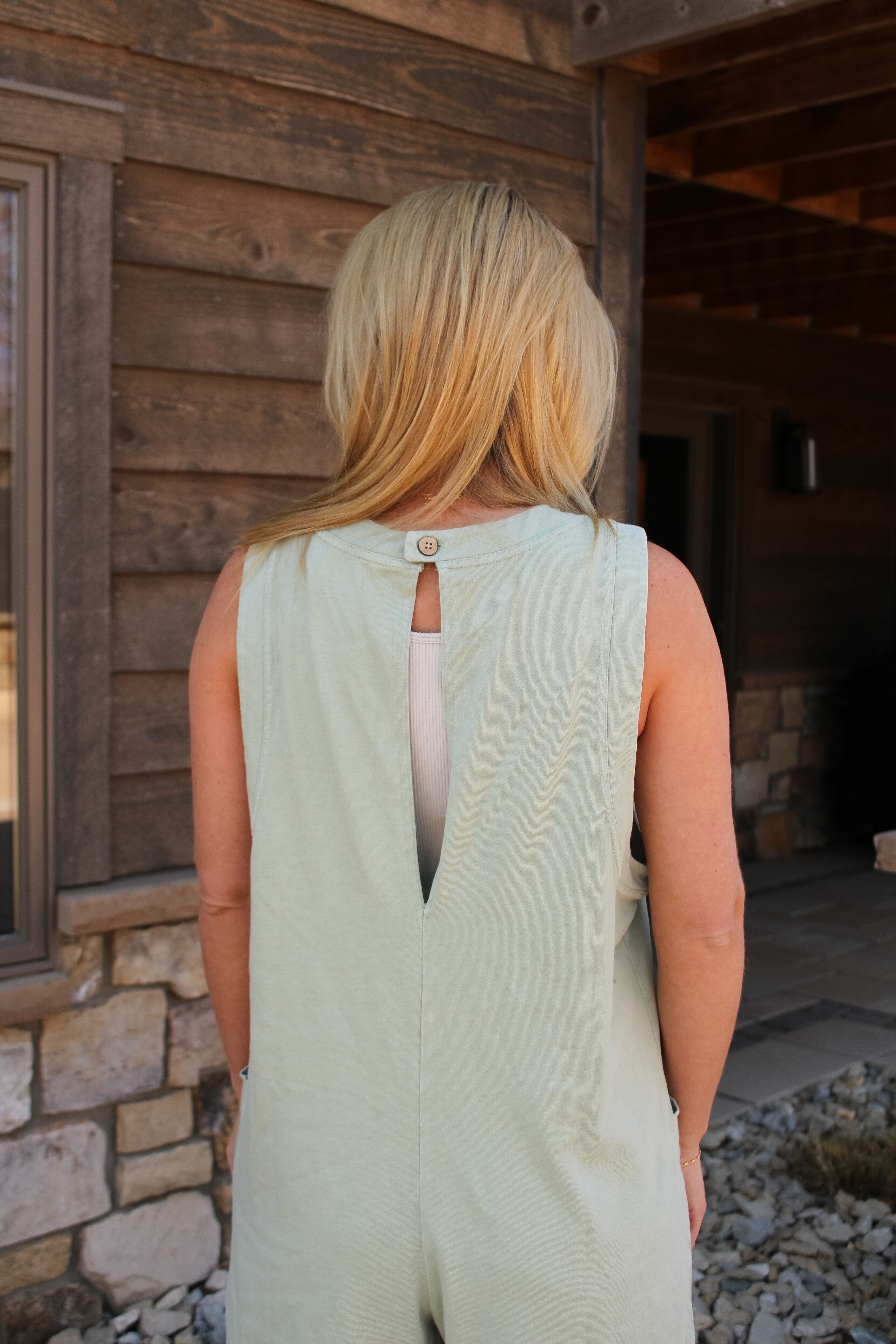 Crafted from breathable cotton fabric, this sleeveless romper ensures a light and airy feel. The unique mineral wash gives it a trendy, lived-in look. The open back details with a button closure add a touch of sophistication, making it the ideal choice for effortlessly stylish and comfortable summer days. Elevate your wardrobe with this versatile piece that seamlessly combines fashion and ease.