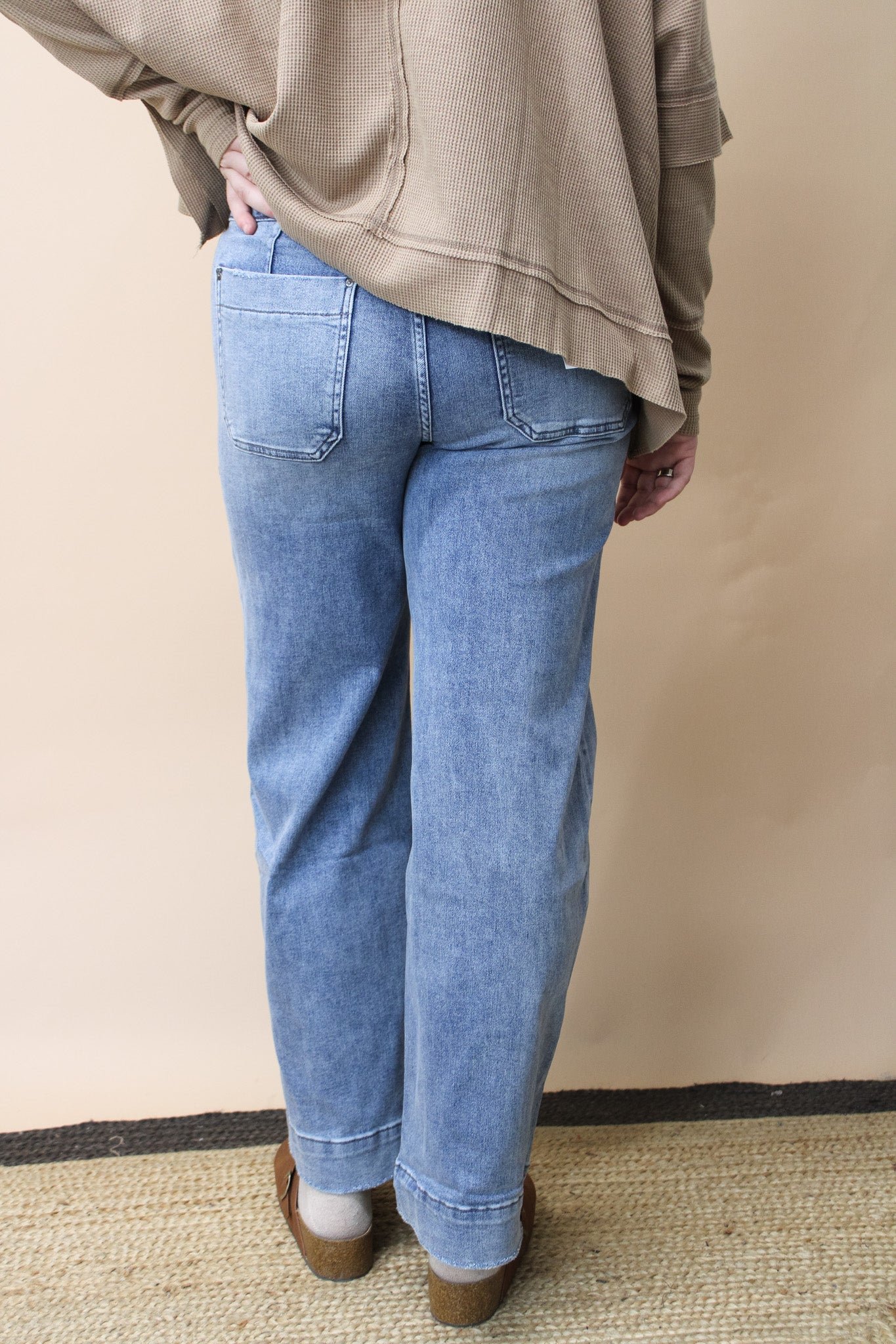 AYSHA SUPER HIGH RISE PATCH POCKET WIDE LEG JEAN