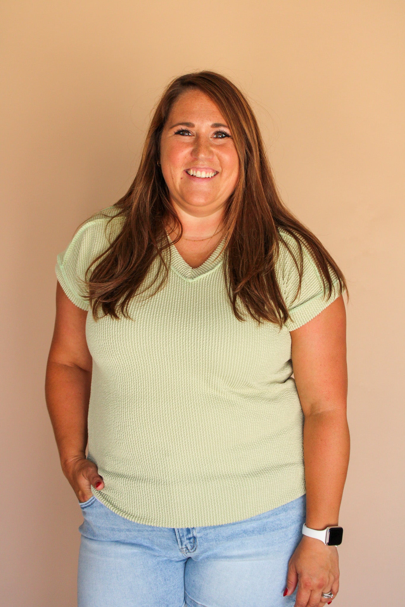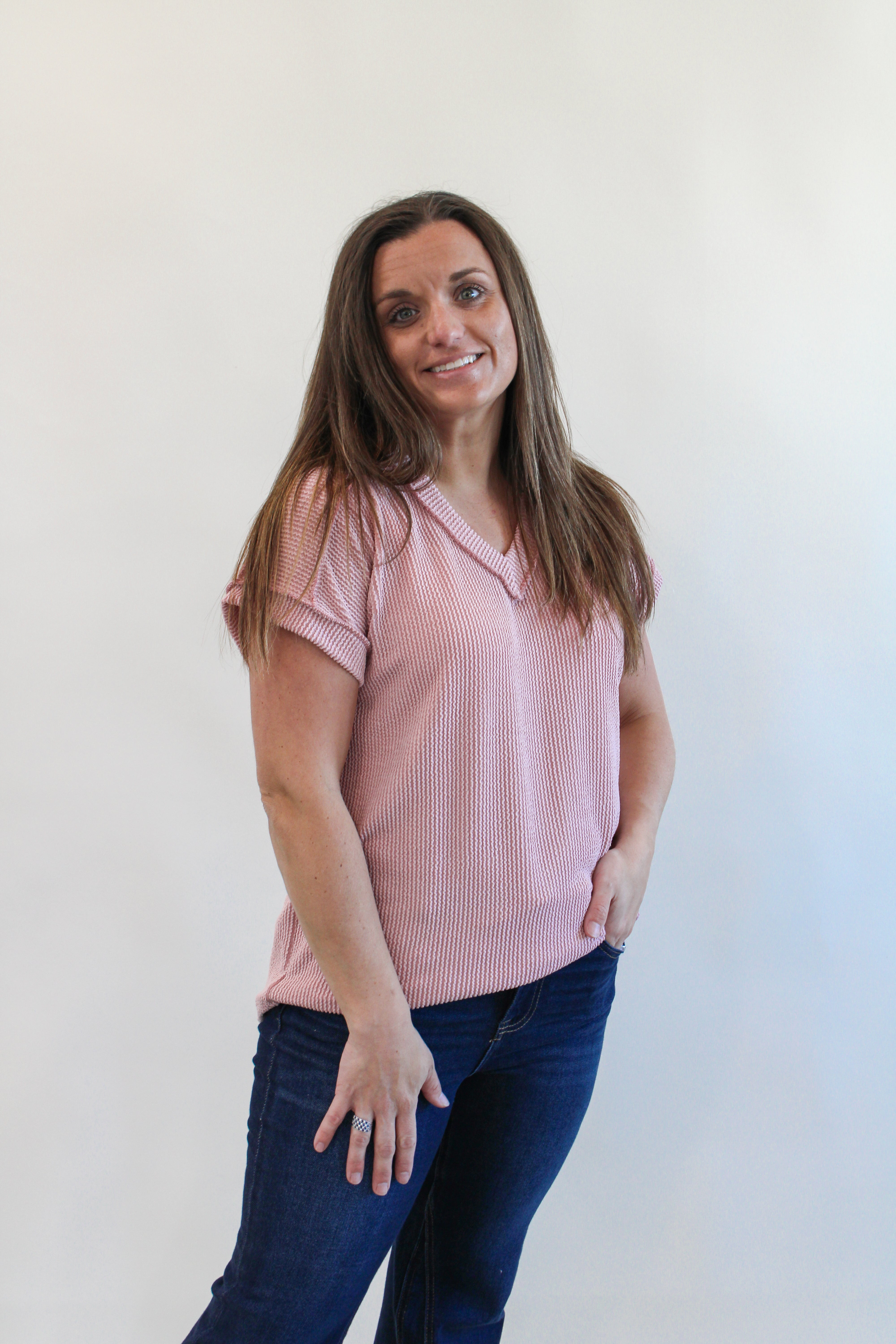CRISINDA RIBBED V-NECK TOP