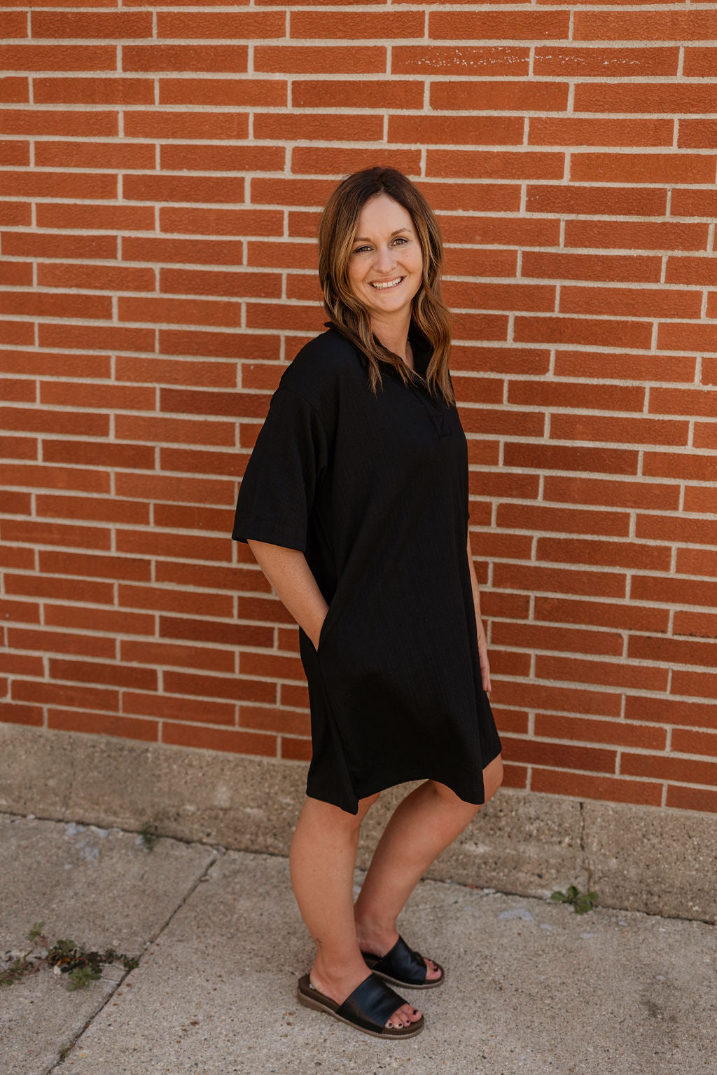 Featuring short sleeves and a collared neckline, this dress is perfect for any occasion. The unique textured fabric will make you stand out, and the convenient side pocket adds functionality without sacrificing style.