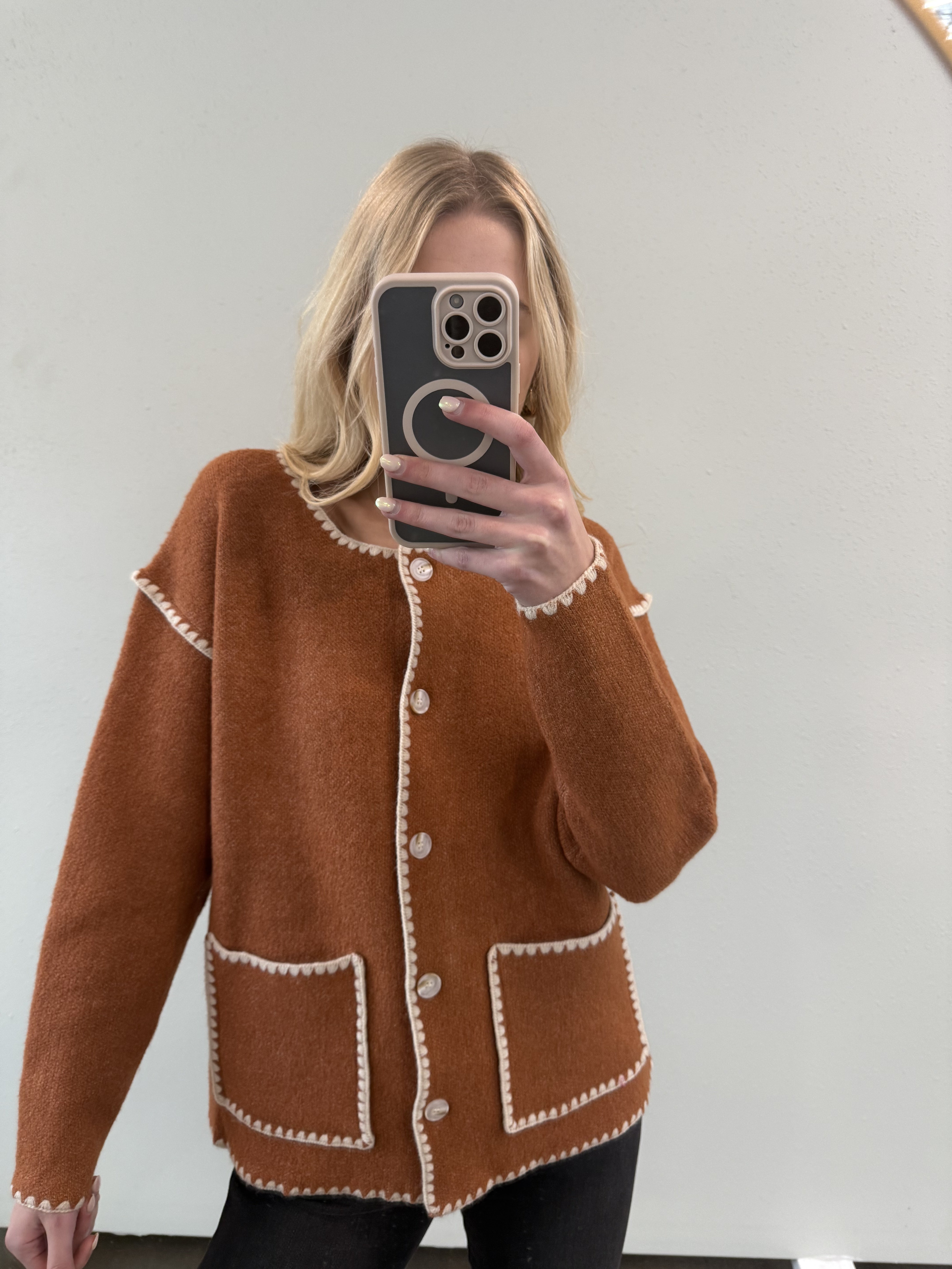 Stay chic and classy with Eleanor Trim Cardigan! This lightweight, soft cardigan is perfect for any occasion. Featuring elegant trim and button details, as well as handy pockets, it'll keep you stylish and comfortable all day long. (Pair it with anything for a "knit" look!)