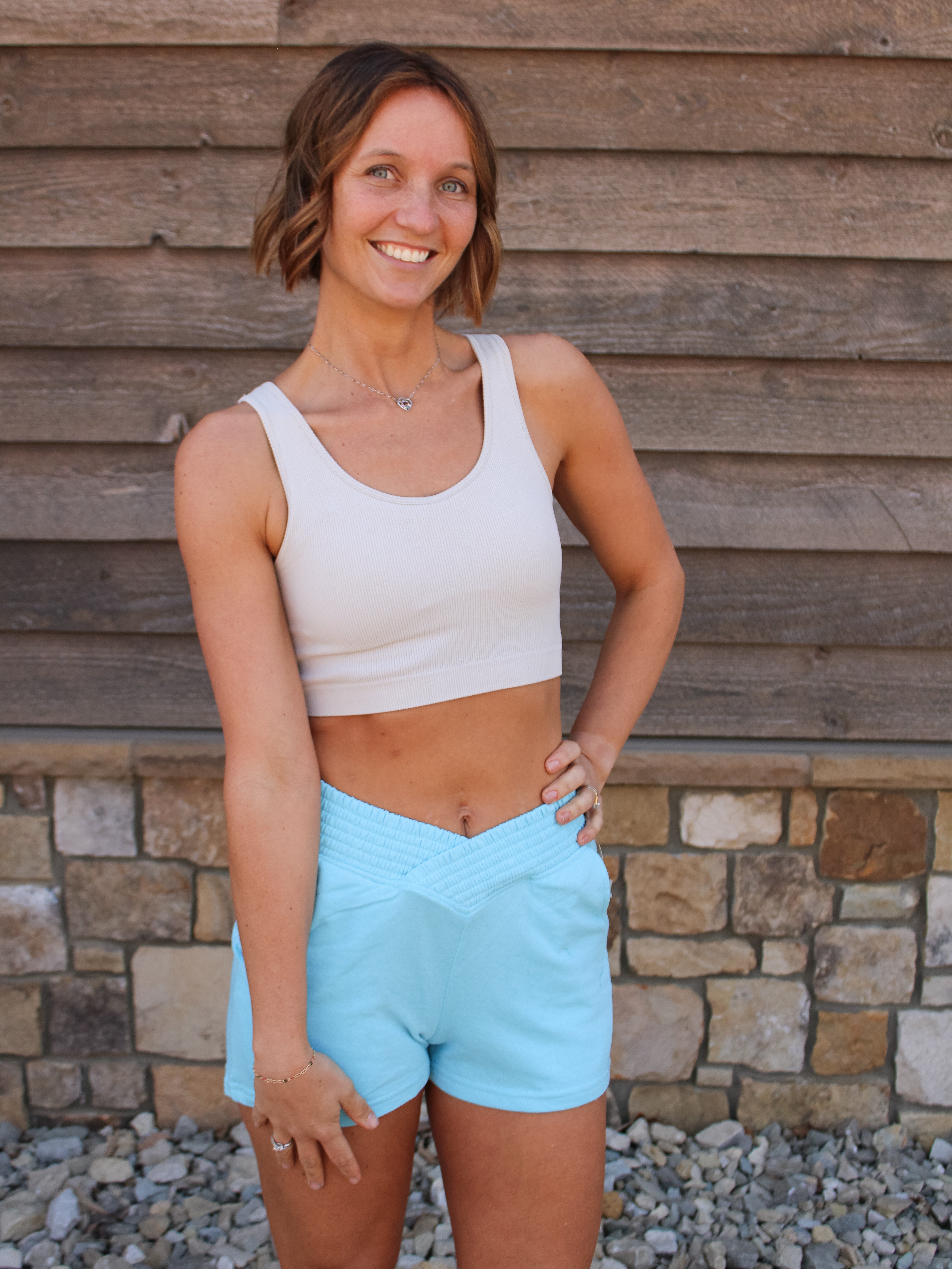 KARISA RIBBED CROSSOVER LOUNGE SHORTS