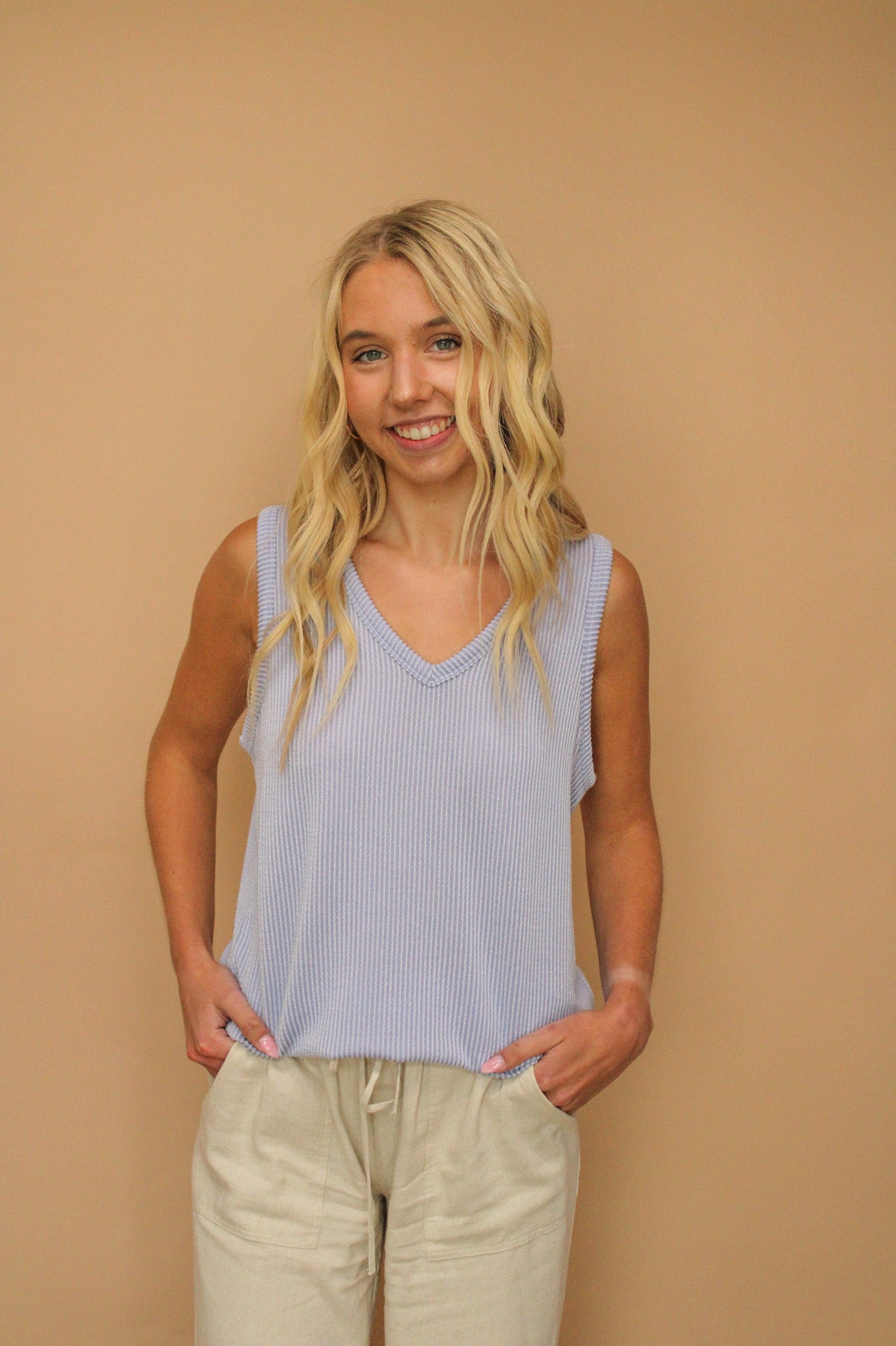 Dive into summer with our KATHIE RIBBED VNECK TANK! This playful yet premium sleeveless top hugs in all the right places with stretchy ribbed fabric that breathes when temperatures rise. Soft, lightweight, and oh-so-comfortable, it's the versatile essential your wardrobe's been begging for. Dress it up or keep it casual – this fitted tank plays well with everything!