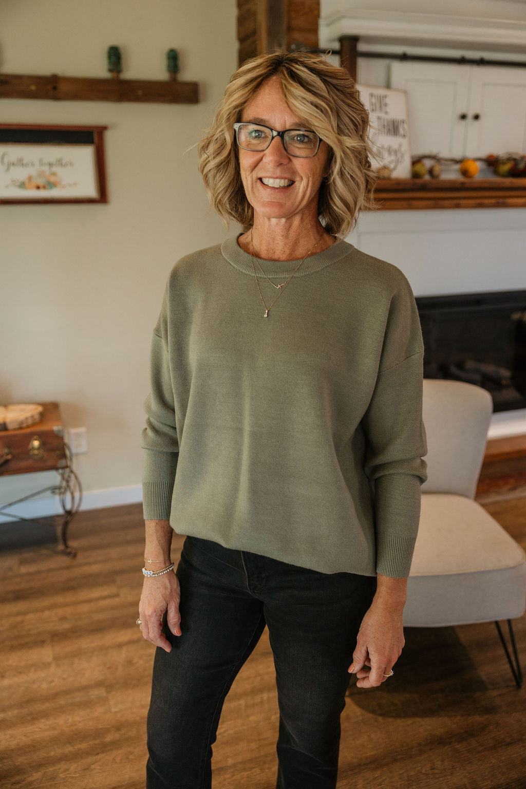 Stay cozy and chic in our LENNOX KNIT SWEATER! Made with soft, breathable fabric (55% viscose, 45% nylon) that keeps you warm without weighing you down. Long sleeves and a classic crewneck make this olive sweater a versatile addition to any wardrobe.