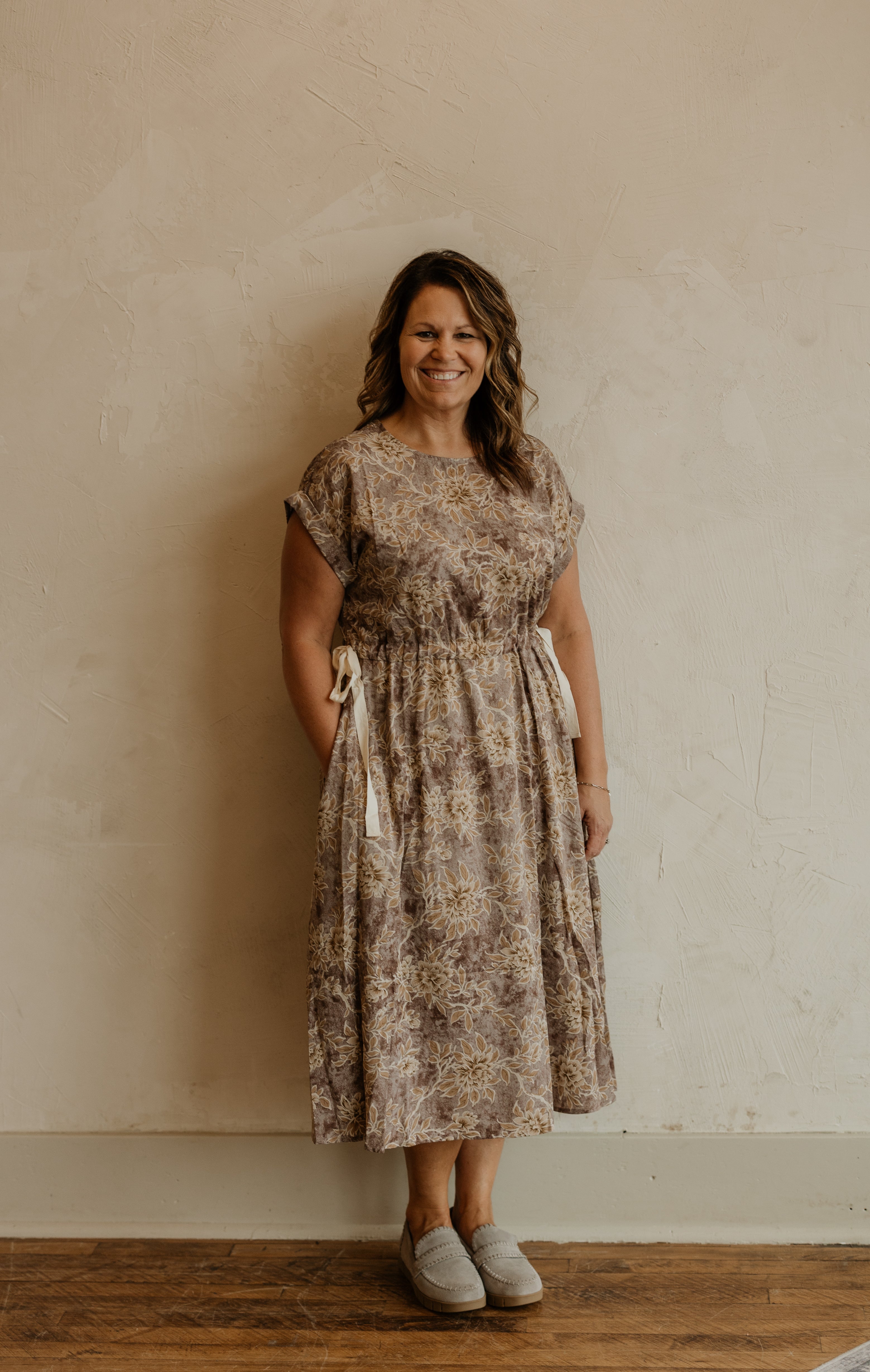 MARLEE DROP SHOULDER FLORAL MIDI DRESS