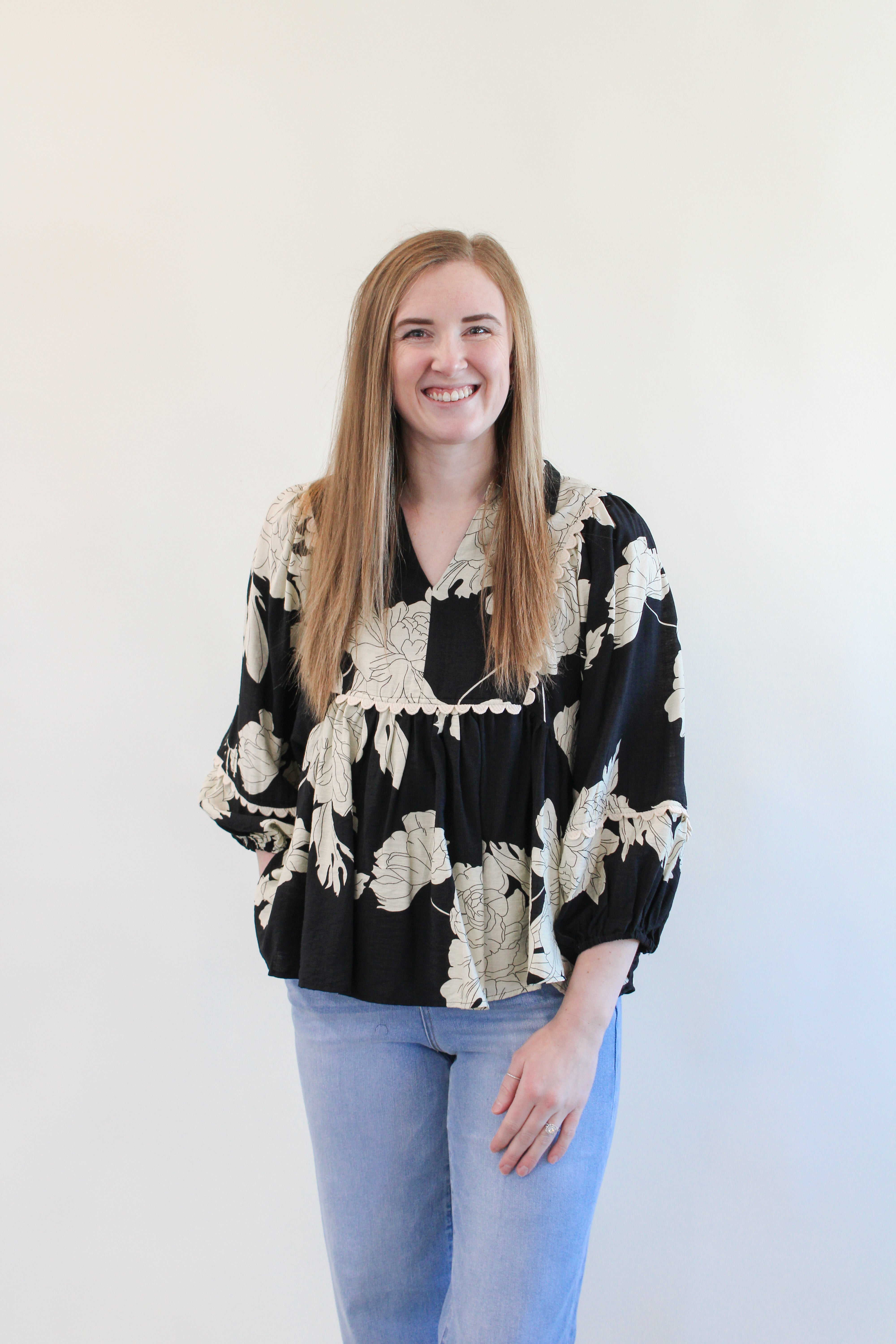Bloom into style with our MARRI flowy floral blouse. The 3/4 sleeves, collared neckline, and scallop details make this a must-have for any fashionista. And with its flowy floral imprint, you'll feel as light and carefree as a spring breeze.