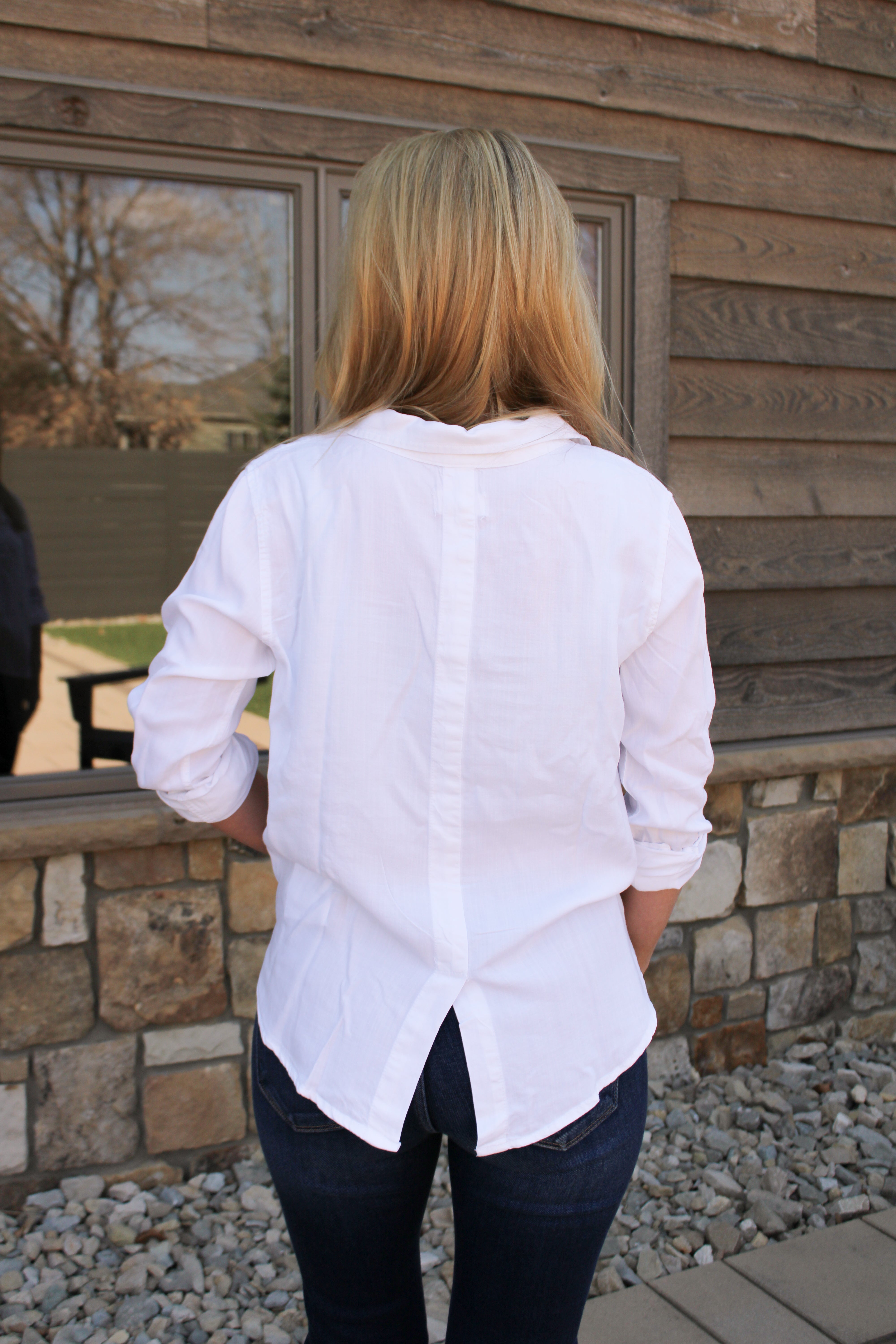 Can't go wrong in this essential button up, featured in our lightweight fabrication, button front closure and shirt tail hem with back vent.