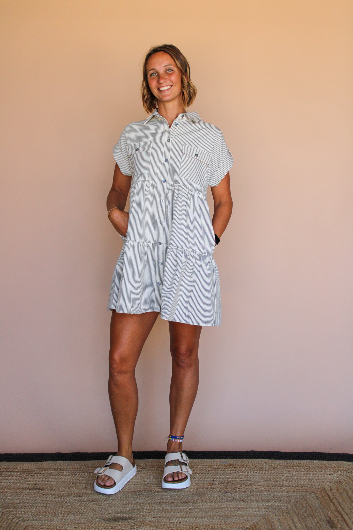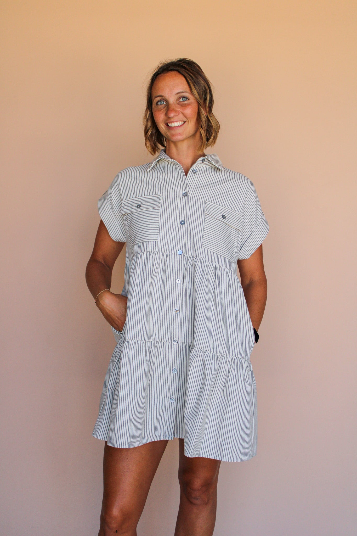 STEPHANIE BUTTON DOWN STRIPED DRESS