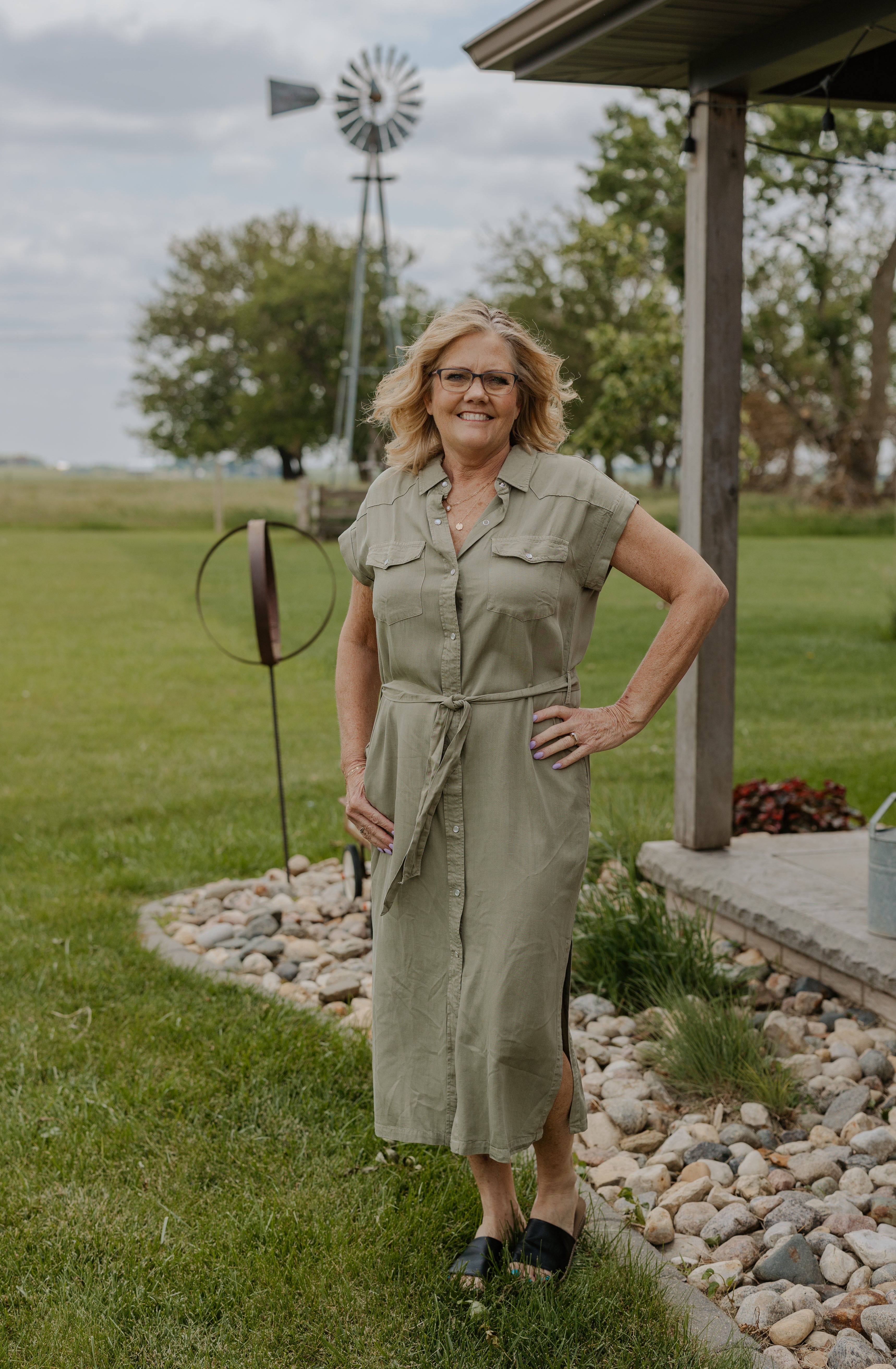 Flattering waist tie and side slit details make every day midi dress an easy, effortless option.