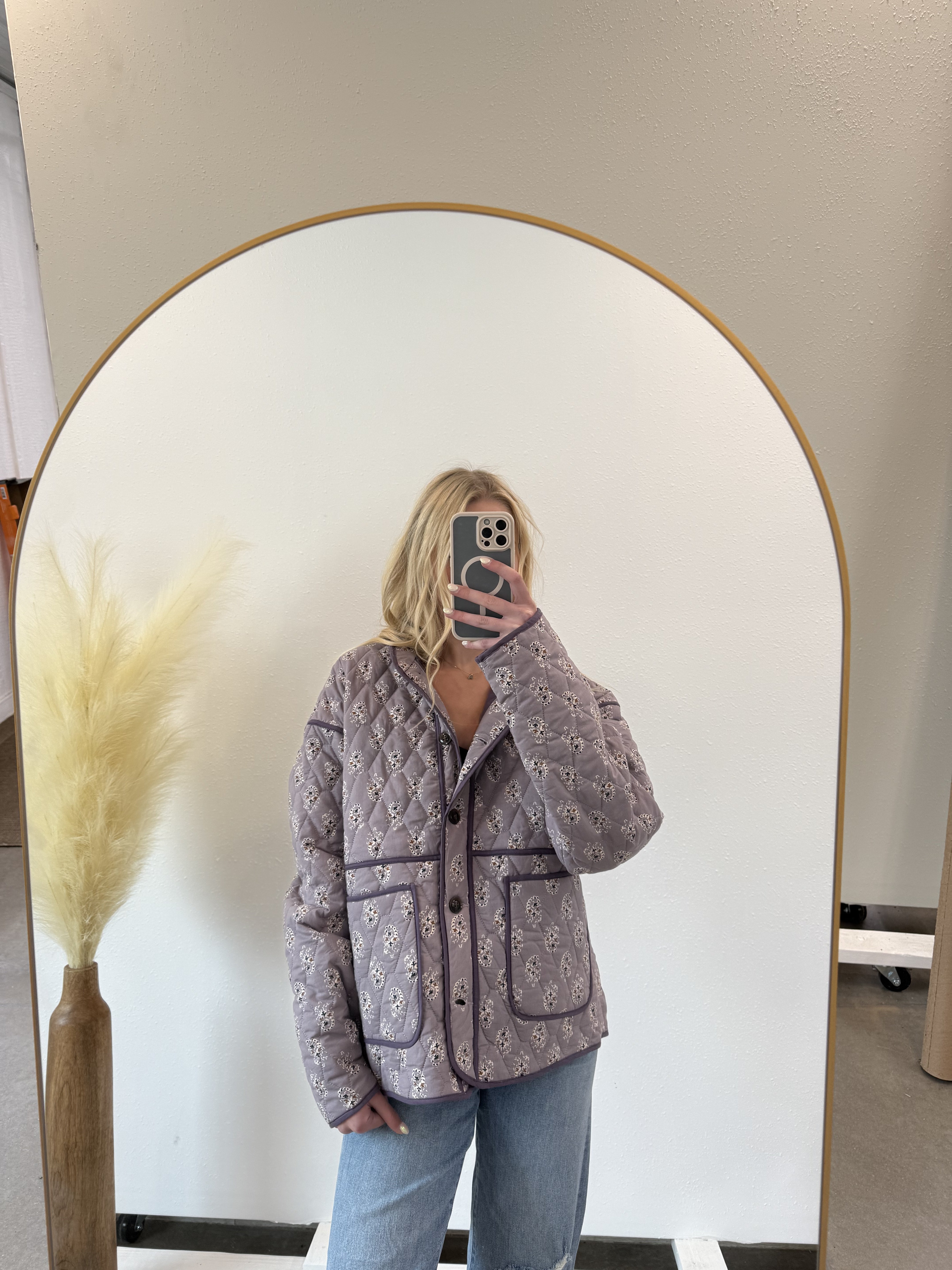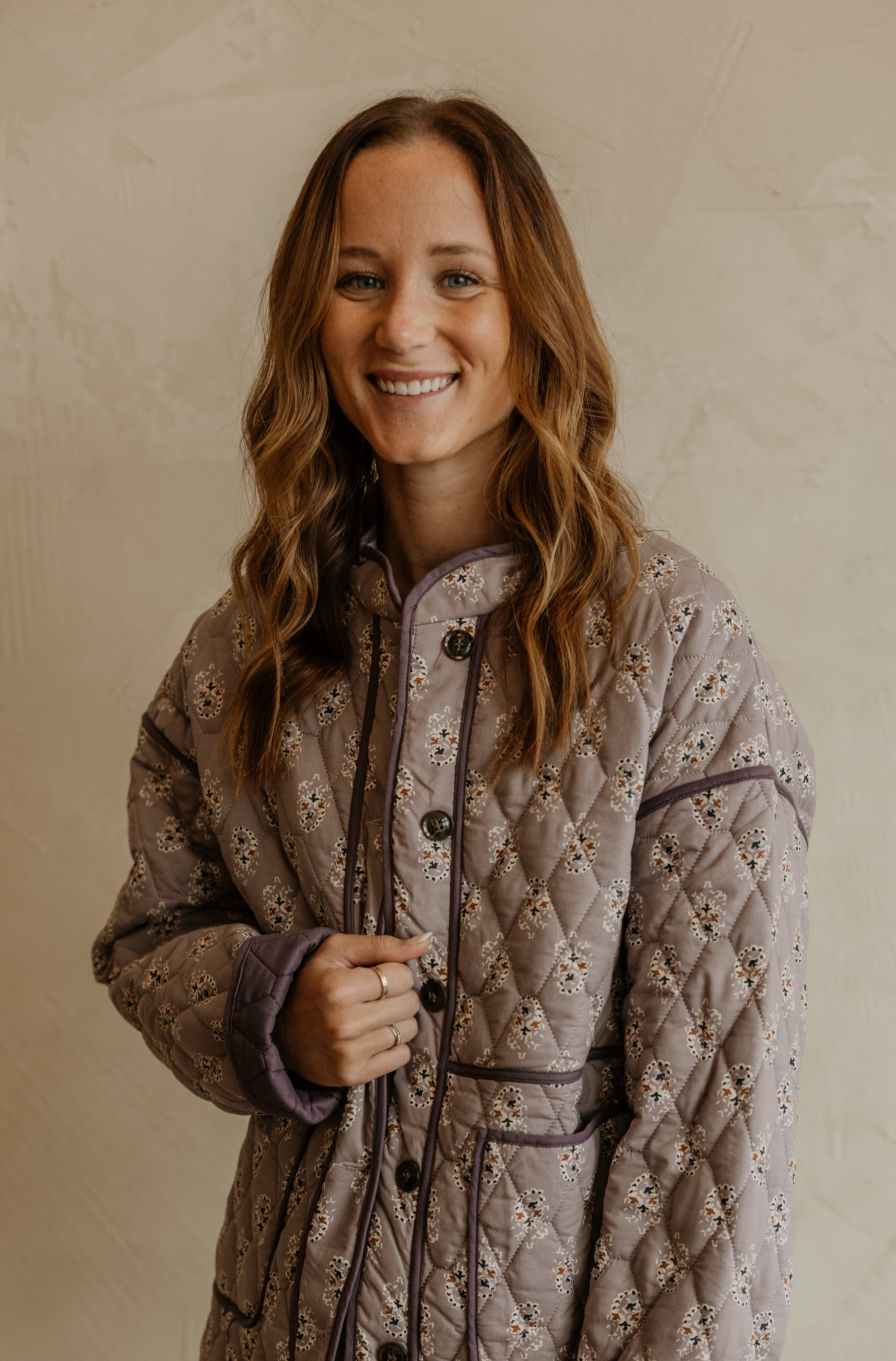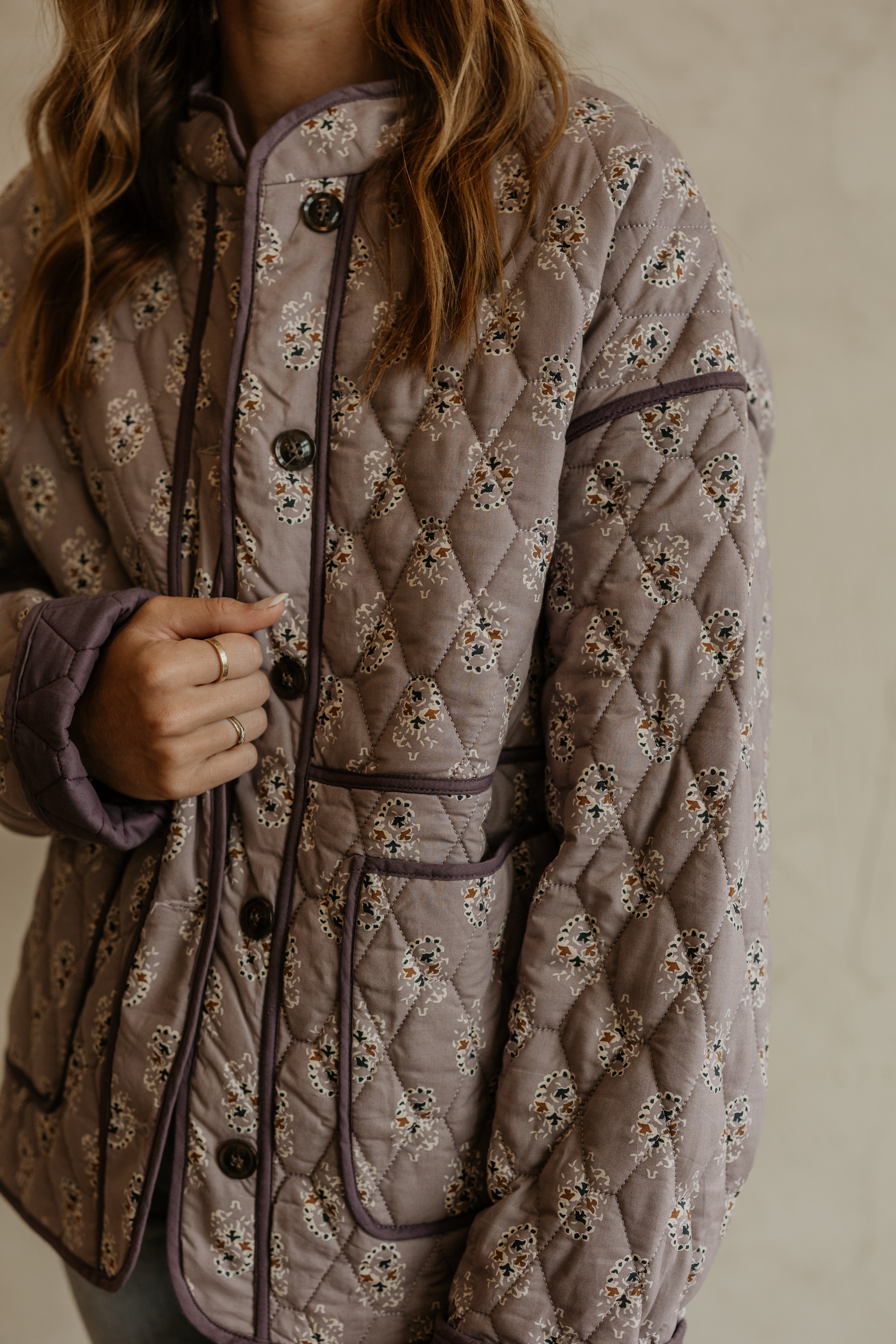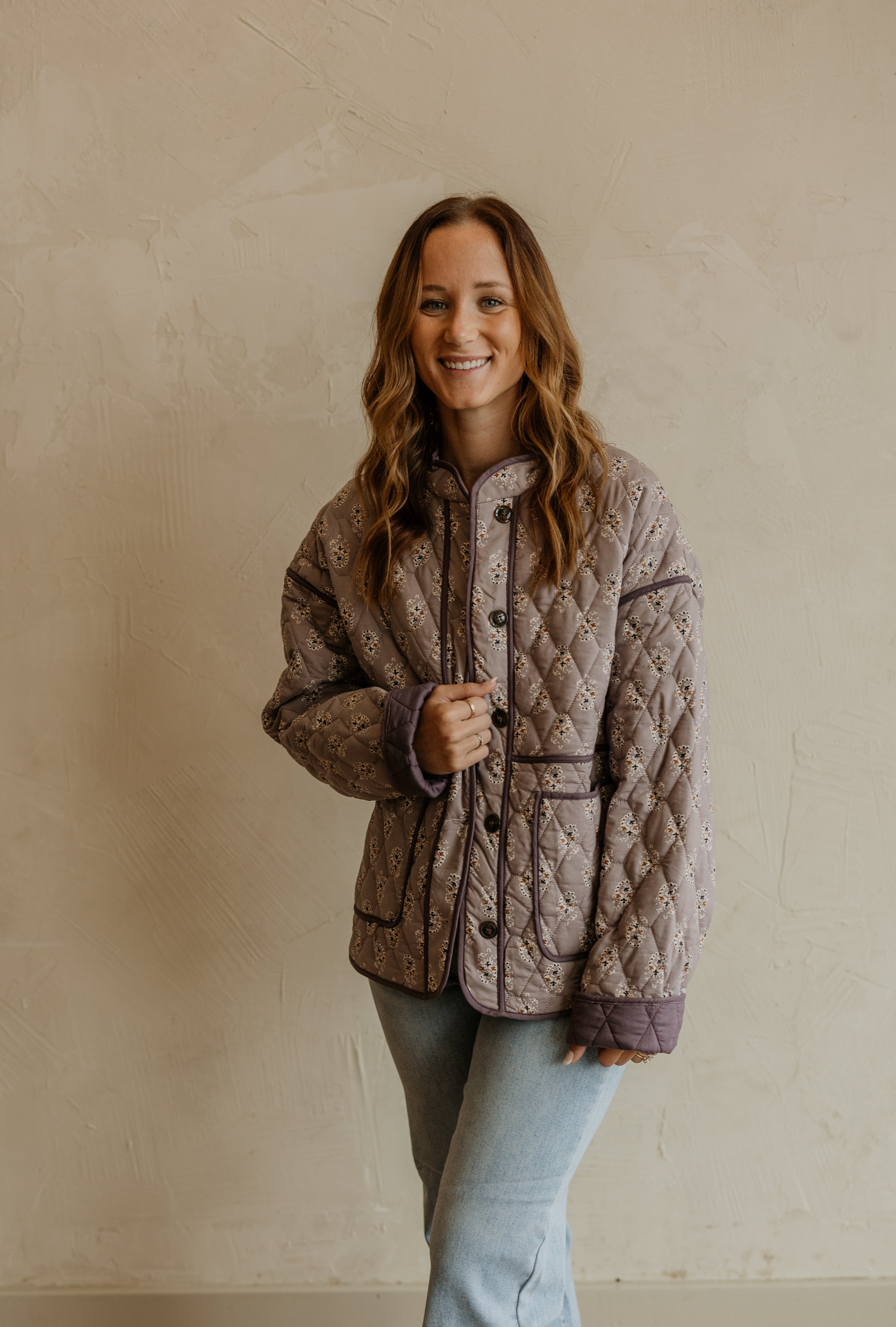 Stay cozy and stylish with our Floral Quilted Puffer Jacket. Made from a soft cotton blend, it features an enzyme wash for extra softness, a unique grid quilting design, and trendy drop sleeves. Perfect for those chilly days when you still want to look chic.
