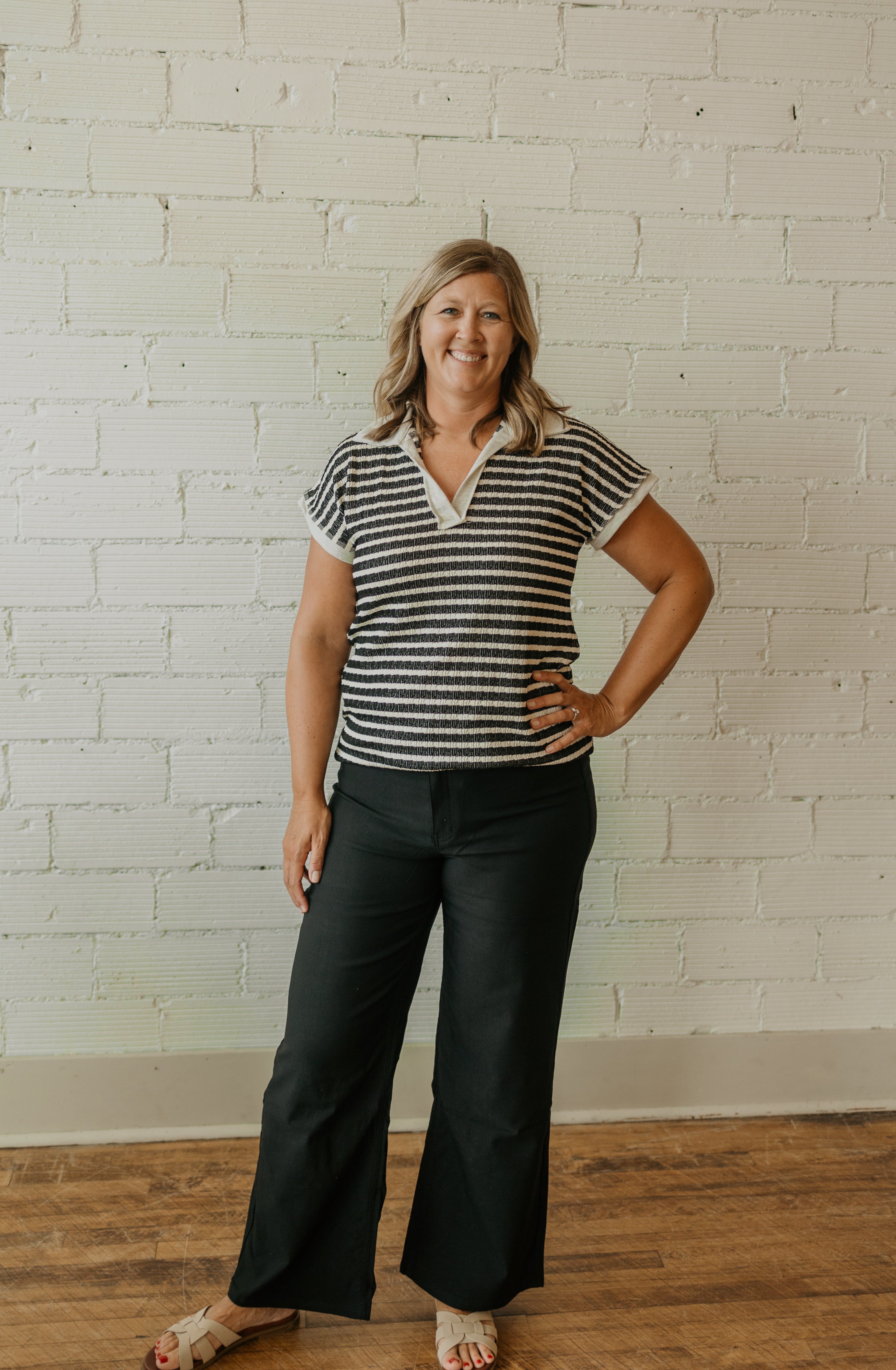These super high-rise wide-leg pants blend comfort and style with a soft cotton-rich fabric and a flattering 11" front rise. Perfect for making a bold statement while keeping things cozy and cool all day long.