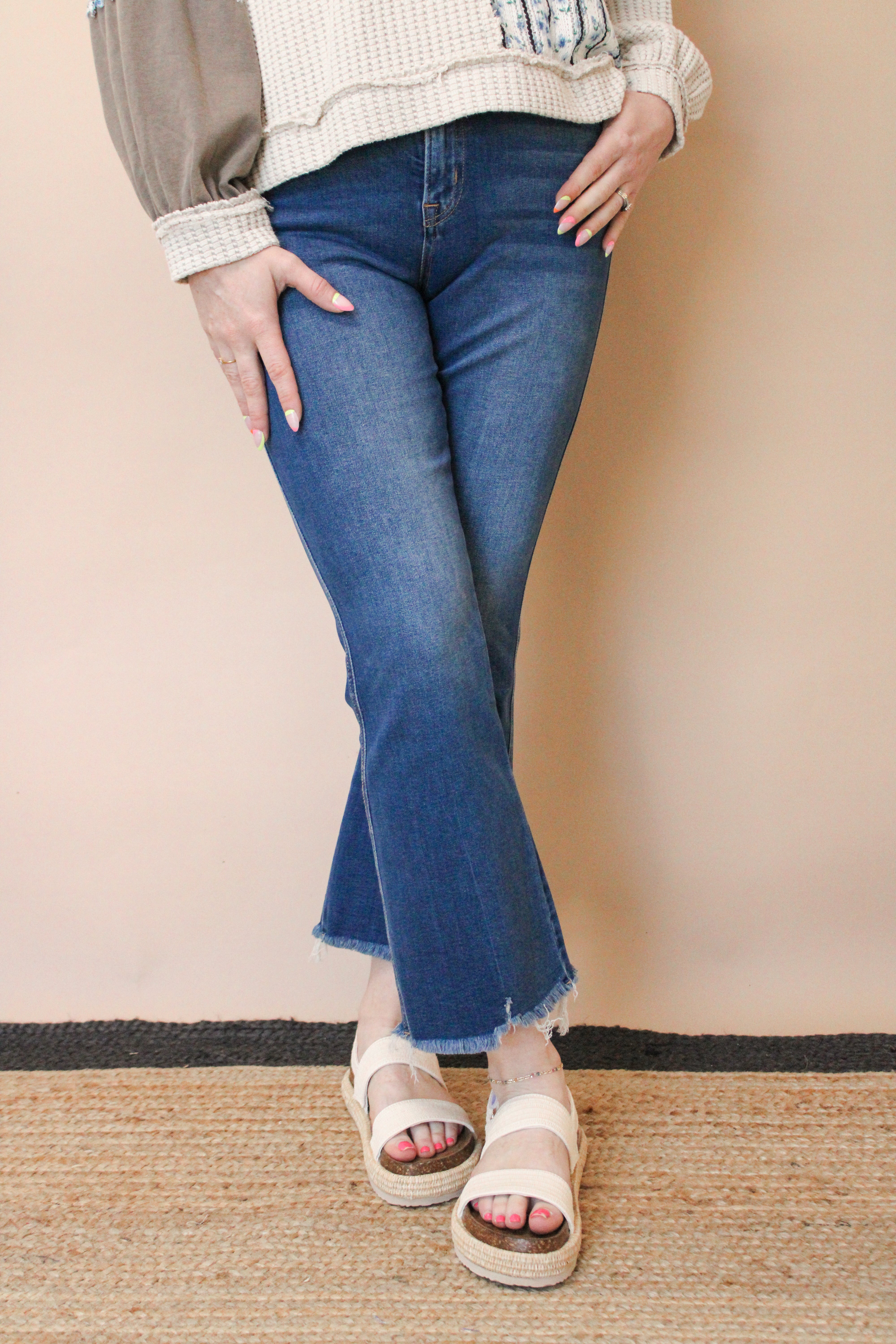 JANELLE CURVY MEDIUM WASHED HIGH RISE CROP FLARED JEANS