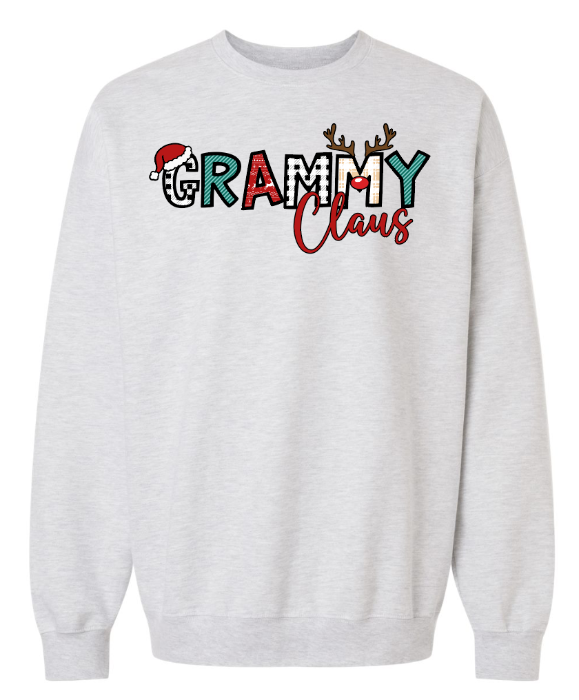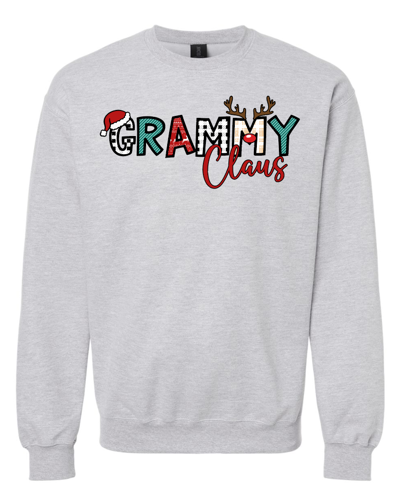 Get festive in style with our Grammy Claus crewneck — the perfect holiday sweatshirt for every proud aunt! Featuring bold patterned lettering, a Santa-hat accent, and a playful Rudolph-inspired “T,” this cozy sweatshirt brings holiday cheer to any gathering.