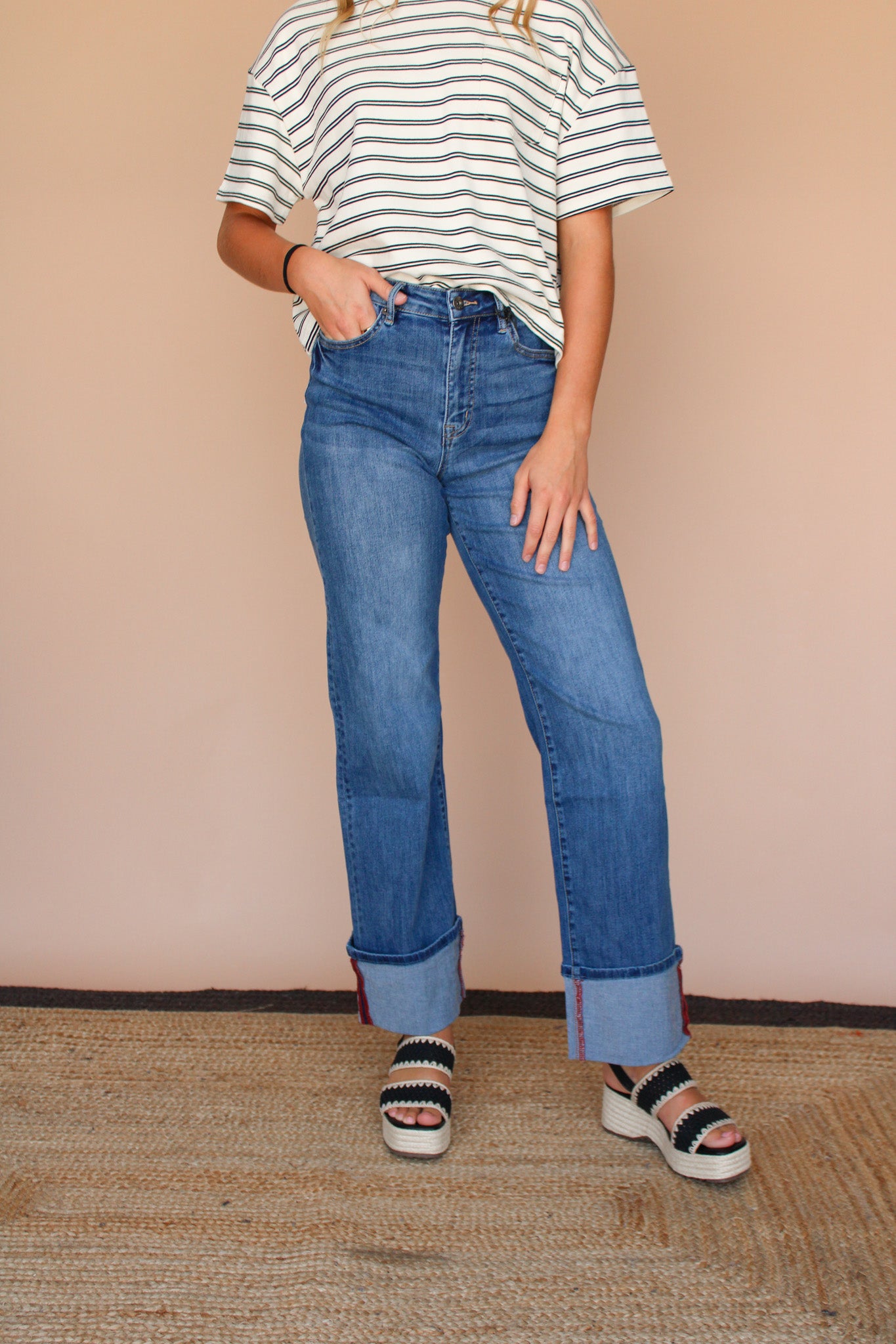 SHEENA HIGH RISE CUFFED WIDE LEG JEAN