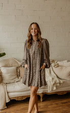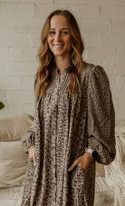 Step out in style with the JOJO Long Sleeve Cheetah Mini Dress. This playful button-down mini features a subtle muted cheetah print that adds wild charm without overpowering. The long sleeves balance the flirty length, making it perfect for day-to-night looks that roar with confidence.
