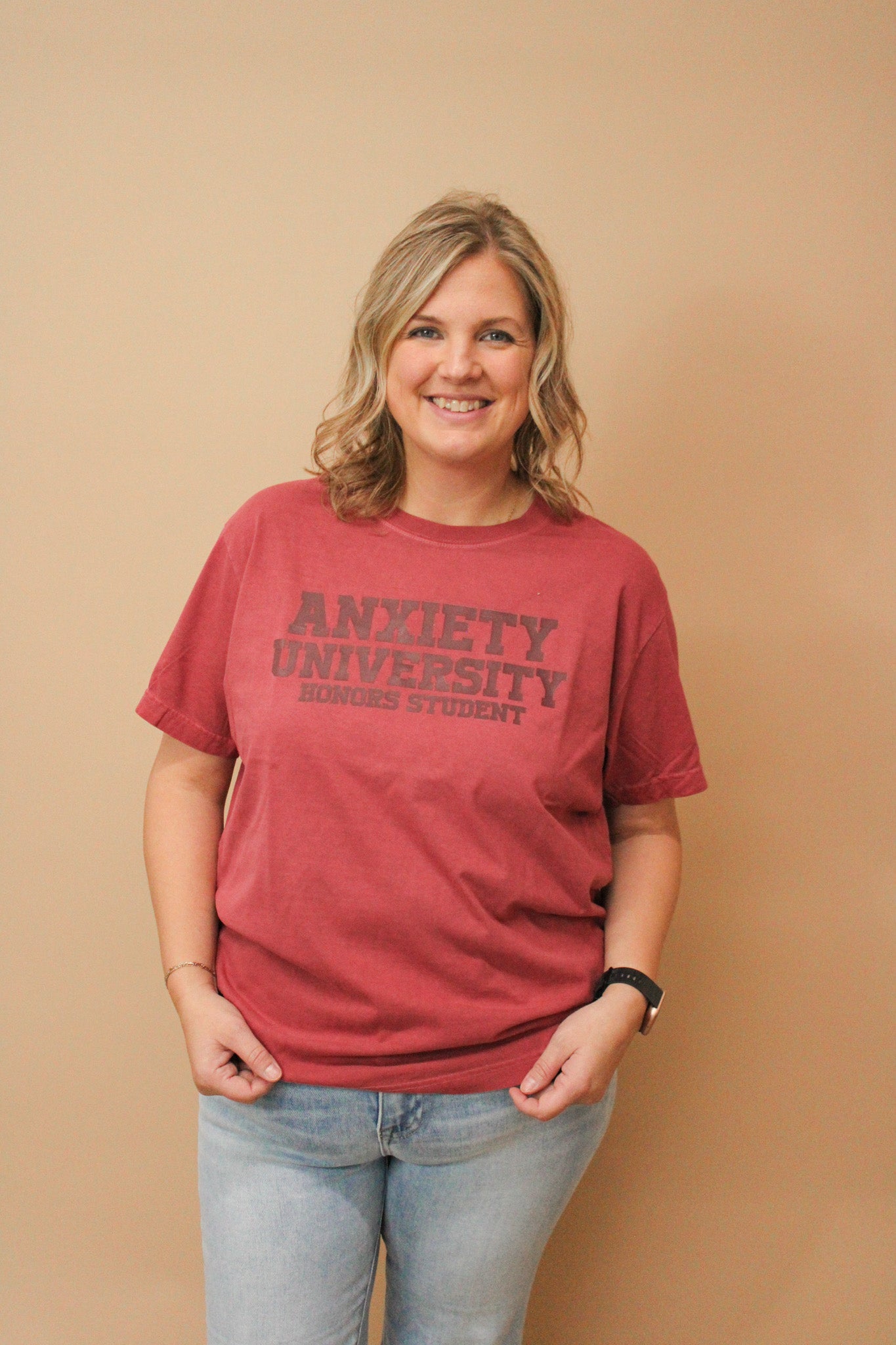 Show off your unique vibe with the Anxiety University Graphic Tee, featuring simple collegiate text on a super soft heavyweight Bella fabric. Designed for comfort and style, this tee brings a playful twist to everyday wear, perfect for those who embrace their quirks with confidence. Available in regular and curvy fits for a great look on everyone!