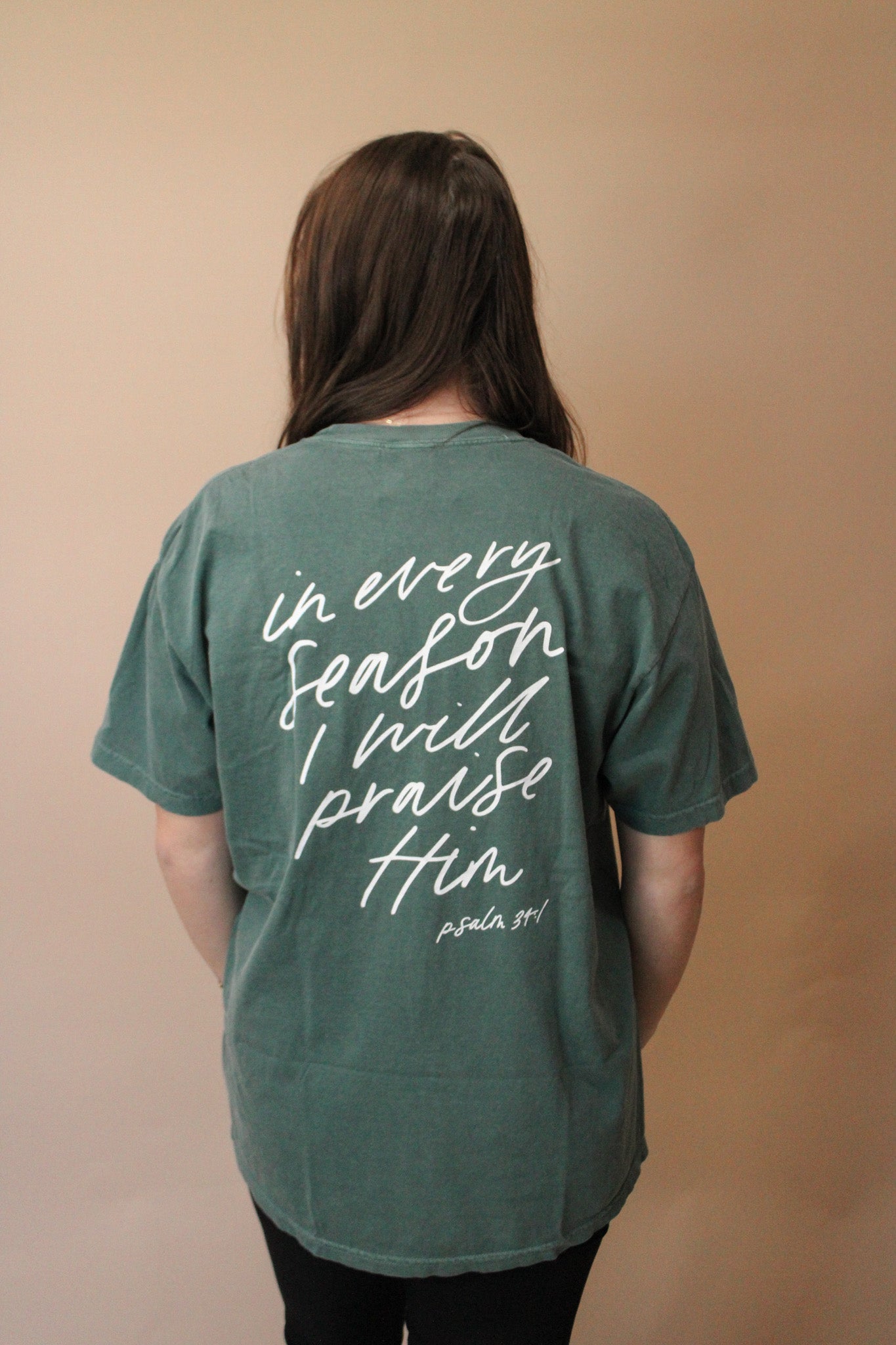 Stay cozy and stylish all year long with the IN EVERY SEASON GRAPHIC TEE from Comfort Colors. Featuring vibrant prints on both front and back, this tee brings fun and flair to your everyday look. Perfect for layering or wearing solo, it promises comfort that lasts through every season. Embrace color, comfort, and a playful vibe wherever you go!