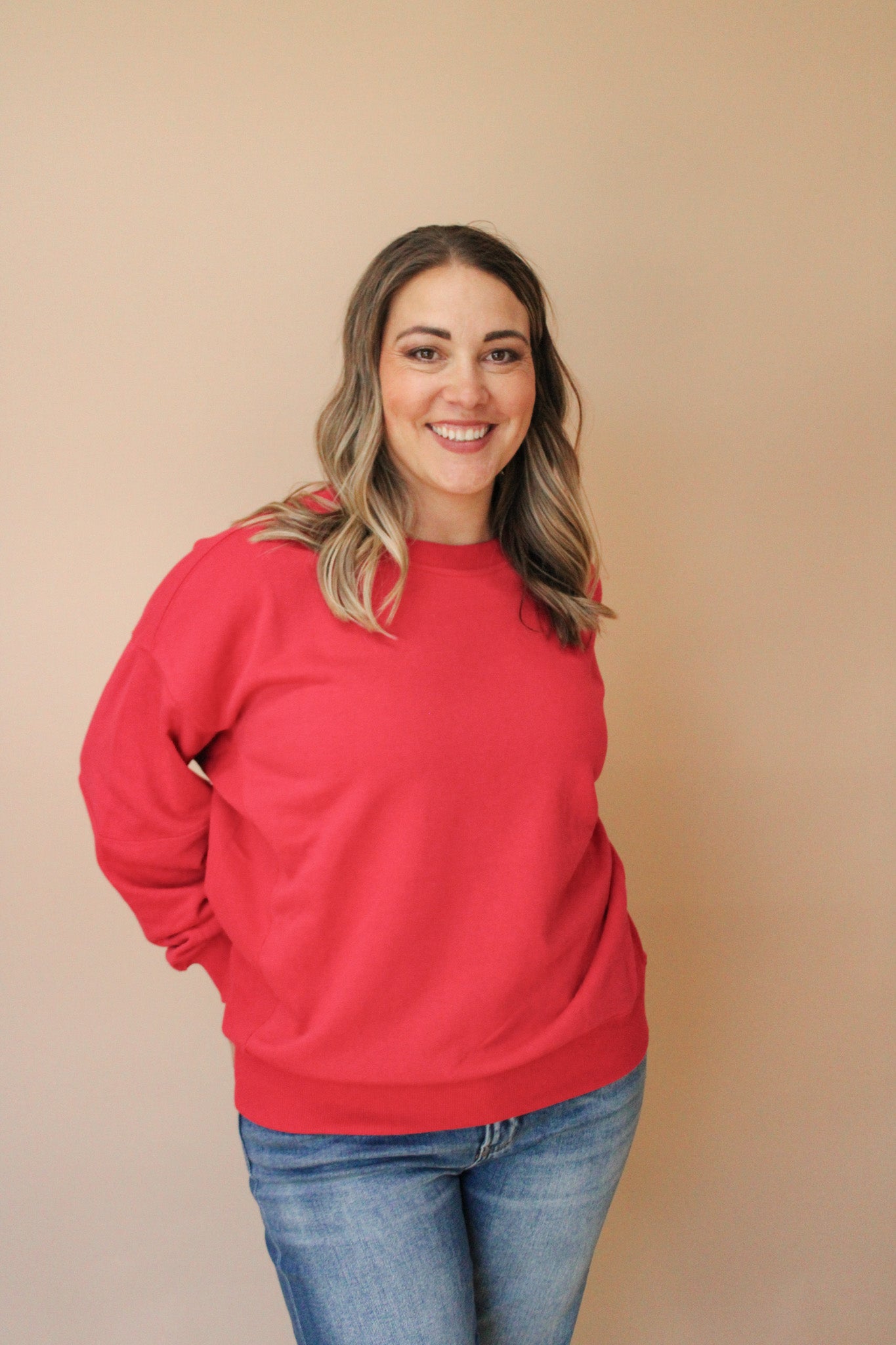 Meet your new go-to layer! The Jessie French Terry Pullover wraps you in buttery-soft comfort with its cozy French terry construction. Featuring a relaxed fit and effortlessly cool dropped shoulders, this crew neck top is all about that laid-back vibe. Thoughtful seaming details and ribbed accents at the neckline, cuffs, side line, and hem add visual interest while keeping everything in place. Whether you're lounging at home or running errands, this versatile pullover is your ticket to looking put-together without trying too hard.