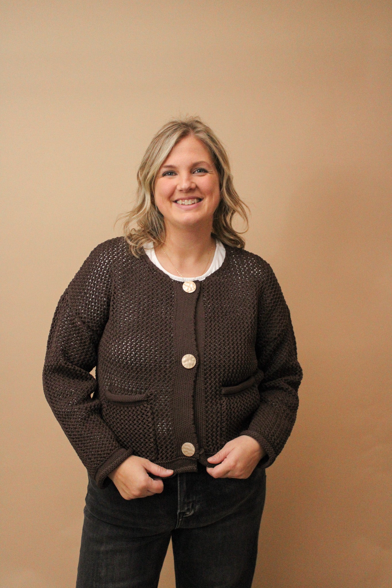 Cozy up in style with the Nicole Chunky Knit Button Down Cardigan! Featuring big buttons and an open knit design, this cardigan adds a fun, textured touch to your outfit. The handy pockets are perfect for stashing small essentials or warming your hands on chilly days. Perfect for layering, it brings playful charm and comfy warmth wherever you go.