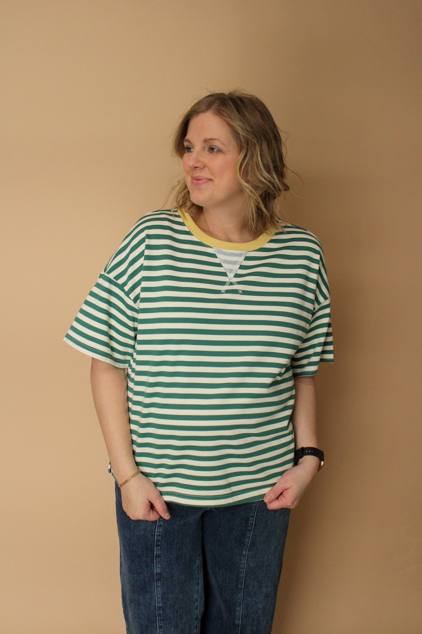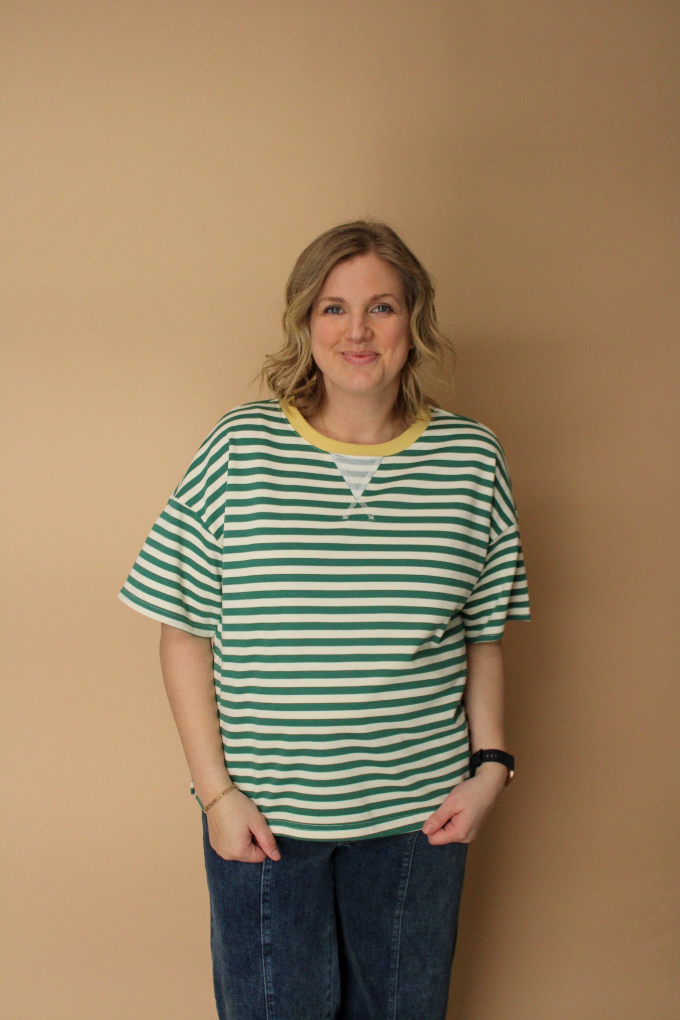 PIPER STRIPED COLORBLOCK SHORT SLEEVE TOP