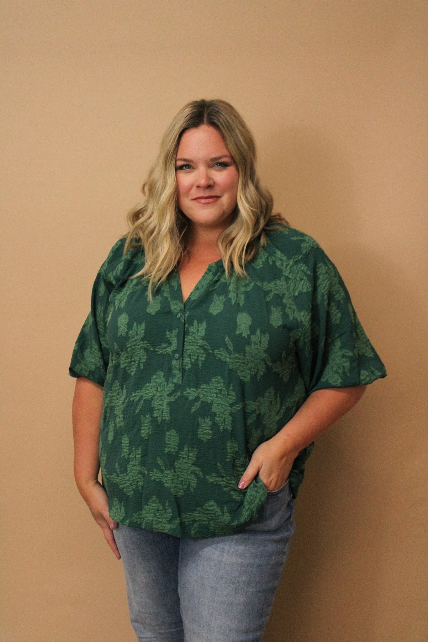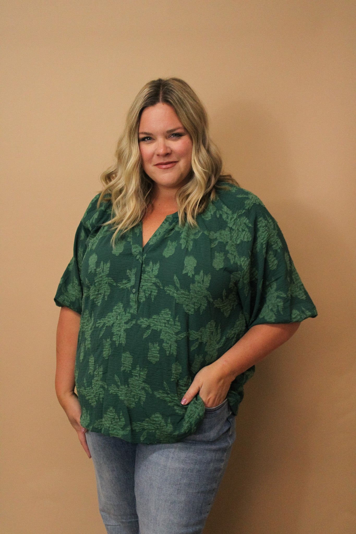 Embrace your playful side with the Rita Curvy Floral Applique Blouse. Featuring delicate floral appliques and a button-down design, this blouse adds a charming touch to your outfit. Its flattering curvy fit celebrates your shape while the vibrant floral details bring a fresh, feminine vibe perfect for any occasion.