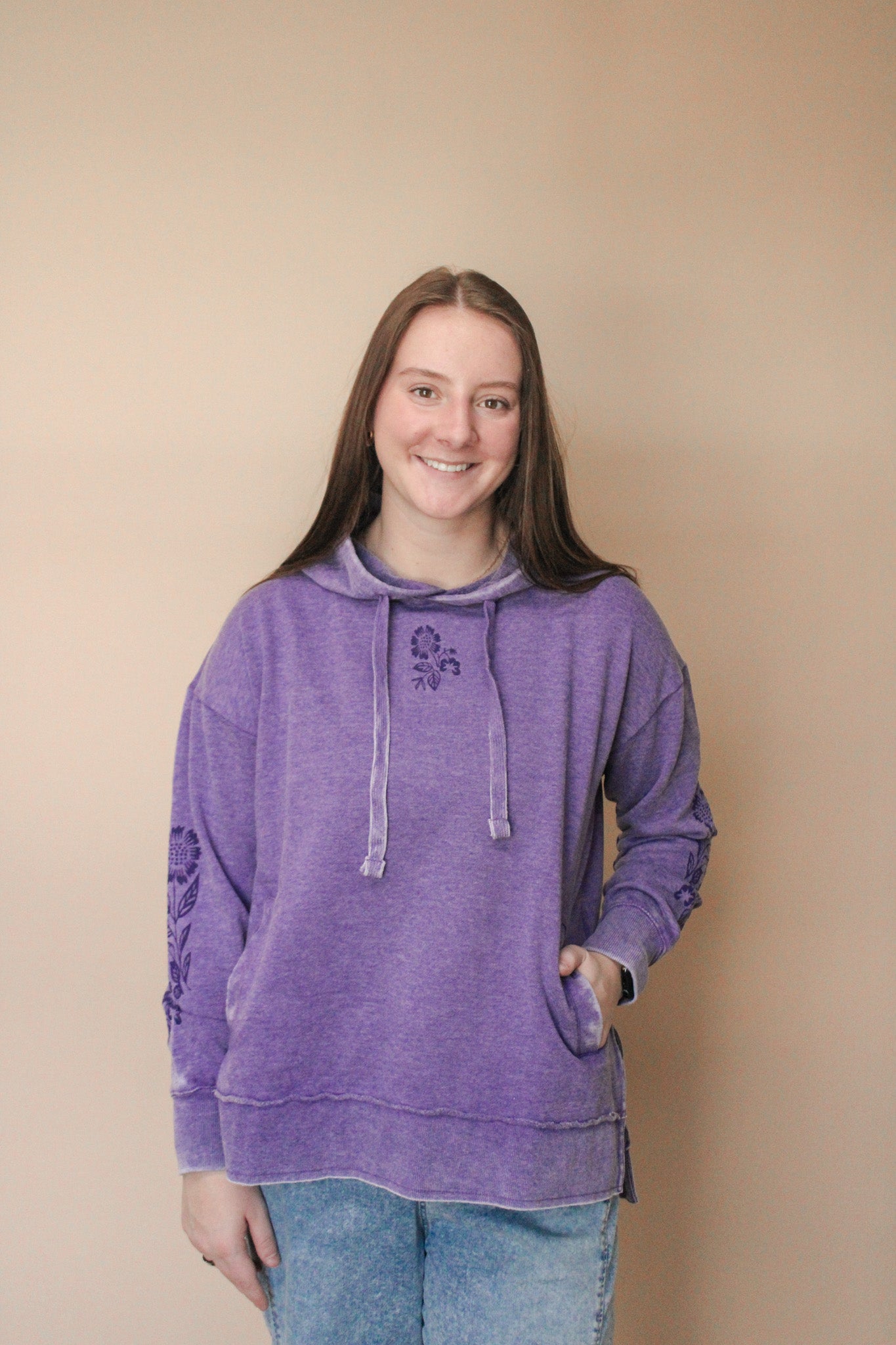 Wrap yourself in cozy comfort with our Violet Reverie Hooded Sweatshirt, designed for everyone to feel fabulous. This oversized beauty features a rich purple hue elevated by subtle tone-on-tone imprints scattered throughout, creating an effortlessly cool vibe. It's the perfect layering piece for casual days when you want to look put-together without trying too hard. Soft, spacious, and undeniably stylish—your new favorite sweatshirt awaits.