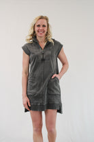 This sleeveless mock-neck dress boasts a unique high-low hem and convenient pockets, making it perfect for any occasion. Made with a lightweight, non-sheer knit, it's both comfortable and chic. Who says you can't have it all?!