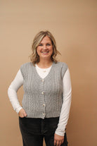 Cozy up in the JEAN Chunky Cable Knit V-Neck Vest, where classic charm meets playful style. Featuring a bold cable knit and easy button-up front, this vest adds warmth and texture to any outfit. Perfect for layering over your favorite tees or dresses, it’s your new go-to piece for comfy cool days with a fun twist.