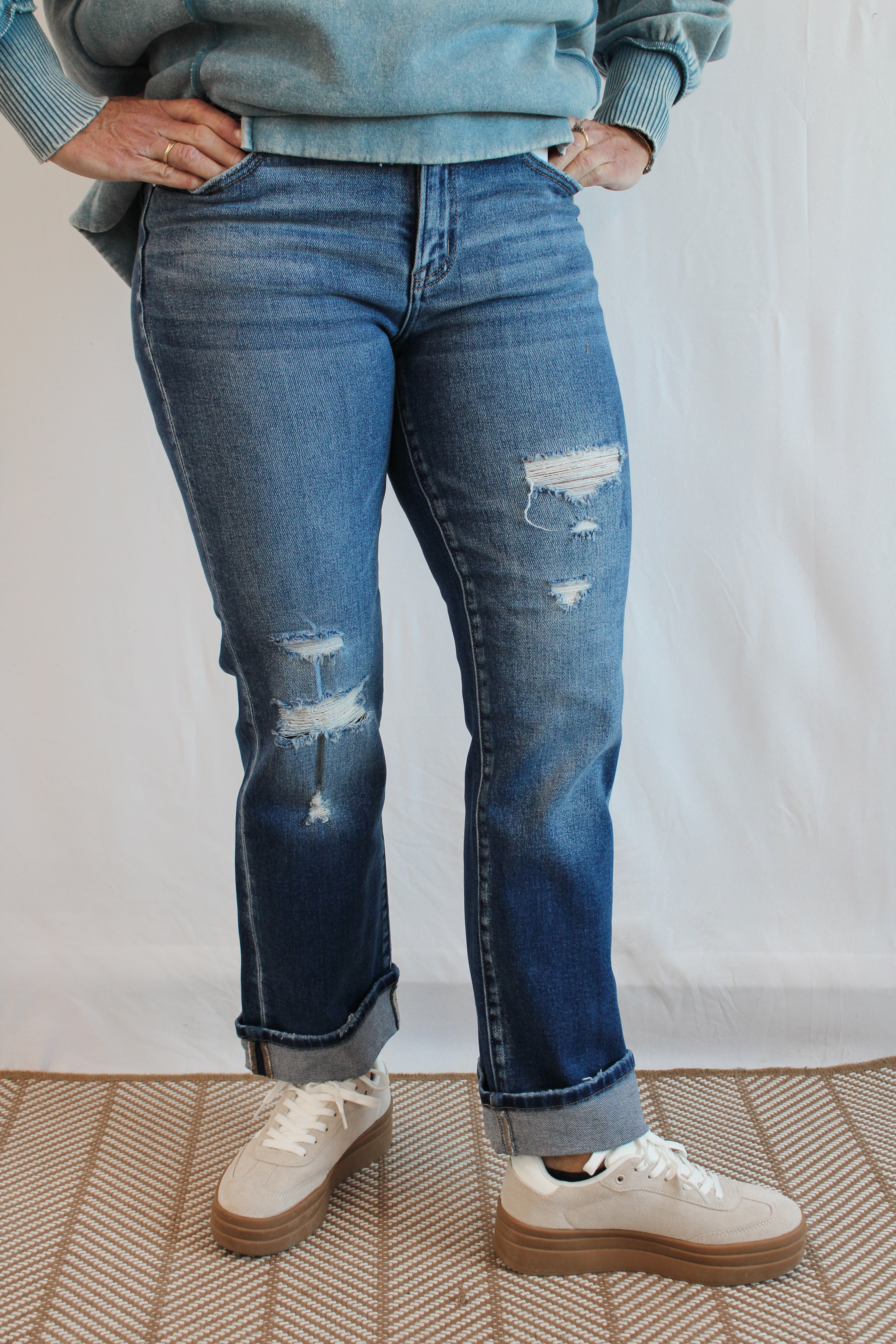 Look effortlessly cool in our JUSTINE MID-RISE ANKLE STRAIGHT JEANS! These jeans feature a mid-rise waist for a comfortable fit, with a flattering ankle length and stylish distressed details. With a cuffed ankle and straight leg, these jeans will have you rocking a chic and laid-back look.