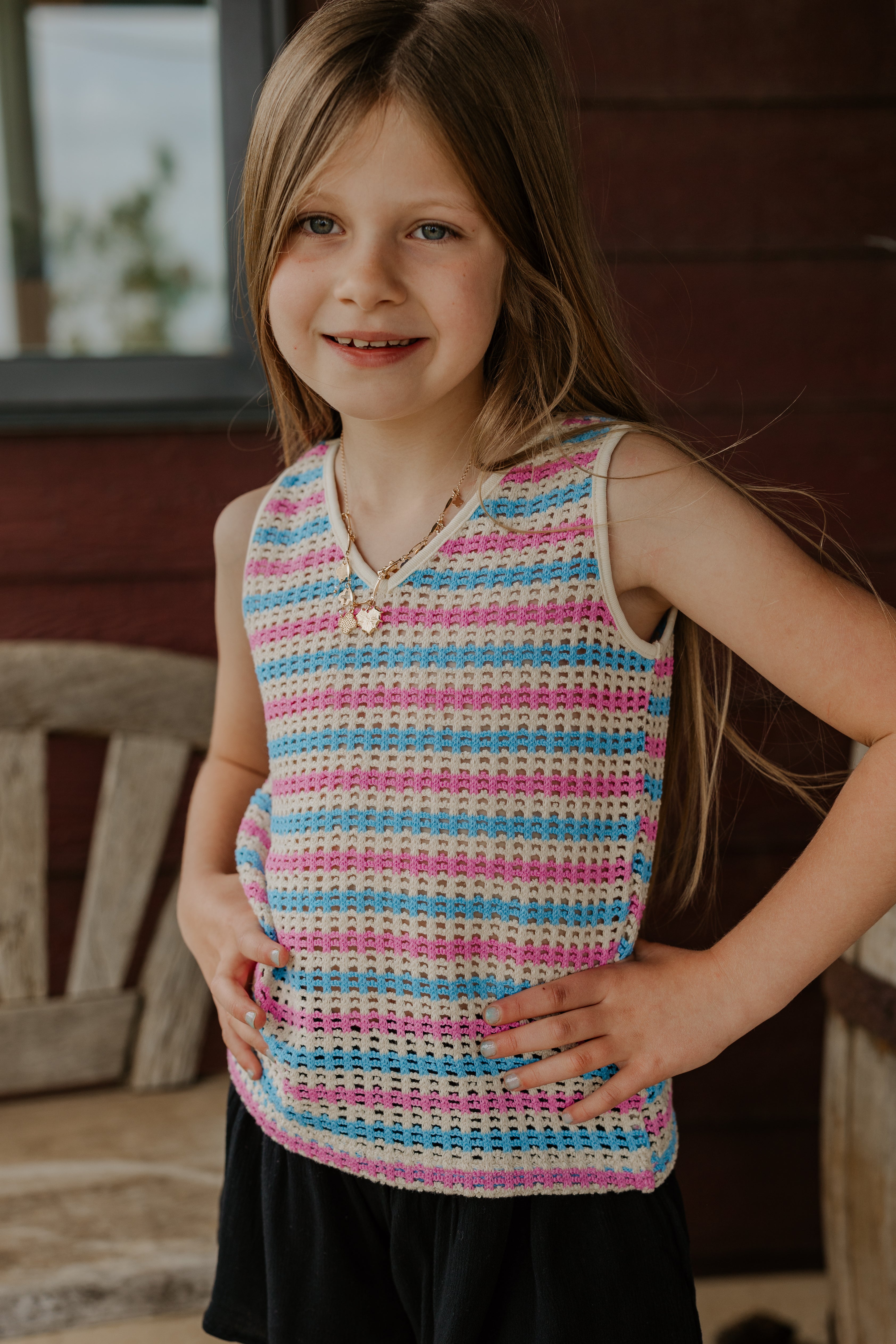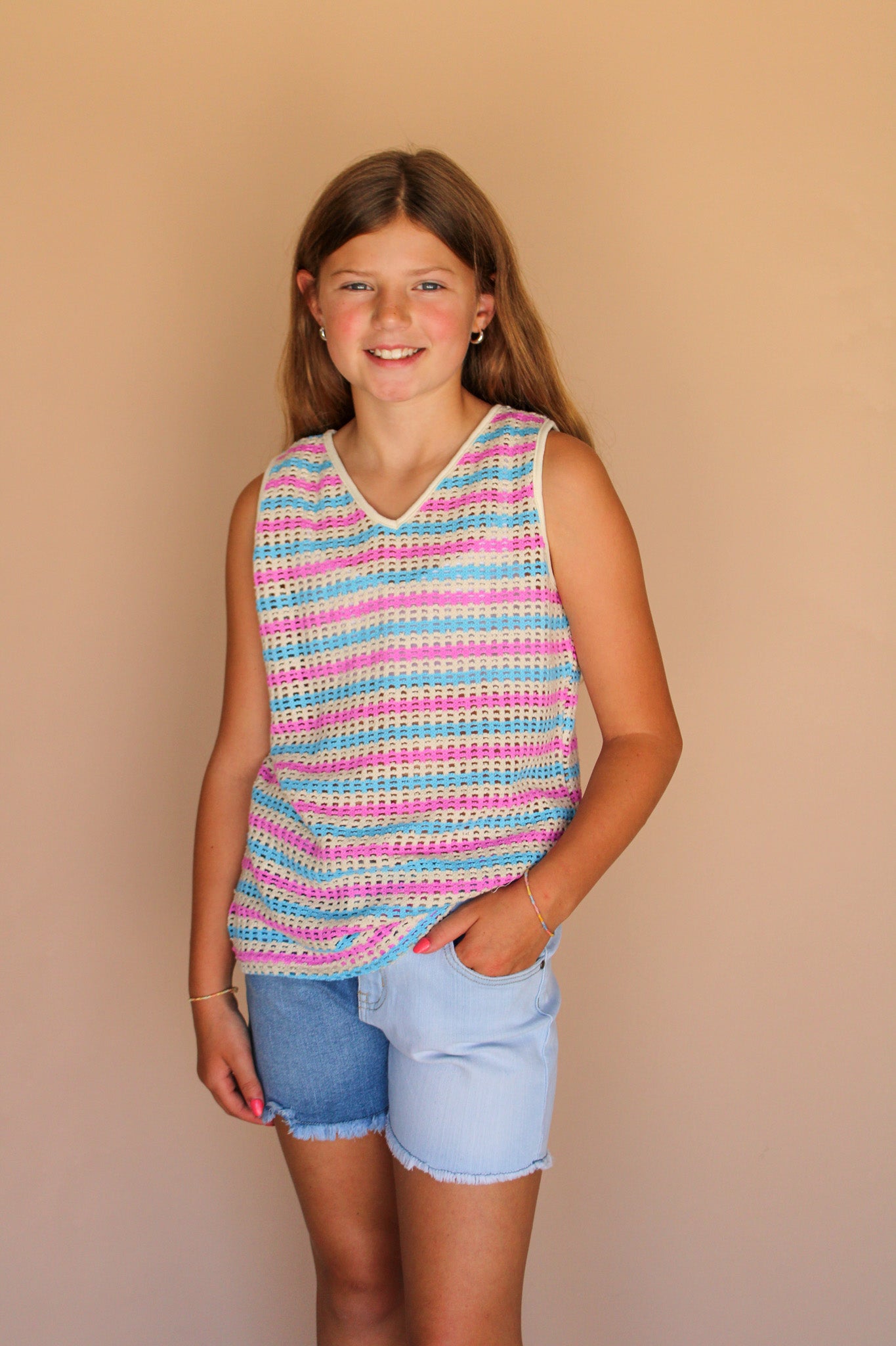 LILLIE GIRLS OPEN KNIT BOXY TANK