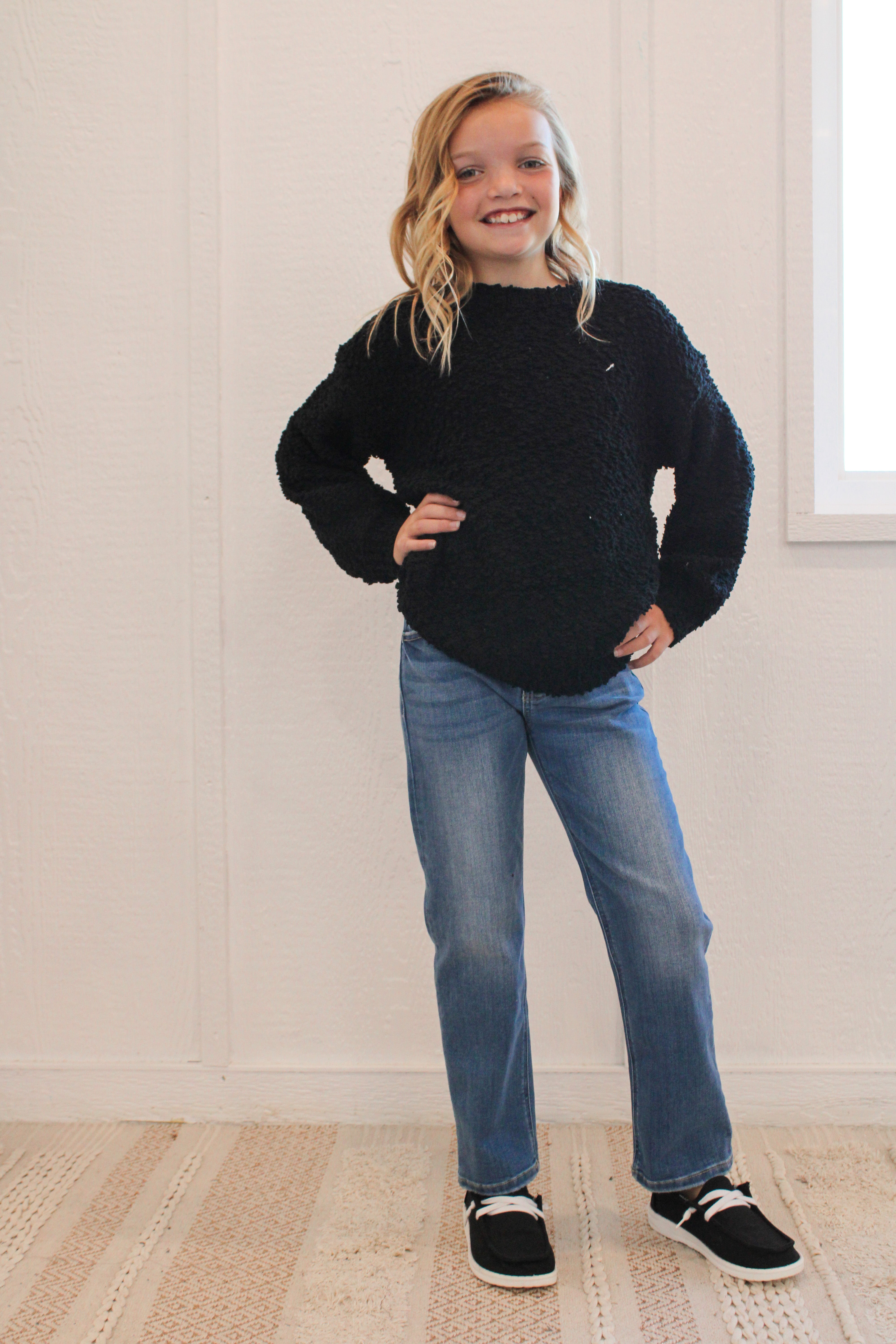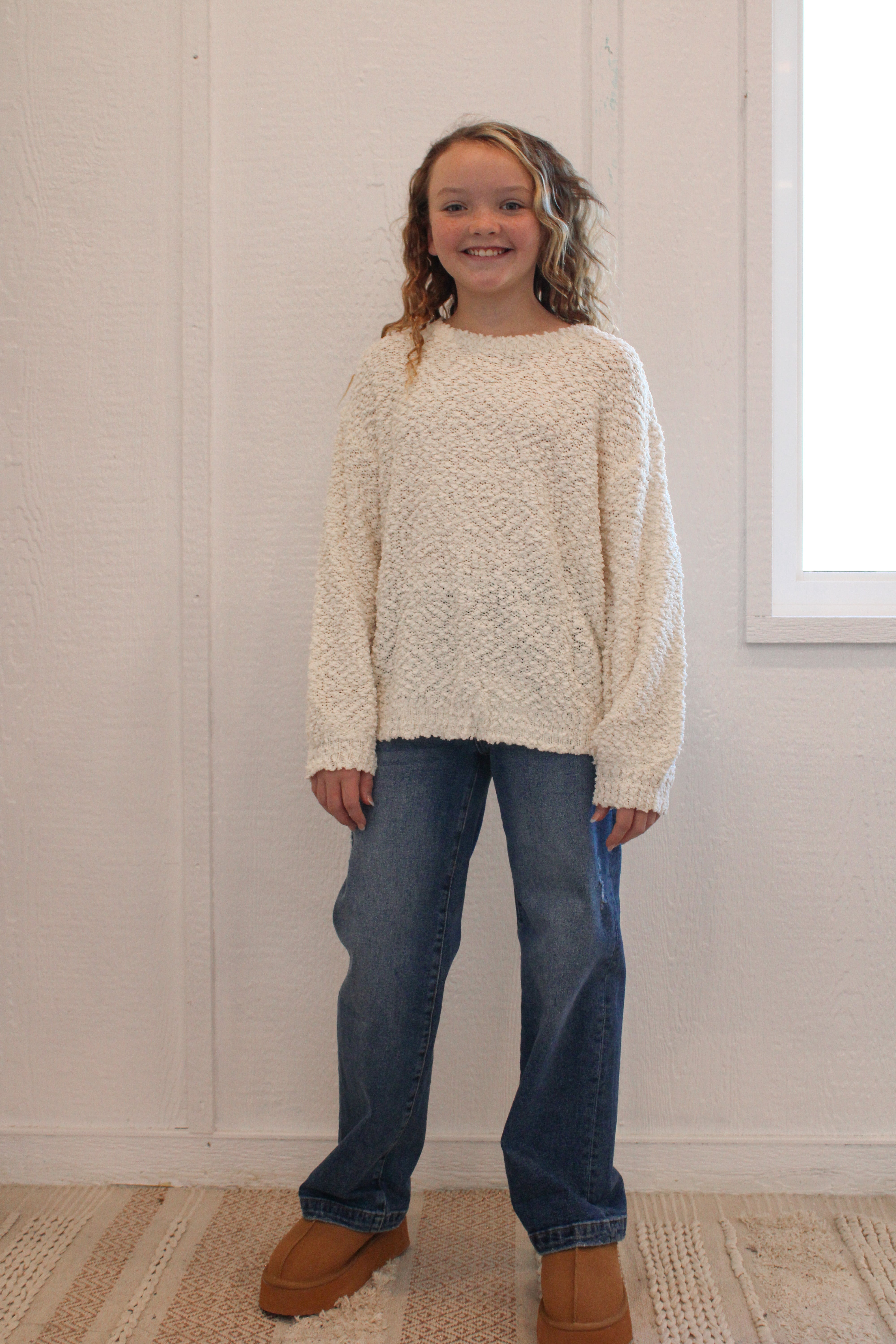 Get ready to pop with this Girls Popcorn Knit Pullover Sweater! Made with unique popcorn knit fabric, this sweater is perfect for any chilly day. The round cut neckline adds a touch of style, while the long sleeves provide warmth and comfort. A must-have for any fashion-forward girl.